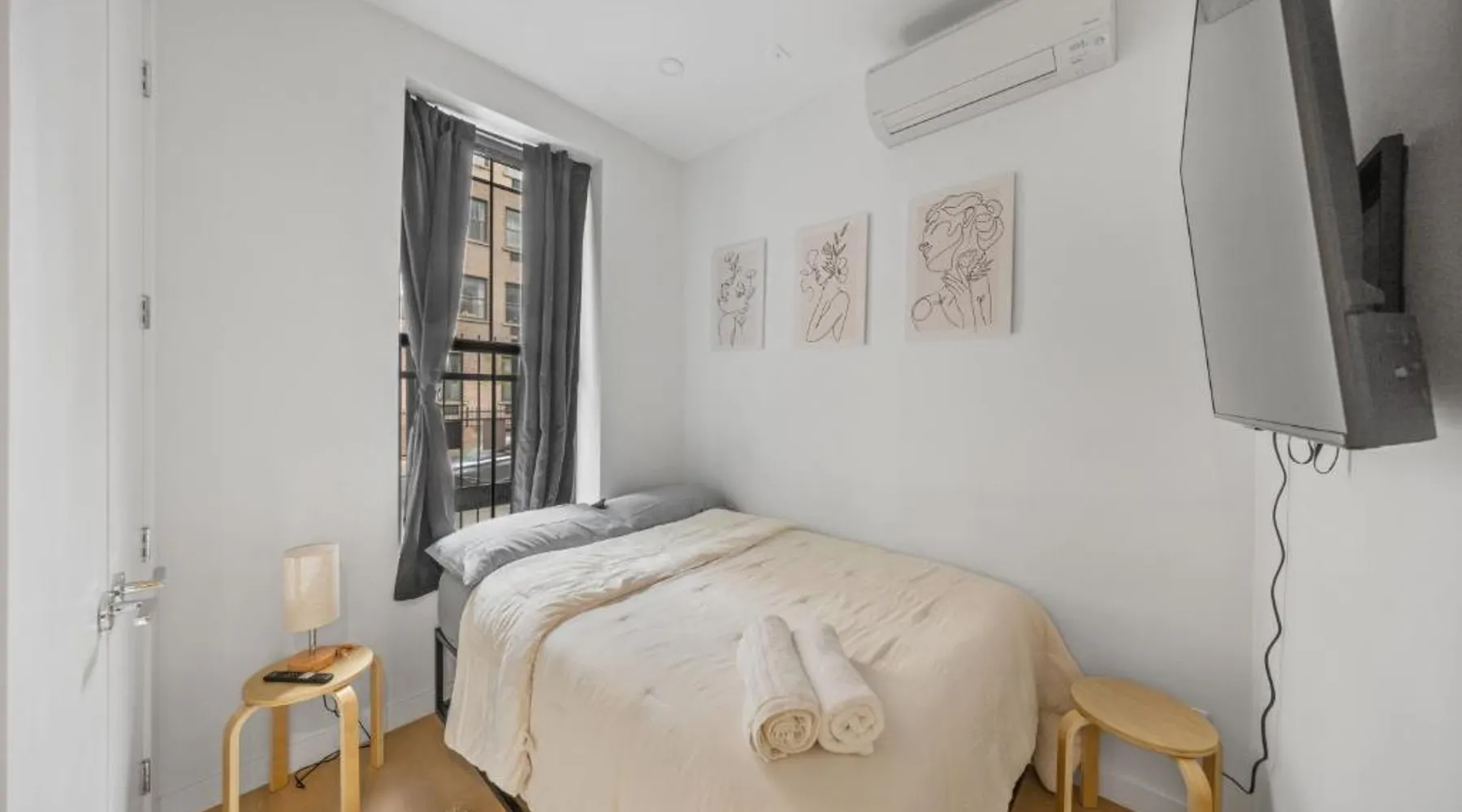 Prime City Center Location: Oasis Room at a Shared Apartment by Times Square is located in New York City, offering easy access to key attractions. Broadway Theater is a 4-minute walk away, while Carnegie Hall lies 984 feet nearby. Times Square is 0.7 mi from the property, with the Museum of Modern Art less than 0.6 mi away. Comfortable Living: The apartment features one bedroom and one bathroom, providing a cozy space for guests. Free WiFi is available throughout the property, ensuring connectivity. Air-conditioning and a fully equipped kitchen enhance the comfort of the stay. Local Activities: Guests can enjoy nearby activities such as ice-skating and boating. The surrounding area offers various entertainment options, catering to diverse interests. The apartment's kitchen is available for cooking and storing food. This apartment has a shared bathroom and air conditioning. The unit has 1 bed.