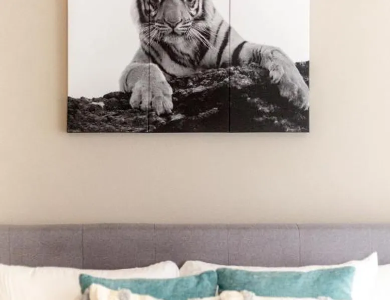 Spacious Accommodations: Travelers Oasis Modern 2BR Apartment Near Bridge Street and Orion Amphitheater in Huntsville offers a spacious layout with two bedrooms and two bathrooms. The apartment includes a living room, balcony, and a fully equipped kitchen. Modern Amenities: Guests enjoy free WiFi, air-conditioning, and a washing machine. Additional amenities include streaming services, a work desk, and a dishwasher. The apartment features a private entrance and free on-site private parking. Convenient Location: Located 8.1 mi from Huntsville International Airport, the apartment is close to attractions such as Southern Adventures (6.8 mi) and Big Spring Park (21 mi). The property provides full-day security and elevator access. Featuring a private entrance, this air-conditioned apartment consists of 1 living room, 2 separate bedrooms and 2 bathrooms with a bath and a shower. The fully equipped kitchen features a stovetop, a refrigerator, a dishwasher and kitchenware. The spacious apartment provides a washing machine, a tea and coffee maker, a seating area, a wardrobe and a flat-screen TV with streaming services. The unit offers 2 beds.