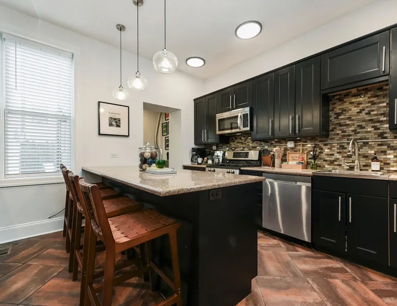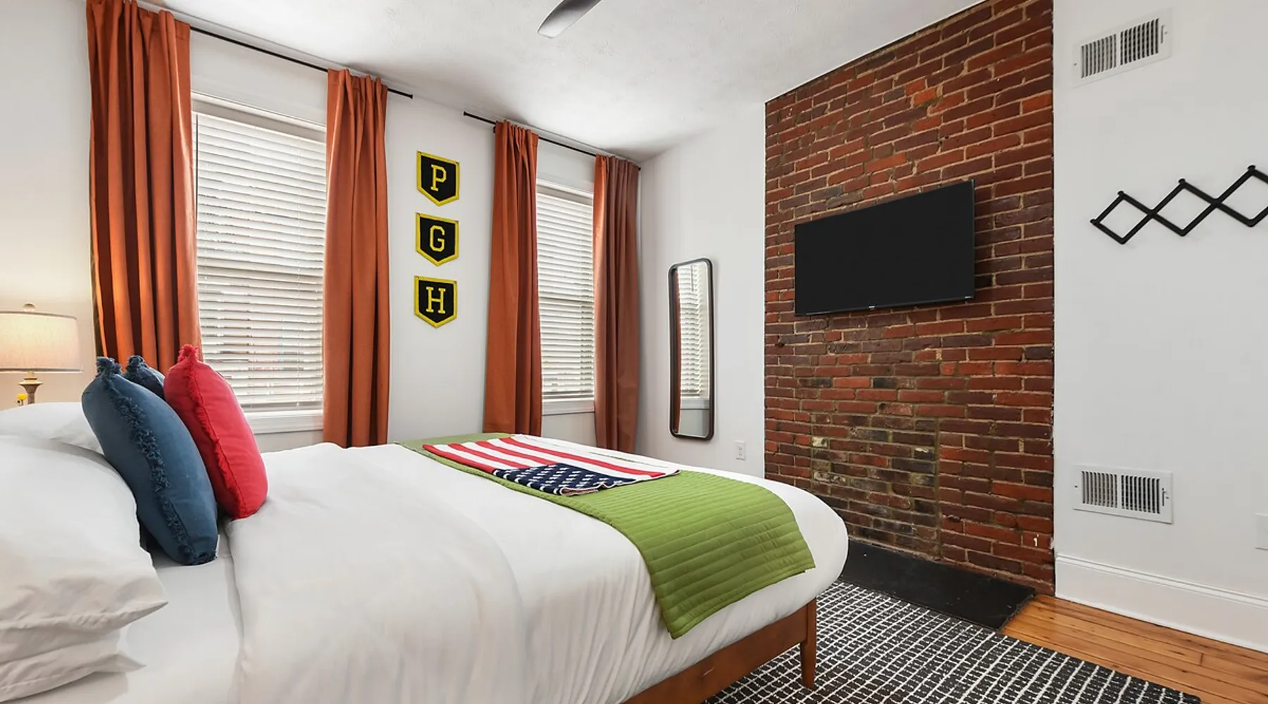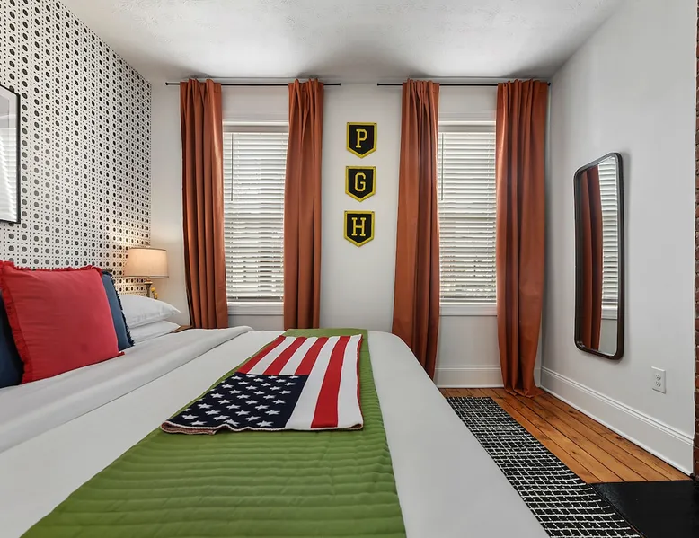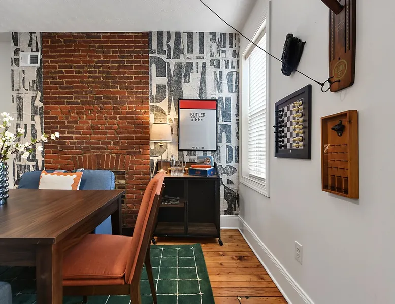 Welcome to your Butler Street retreat, where classic Americana meets modern comfort in the heart of upper Lawrenceville. Exposed brick, bold patterns, & vintage touches set the scene, while thoughtful amenities make it easy to settle in. Relax by the fire pit on the back patio, challenge your crew in the game room, or step outside to explore some of Pittsburgh’s best bars, restaurants, & shops just moments away. Whether you're here to unwind or dive into exploring, this is the perfect home base. The space 🏡 KEY FEATURES & AMENITIES ✓ Chore-Free Checkout® – So easy, it's trademarked! ✓ Keyless Entry – Smart lock + digital guide for seamless access ✓ Spacious 3BR / 1.5BA – Three-story row home with private front entrance ✓ Fast Wi-Fi – 1 gig high-speed internet (FiOS) ✓ Free Street Parking – Convenient spots right on Butler Street ✓ Work-From-Home Ready – Desk + office chair for focused remote work ✓ Fully Stocked Kitchen – Sharp knives, quality cookware, & full coffee setup ✓ Premium Coffee Bar – Commonplace Roasters whole bean coffee + French press & drip maker ✓ Entertainment – 65” Smart TV in living room + 42” Smart TVs in bedrooms ✓ Smart Home Tech – Smart speaker, smart TVs, smart lock ✓ Outdoor Space – Private patio with fire pit + outdoor seating ✓ Game Room – Combo dining/game room with ping pong, board games & more ✓ Eco-Friendly Touches – Recycling, water filters, earth-friendly toiletries & detergent ✓ Climate Comfort – Central A/C & heating for year-round comfort 🏆 ABOUT HOSTWISE STAYS As Pittsburgh’s top-rated professional hosts (4.93 overall with 20k+ stays!), we’re obsessed with quality service & top-tier amenities. ✔ No excessive checkout lists ✔ Professionally cleaned—never outsourced ✔ 24/7 local support ✔ Stocked with premium amenities We create seamless, stress-free stays so you can focus on enjoying your trip! 🧹 CLEANING PROCEDURES We believe a spotless home is a standard. ✔ Professionally trained in-house cleaning team ✔ Industry-leading cleaning checklist followed every stay ✔ Regular inspections by our Operations team ✔ Eco-friendly, high-quality cleaning products used throughout Expect a pristine, sanitized home every time. 🏡 DETAILED AMENITY OVERVIEW 🛏️ Bedrooms & Sleeping Arrangements • Bedroom 1 – King memory foam mattress, 42” Smart TV, blackout curtains • Bedroom 2 – King memory foam mattress, 42” Smart TV, blackout curtains • Bedroom 3 – King memory foam mattress, 42” Smart TV, blackout curtains ✔ 100% cotton, high-quality linens ✔ Four plush & firm pillows per bed 🛁 Bathrooms • Full Bathroom (2nd Floor) – Walk-in shower, premium toiletries, plush towels, hair dryer • Half Bathroom (1st Floor) – Conveniently located near laundry & outdoor area 📺 Entertainment & Smart Tech • 65” Smart TV in living room • 42” Smart TVs in each bedroom • Smart speaker for music, weather, etc. • Secure keyless entry with randomized code system 🍽️ Kitchen & Dining • Fully stocked kitchen – High-end cookware, sharp knives, silicone utensils • Appliances – Stove/range, oven, fridge, dishwasher, microwave, toaster • Breakfast bar seating for 4 + dining/game room seating for 6 • Coffee & Tea Bar – Commonplace whole bean coffee, drip maker, French press, electric kettle, Two Leaves & a Bud tea, organic sugar, individual creamers 🖥️ Work-From-Home Setup • Comfy desk + chair setup for focused work • High-speed internet (1 gig FiOS) perfect for video calls & streaming 🧺 Laundry & Essentials • In-home washer & dryer • Dropps eco-friendly detergent provided • Iron & ironing board included 🚗 Parking & Location • Free street parking available right on Butler Street • Located in vibrant Upper Lawrenceville, close to bars, restaurants & shops 🏠 HOUSE LAYOUT Welcome to your classic Pittsburgh row home—three stories of space, style, and comfort, right on lively Butler Street in Upper Lawrenceville! First Floor • Enter through a private front door directly into the living room with a 65” Smart TV and seating for the whole crew. • Continue into the fully stocked kitchen, complete with a breakfast bar for 4 and everything you need to cook or brew a great cup of coffee. • At the back of the home: a convenient half bathroom, in-home laundry, and access to the outdoor patio with a fire pit and seating area. Second Floor • One king bedroom at the front of the home. • A full bathroom with a walk-in shower, plush towels, and premium toiletries. • A combo dining/game room with a table for six—perfect for meals or family game night. Third Floor • Two spacious king bedrooms with memory foam mattresses and 42” Smart TVs. Note: This is a 125+ year-old Pittsburgh home—authentic and full of charm. That includes the original staircase style, which is typical for this kind of architecture. If you’re looking for a ranch-style layout, this ain’t it 😉—but if you’re ready for a comfy, well-equipped city stay in a classic row home, you’re in the right place. Other things to note Our neighbor occasionally smokes weed, and you may notice it subtly in the background of the house. We have a $400 Blue Air Smoke Block Filter (which also helps with Pittsburgh air quality!) If you're extremely sensitive to weed, you should consider other options. Additionally, the stairs in our home are traditional Pittsburgh stairs - steeper than modern stairs. If you have mobility issues, please reconsider.