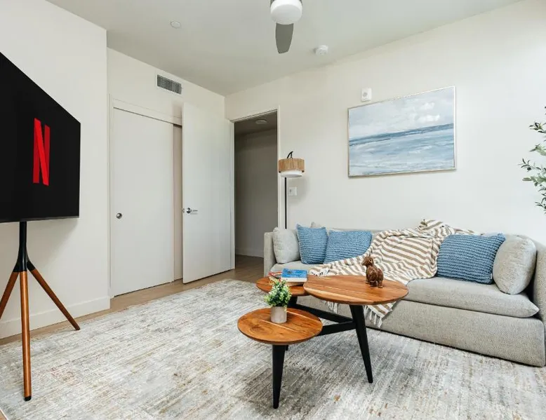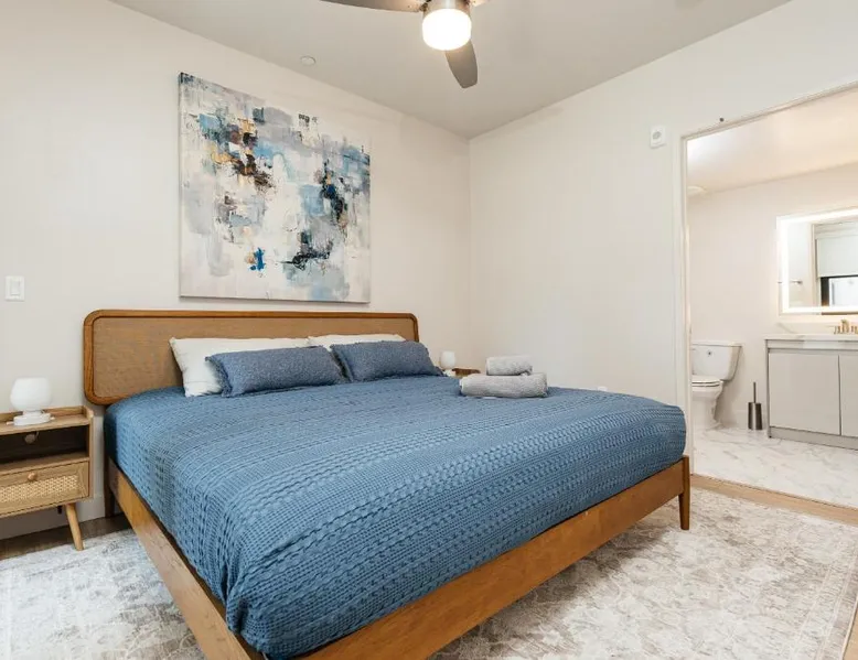 Spacious Accommodations: Stunning 2BR apartment steps from Santa Monica pier offers a spacious layout with two bedrooms and two bathrooms. The living room features a sofa and dining area, providing ample space for relaxation and entertainment. Modern Amenities: Guests enjoy free WiFi, air-conditioning, and a fully equipped kitchenette. The apartment includes a balcony with garden views, a terrace, and an outdoor seating area. Additional facilities include an outdoor fireplace, laundry service, and barbecue facilities. Prime Location: Located in Santa Monica, the property is a 15-minute walk from Santa Monica Beach and an 18-minute walk to Santa Monica Pier. Los Angeles International Airport is 6.2 mi away. Nearby attractions include Third Street Promenade (0.6 mi) and Pacific Park (0.6 mi). Boasting a private entrance, this air-conditioned apartment includes 1 living room, 2 separate bedrooms and 2 bathrooms with a bath and a shower. In the well-fitted kitchen, guests will find a stovetop, a refrigerator, a dishwasher and kitchenware. The spacious apartment offers a washing machine, a tea and coffee maker, a seating area as well as a terrace with garden views. The unit has 2 beds.