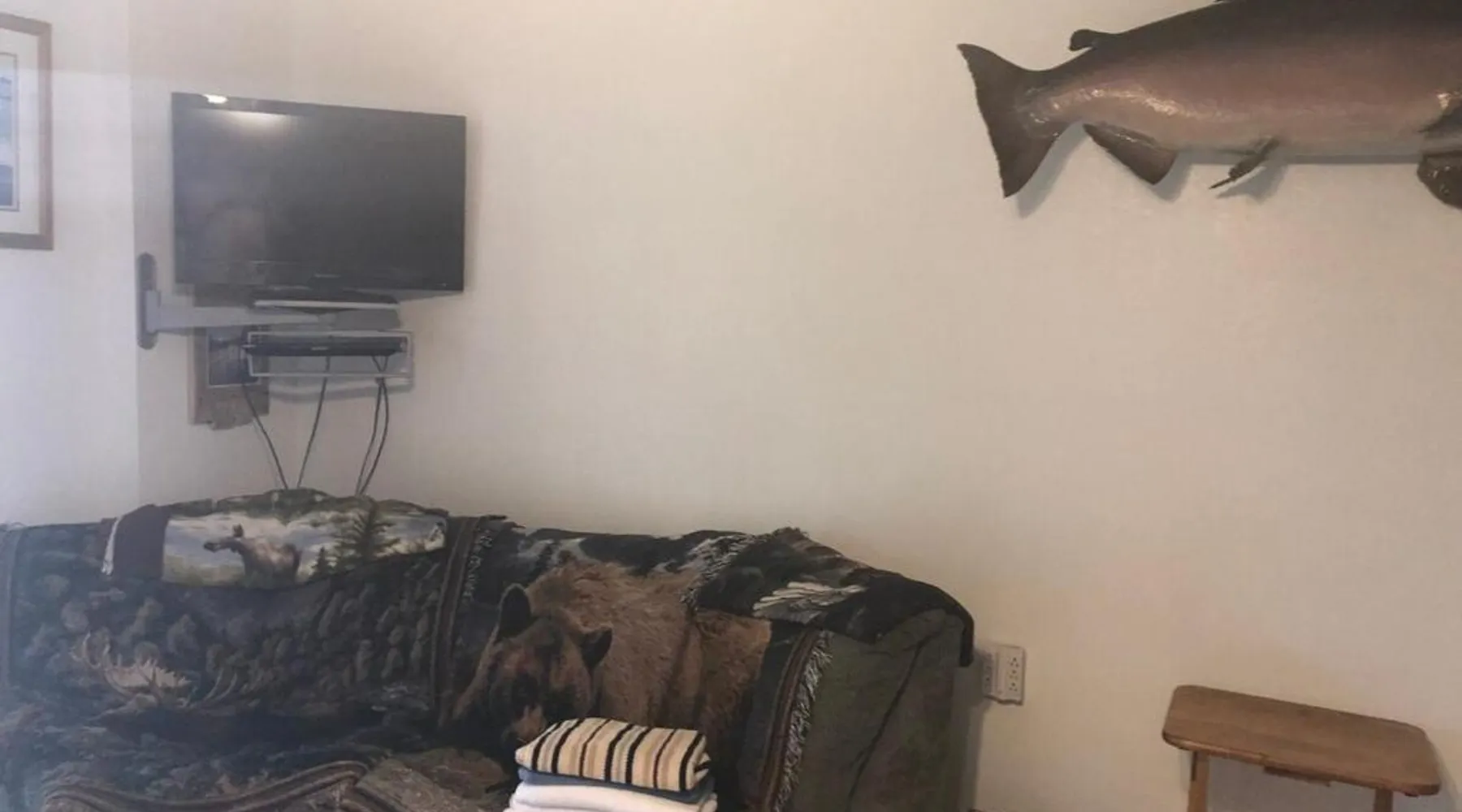 Comfortable Living Space: Scout Lake Adventures in Soldotna offers a one-bedroom apartment with a private entrance. The property features a fully equipped kitchen with a refrigerator, microwave, stovetop, and tea and coffee maker. A TV provides entertainment. Essential Amenities: Guests enjoy free WiFi and free on-site private parking. The apartment includes a private bathroom with a shower. Additional amenities include a microwave, stovetop, and TV. Convenient Location: Located 13 mi from Kenai Municipal Airport, the apartment is located on Lake Front. The surrounding area offers scenic views and opportunities for fishing and outdoor activities. In the fully equipped kitchen, guests will find a stovetop, a refrigerator, a microwave and a tea and coffee maker. This apartment features a private entrance, heating and a flat-screen TV. The unit offers 1 bed.