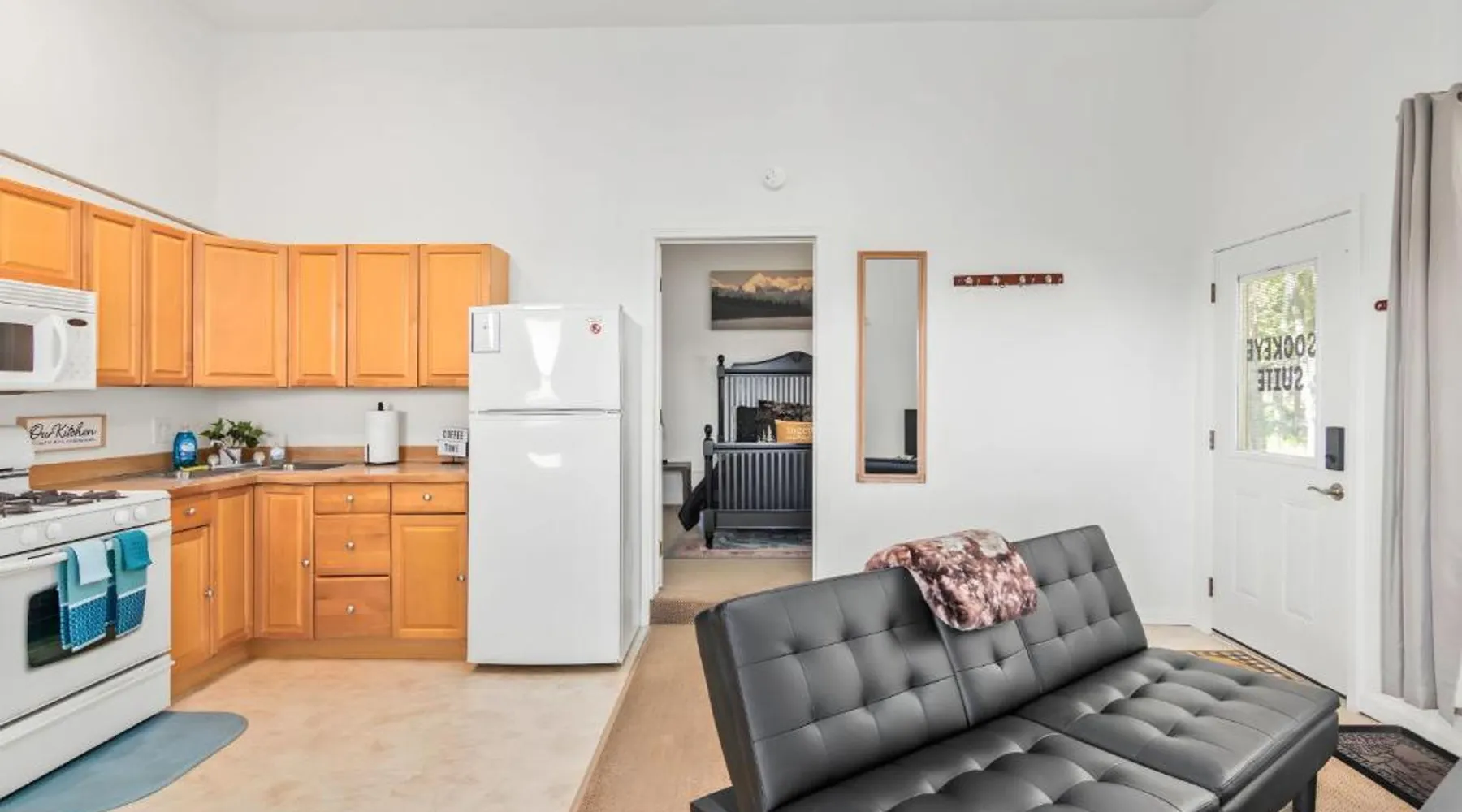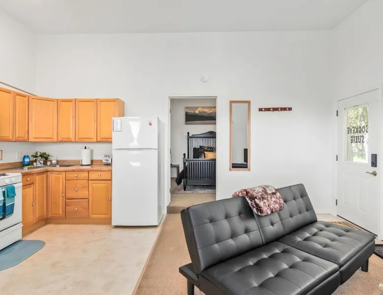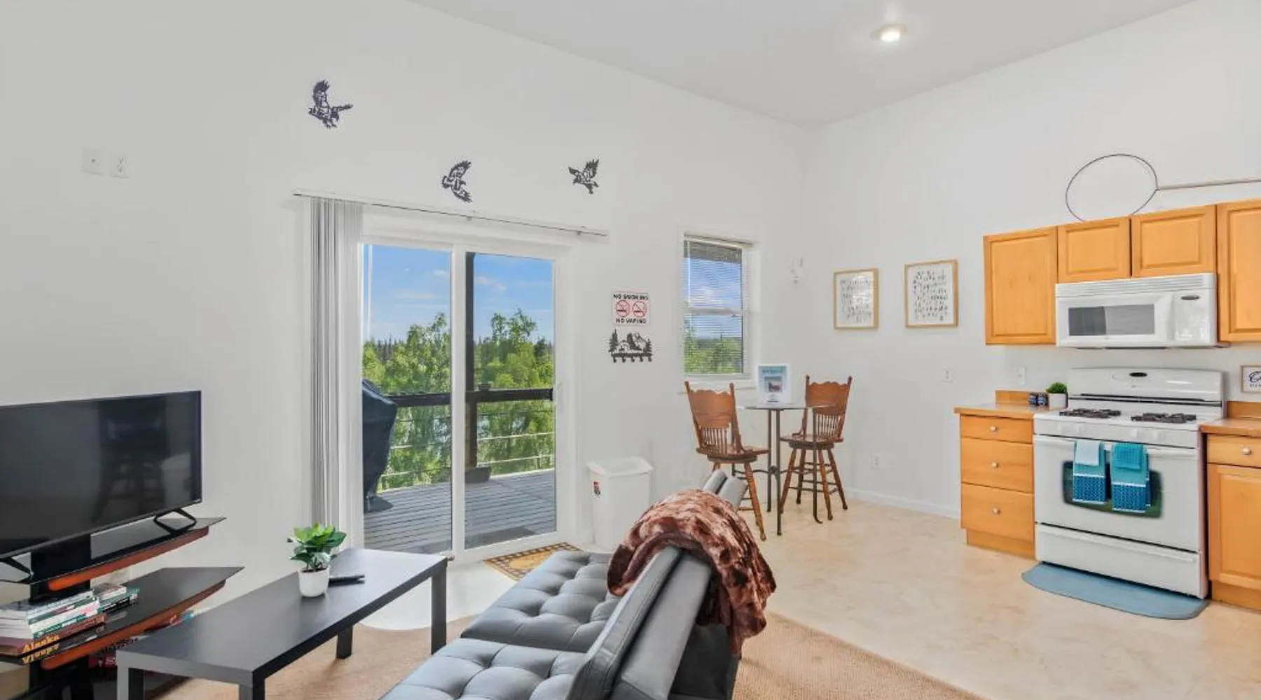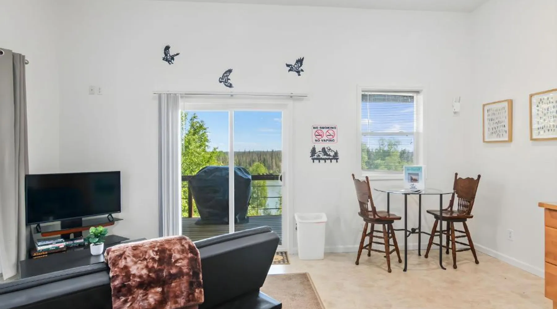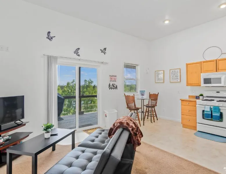 Comfortable Living Space: Kenai River Views and Access Soldotna Apartment! in Soldotna offers a one-bedroom apartment with a living room. The property includes a fully equipped kitchen with a coffee machine, refrigerator, microwave, oven, stovetop, toaster, and kitchenware. Modern Amenities: Guests enjoy free WiFi, a dining table, TV, and a private entrance. Additional amenities include a barbecue, hairdryer, free toiletries, and a shower. Convenient Location: Located 8.7 mi from Kenai Municipal Airport, the apartment provides easy access to local attractions. River views enhance the relaxing atmosphere. Featuring a private entrance, this apartment consists of 1 living room, 1 separate bedroom and 1 bathroom with a shower and a hairdryer. Guests will find a stovetop, a refrigerator, kitchenware and an oven in the well-fitted kitchen. The apartment also offers a barbecue. This apartment features a coffee machine, heating, a flat-screen TV and river views. The unit offers 1 bed.