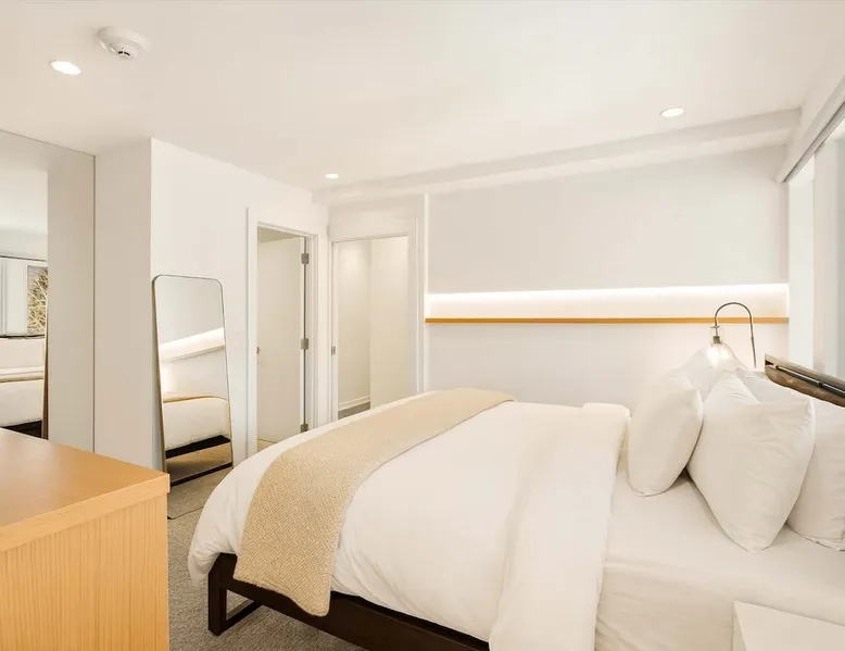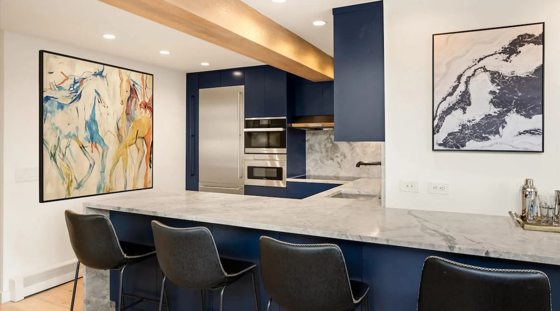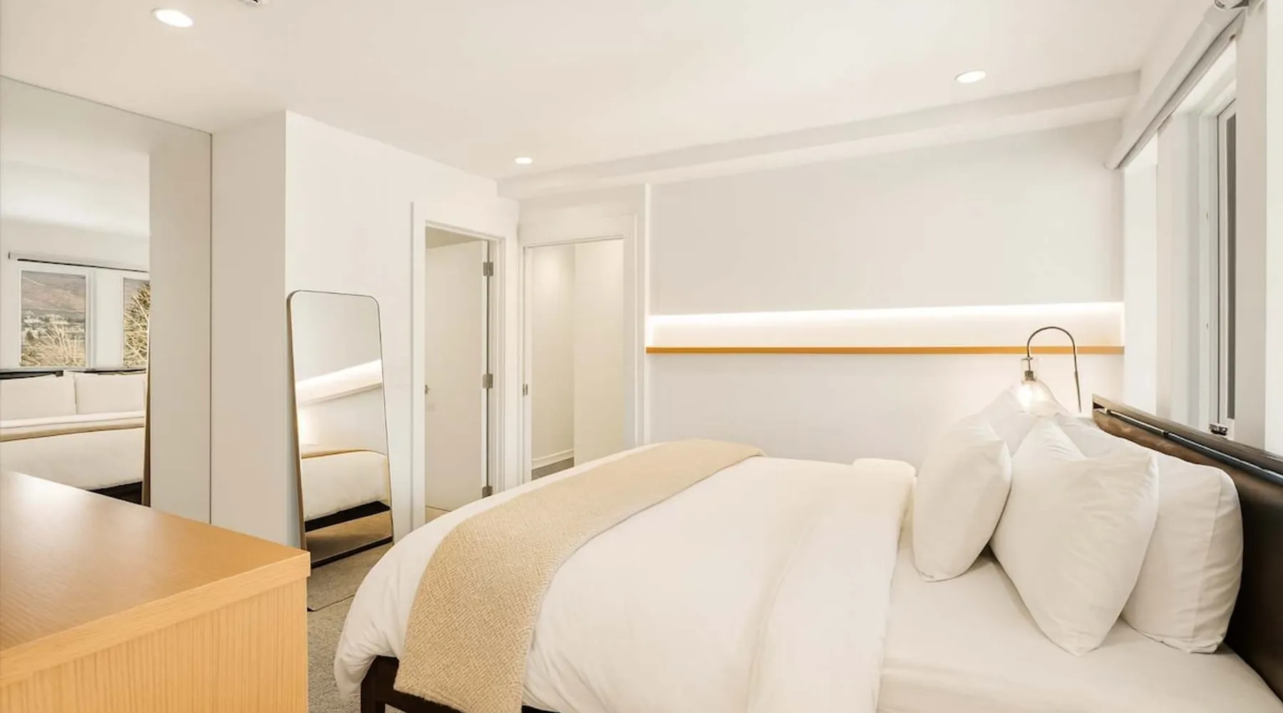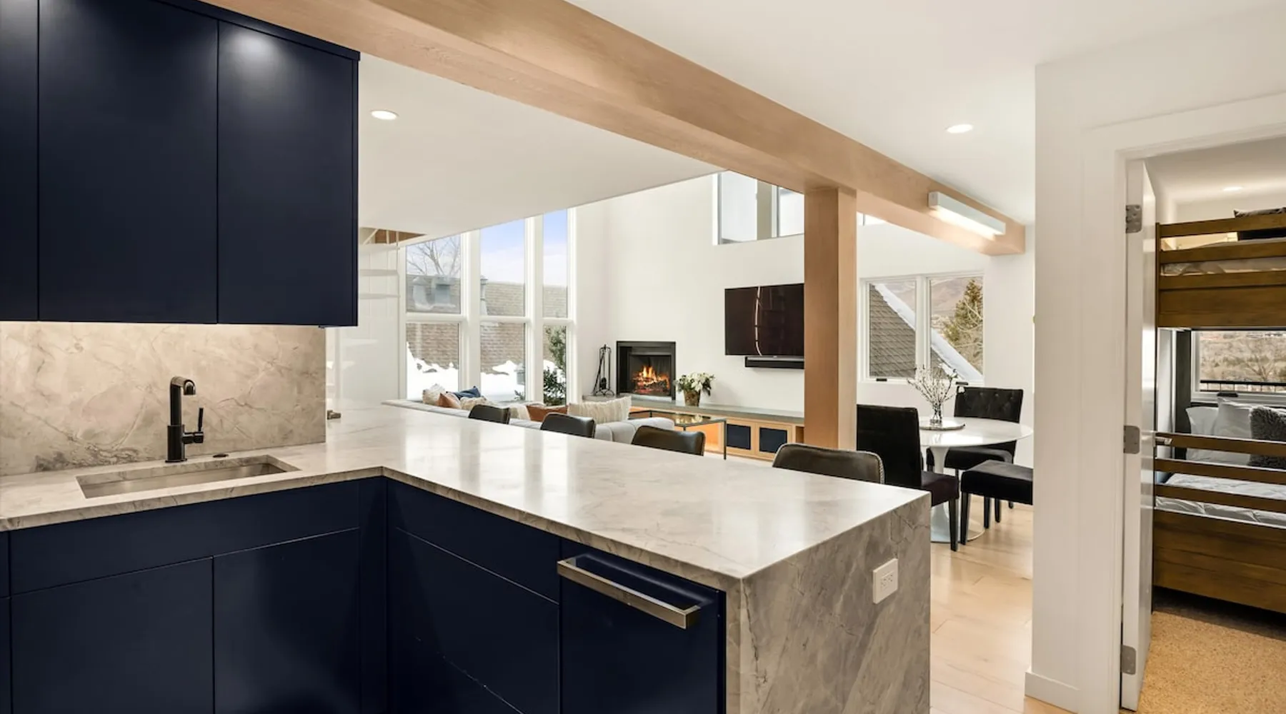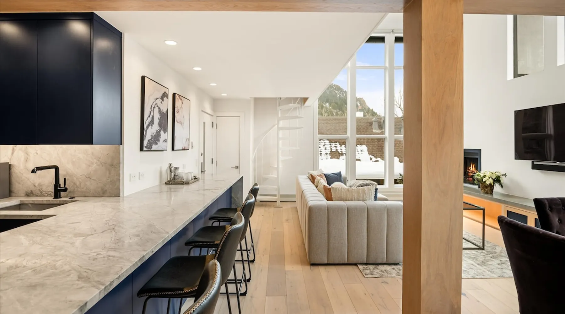 Exquisite, modern 3-bedroom, 2.5-bath ski-in/ski-out condo on Aspen Mountain. This top-floor residence offers unmatched privacy, soaring 28-foot ceilings, and dramatic floor-to-ceiling windows that bring in an abundance of natural light and frame the panoramic views of the surrounding peaks. The space This property is professionally managed by Aspen Vacations, Our office is conveniently located at the Aspen Airport Business Center just across from Aspen Airport. Ideally situated on a quiet residential street, this condo is just minutes from downtown Aspen, the Ruby Park Transit Center, and the town’s best shopping, dining, and outdoor adventures. Beautifully renovated with high-end finishes, the space blends modern convenience with mountain charm. Designed for both comfort and function, it offers a warm retreat to complement your Aspen experience. Throughout the condo, you’ll find thoughtful upgrades including Lutron lighting, motorized shades, and air conditioning for year-round comfort. Additional highlights include a full-sized washer and dryer, a cozy wood-burning fireplace, vaulted ceilings with oversized windows that frame panoramic mountain views, and a private patio for enjoying the fresh alpine air. Location & Building Amenities: *Prime location in the Fifth Avenue Condominium Complex in Downtown Aspen *Ski-in/ski-out access to the Silver Queen Gondola and just 1 block from Lift 1A *Steps from Aspen’s world-class restaurants, shopping, and vibrant nightlife *Year-round heated pool and hot tub with lounge chairs for relaxing or soaking up the sun *On-site parking for one vehicle, with a residential parking pass available for additional vehicles *Gas grill available in the pool area for guest use Unit Amenities: *Top-floor residence offering privacy and quiet *Abundance of windows filling the space with natural light *Private balcony to enjoy fresh mountain air and views *Lutron lighting and motorized shades for modern convenience *Air conditioning to stay cool during the summer months *Striking 28-foot vaulted ceilings that enhance the sense of space *High-speed WiFi for work or streaming *Full-size washer and dryer for added convenience *Private ski locker *Sonos sound system for enjoying your favorite tunes *High-speed WiFi for work or streaming *Full-size washer and dryer for added convenience Living Room *Spacious open layout with ample, comfortable seating for gatherings *Striking 28-foot vaulted ceilings that create an airy, open atmosphere *Expansive windows that flood the room with natural light and showcase mountain views *Cozy wood-burning fireplace for a true Aspen mountain experience *Smart TV with Xfinity Cable and streaming services for entertainment Kitchen: *Chef’s kitchen with top-of-the-line built-in appliances *Custom designer cabinetry offering abundant storage *Expansive quartz countertops with seating for four at the breakfast bar *Separate dining table with seating for four *Open to the living room, creating the perfect space for entertaining *Fully equipped with everything needed to prepare and enjoy a home-cooked meal All beds are made with luxury 100% cotton linens from Garnier-Thiebaut, professionally laundered and pressed for comfort. Plush down pillows are standard; if you have allergies, we’re happy to provide a down alternative upon request. In the bathrooms, soft white towels, plush robes, hairdryers, and premium toiletries, including shampoo, conditioner, body wash, lotion, and more, are provided for your comfort. Primary Bedroom *King-size bed with a premium plush mattress *Lutron motorized blackout shades *Smart TV with streaming services and Xfinity Cable *Ample closet and storage space for your belongings *Large windows showcasing stunning views of Red Mountain Primary En-Suite Bathroom *Luxurious walk-in steam shower *Elegant double vanity with dual sinks and marble countertop *Beautiful designer tile *Premium plumbing fixtures Bunk Bedroom *Custom-built twin-over-queen bunk bed with premium plush mattresses *Lutron motorized blackout shades *Smart TV with streaming services and Xfinity Cable *Direct access to a private patio with outdoor seating *Large windows offer unobstructed mountain views Second Full Bathroom *Tub/shower combo with soaking tub *Premium plumbing fixtures *Single vanity with marble countertop Loft Bedroom *King-size bed with a plush premium mattress for ultimate comfort *Smart TV with streaming services and Xfinity Cable *Closet and built-in storage providing ample space for clothing and personal items *1/2 bathroom is conveniently located en-suite Guest access Guests have access to the entire condo as well as a year-round heated pool and hot tub. Aspen Vacations guests enjoy exclusive, complimentary access to the members-only Caribou Club. Other things to note City of Aspen STR Permit #: 083436