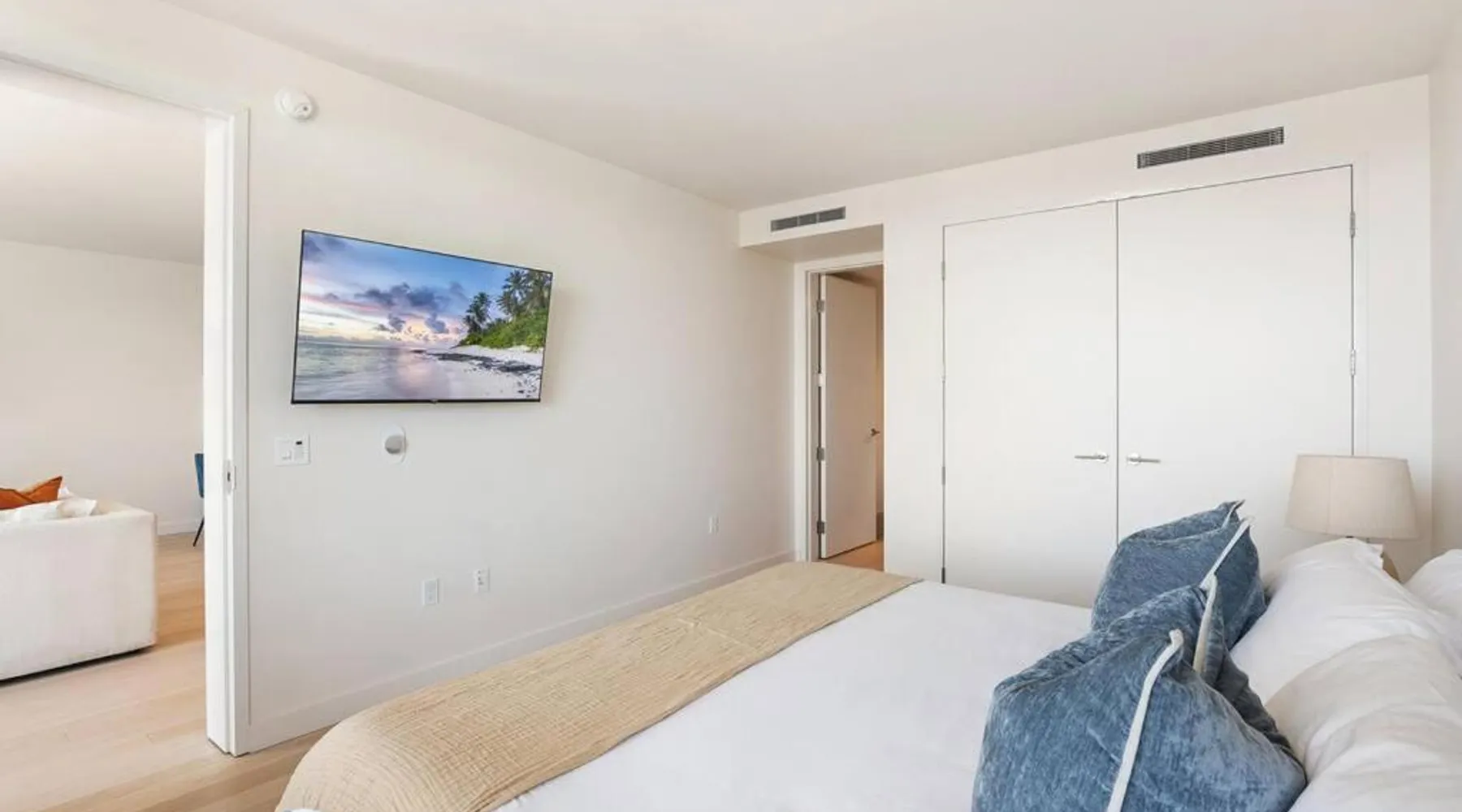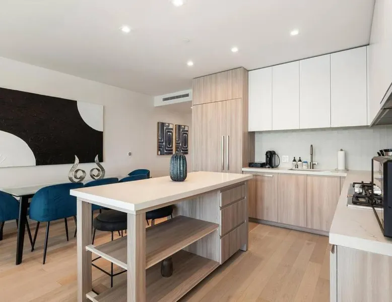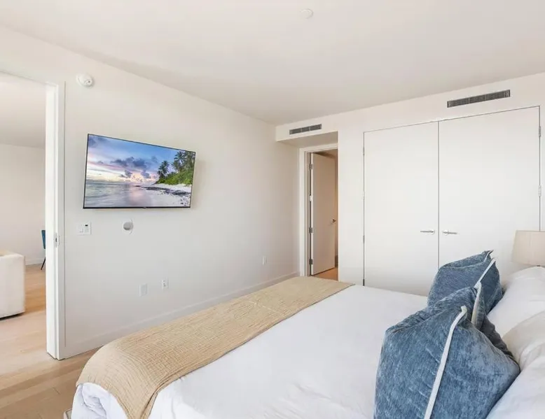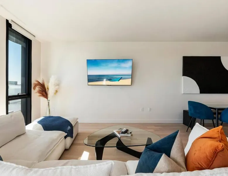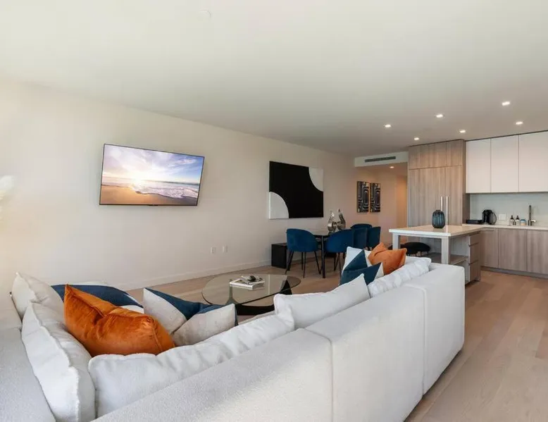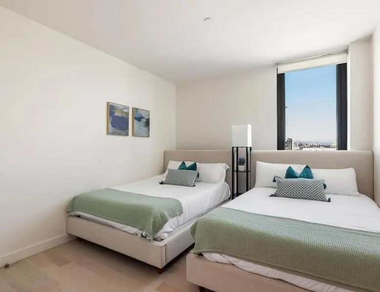 Spacious Accommodations: The Rose Quartz - Rooftop Pool, Gym Glamorous Santa Monica 2BR offers a spacious apartment in Santa Monica. Featuring two bedrooms and two bathrooms, the property includes a living room and a fully equipped kitchen. Exceptional Facilities: Guests can enjoy a rooftop swimming pool, a lush garden, and a terrace. Additional amenities include a fitness room, hot tub, minimarket, laundry service, outdoor seating area, family rooms, full-day security, and barbecue facilities. Prime Location: Located 6.8 mi from Los Angeles International Airport, the apartment is an 8-minute walk from Santa Monica Beach and close to Third Street Promenade (1640 feet) and Pacific Park (less than 0.6 mi). Nearby attractions include the Getty Center and Venice Beach Boardwalk. The pool with a view and hot tub are the special features of this apartment. Boasting a private entrance, this air-conditioned apartment comes with 1 living room, 2 separate bedrooms and 2 bathrooms with a walk-in shower and a bath. Guests will find a stovetop, a refrigerator, a dishwasher and kitchenware in the kitchen. The apartment also includes a barbecue. The spacious apartment features a flat-screen TV with satellite channels, a washing machine, a tea and coffee maker, a seating area as well as mountain views. The unit has 3 beds.