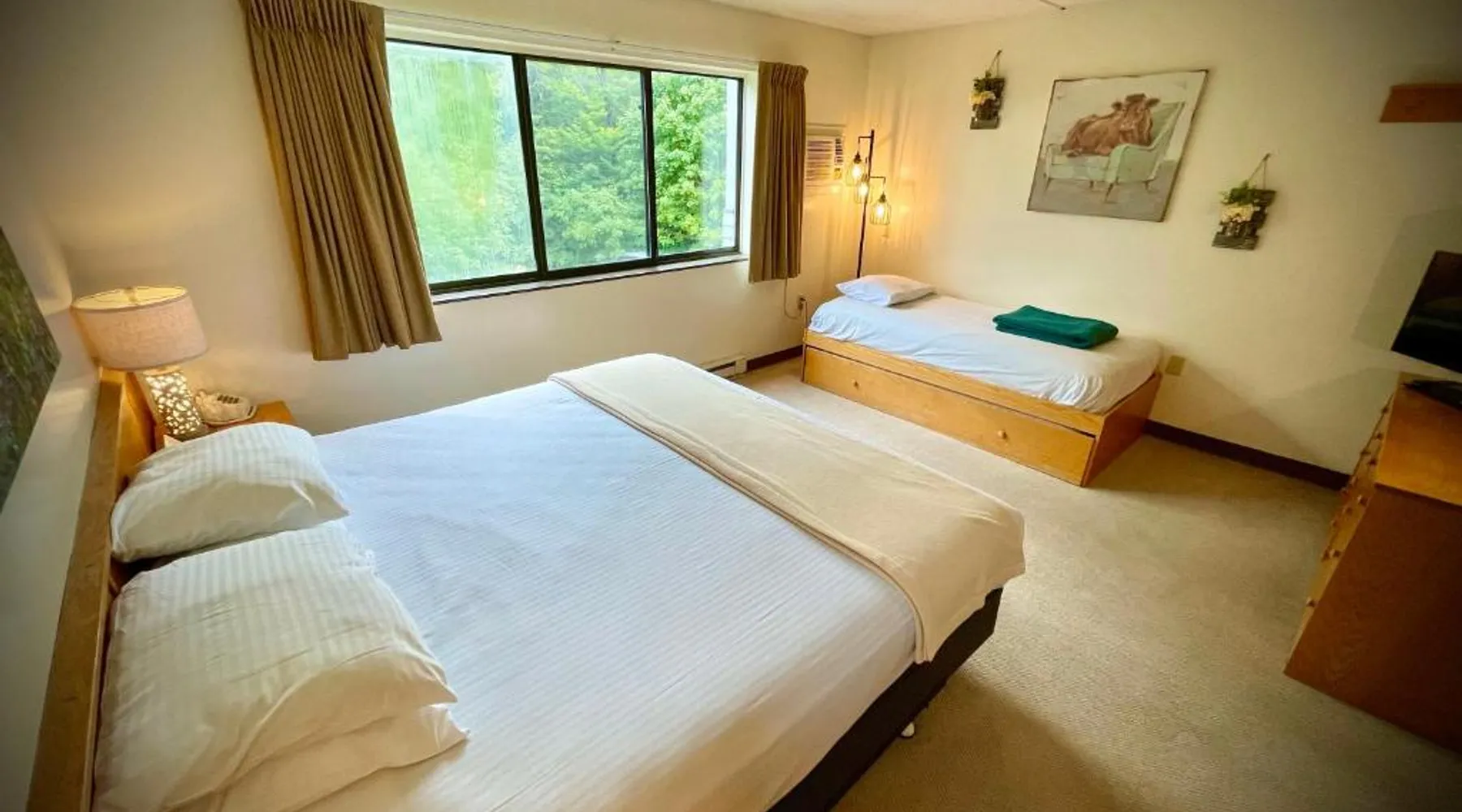 Spacious Accommodations: Mountain Life Retreat at Smuggler's Notch Resort in Cambridge offers a spacious apartment with two bedrooms and two bathrooms. The living room features a fireplace and a balcony, providing a comfortable space for relaxation. Modern Amenities: Guests enjoy free WiFi, air-conditioning, and a fully equipped kitchen. Additional amenities include a washing machine, TV, and free on-site parking. An electric vehicle charging station is available for those traveling with electric vehicles. Convenient Location: Located 31 mi from Burlington International Airport, the property is 30 mi from Stowe Village Historic District. Reception staff speak English, ensuring smooth communication for all guests. The fireplace is the standout feature of this apartment. The air-conditioned apartment has 2 bedrooms, 2 bathrooms and a kitchen. The apartment's kitchen is available for cooking and storing food. The spacious apartment features a washing machine, tumble dryer, heating, as well as a flat-screen TV. The unit has 7 beds.