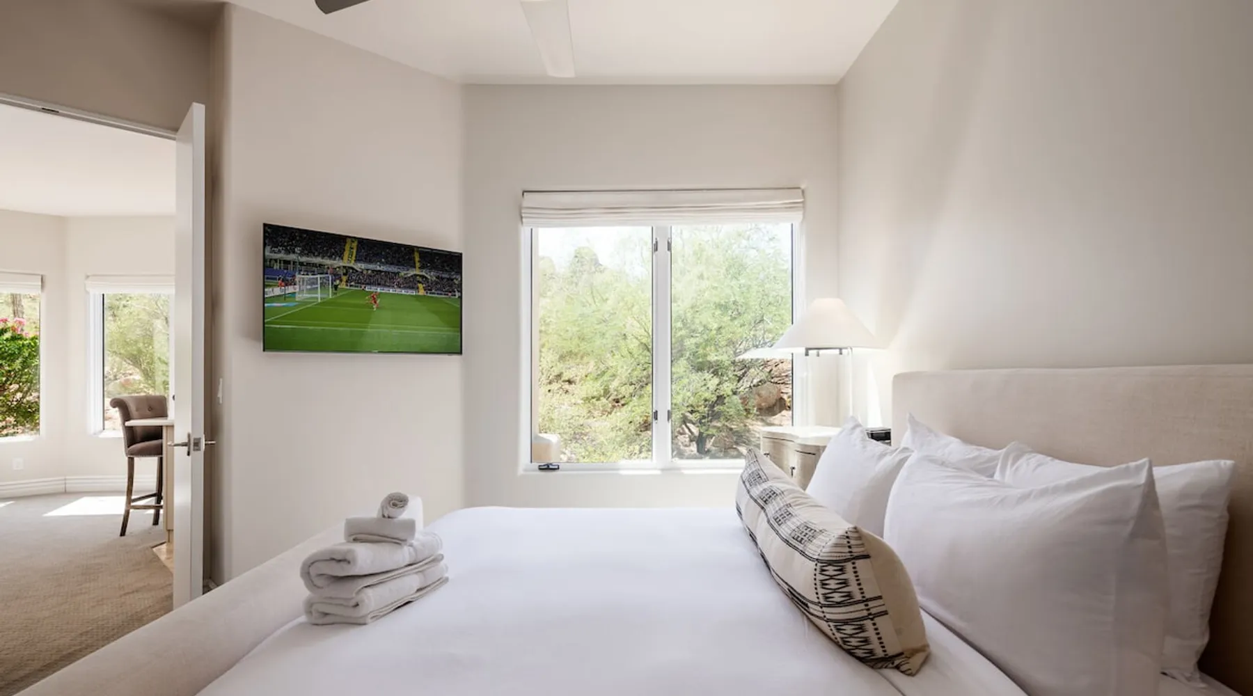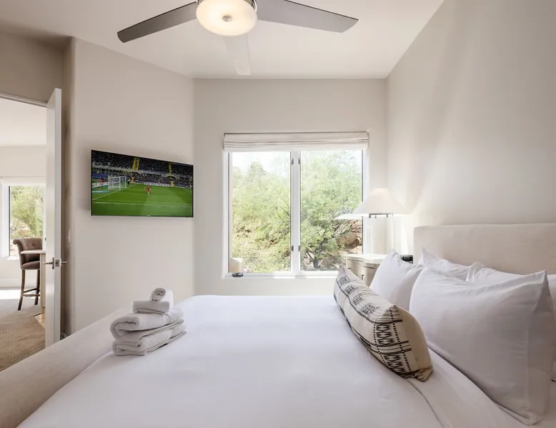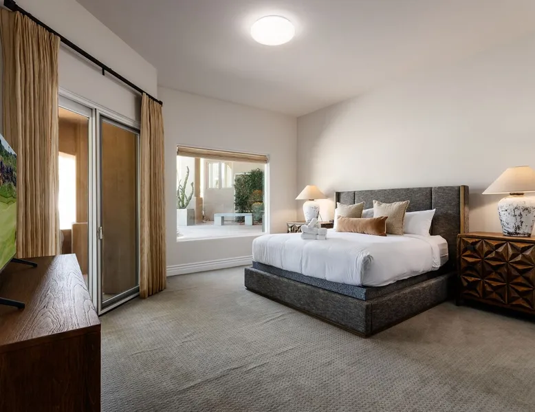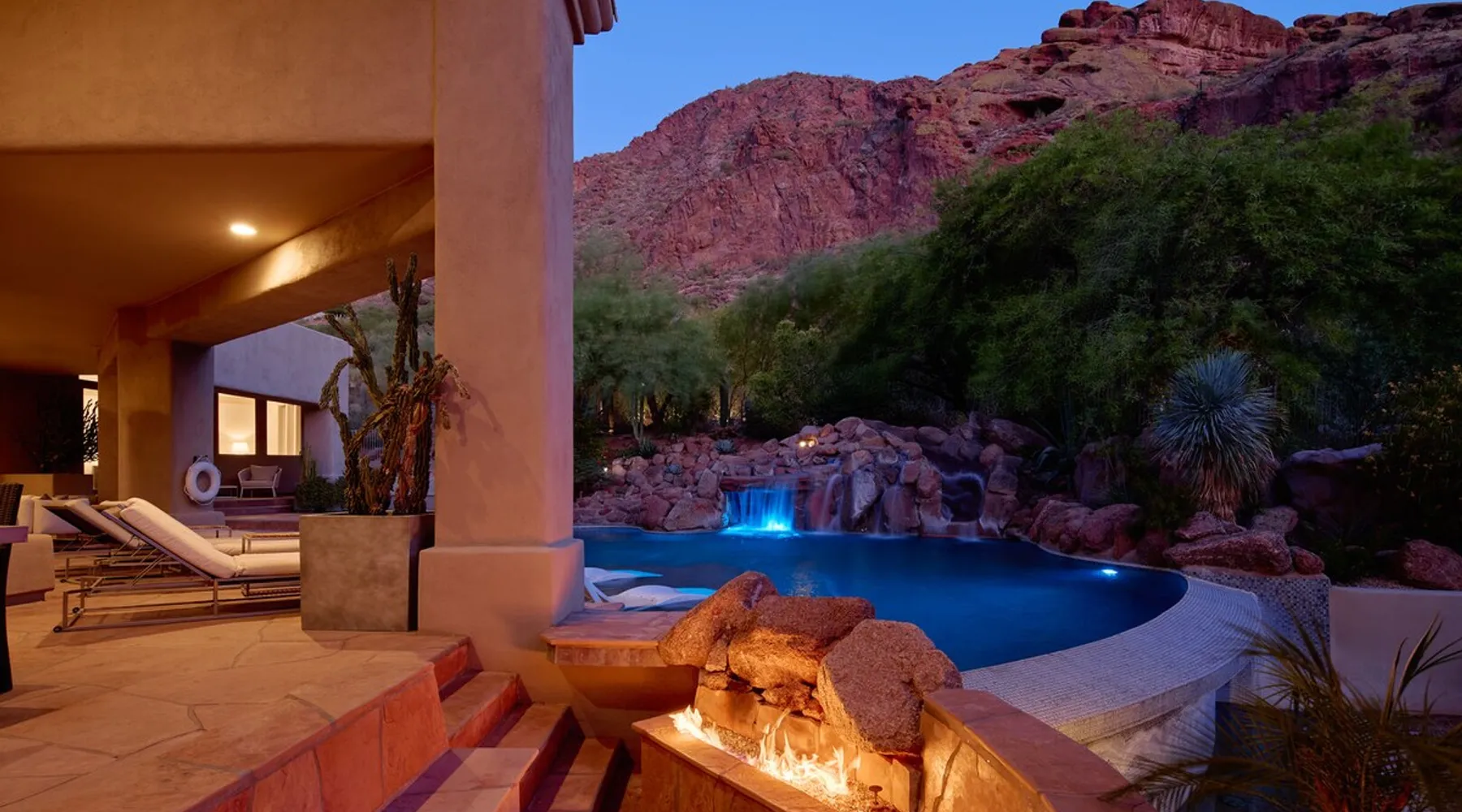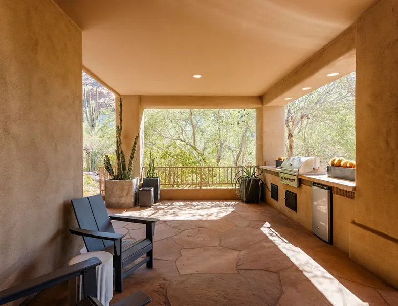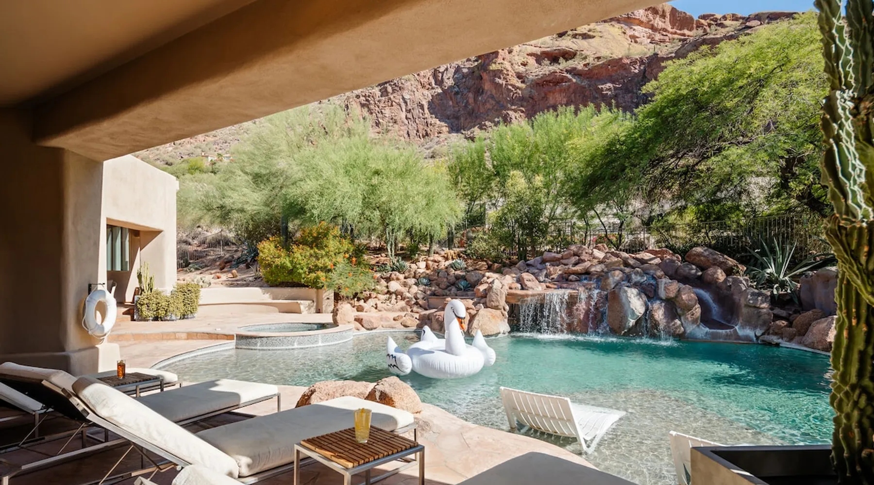 Welcome to Red Rock, an elegant estate nestled in exclusive Paradise Valley, known for stunning mountain views and upscale living. This luxurious retreat features a resort-style backyard with a sparkling pool and slide, elevated spa, fire pit, and patio with a grill and mini fridge. Inside, enjoy three sophisticated living areas, gourmet kitchens, and a private office—perfectly positioned on Camelback Mountain and just minutes from Scottsdale Fashion Square for unforgettable experiences. The space IF YOU ARE INTERESTED IN THIS PROPERTY, PLEASE READ THE LISTING ENTIRELY. By booking, the guest agrees they have read all the details about the property and agree to our terms and conditions. ⭐ Signature Amenities at Red Rock: - Resort-Style backyard oasis featuring a sparkling pool with slide, elevated pa, fire pit, and premium outdoor lounge with views of Camelback Mountain - Heated pool available for $225/night, Heated spa for $50/night, $250/night for both (optional) - Outdoor kitchen setup complete with a built-in grill and mini fridge, perfect for al fresco dining and evening gatherings - Expansive covered patio with cozy furnishings, Smart TV, and built-in heaters for year-round comfort - Elegant outdoor dining area with seating for 8 under the Arizona sky - Additional front patio for quiet morning coffee or evening cocktails - Three distinct open-concept living areas curated with upscale furnishings and layered textures - Spacious and private home office perfect for extended stays or remote work - Guest Casita with its own Kitchen and Living Area 🛋️ Sophisticated Living Spaces: - 3 beautifully appointed living areas offering ample space for relaxation and entertainment - Elegant designer furniture, accent lighting, and curated décor - Electric fireplace adds warmth and ambiance - Smart TV for premium streaming and entertainment - Custom wet bar with wine cooler, ideal for hosting or unwinding - Direct access to the backyard for effortless indoor-outdoor living - Board games thoughtfully provided for laid-back evenings 🍽️ Gourmet Kitchens & Dining: - Two fully outfitted kitchens featuring high-end stainless steel appliances - Main kitchen features high-end stainless steel appliances, including a double oven, 6-burner stove with griddle, microwave, dishwasher, and full-size refrigerator - Large kitchen island with elegant bar seating for 4—ideal for morning coffee or evening wine - Built-in mini wine fridge and dedicated ice maker in the main kitchen for seamless entertaining - Second kitchen includes additional prep space and bar seating for 3 guests—perfect for larger groups or private chef experiences - Elegant formal dining room with seating for 10—ideal for celebratory dinners and catered meals - Casual breakfast nook with seating for 5, great for relaxed breakfasts or mid-day bites - Drip coffee maker with complimentary coffee to start your mornings in comfort - Kitchen Starter Kit: 2 dishwashing tablet, dish soap, 1 dish sponge, 2 laundry detergent pods, disinfectant wipes, 2 paper towel rolls, 2 trash bags, 1 coffee bag, and 4 coffee filters. 🛌 Bedrooms & Bathrooms: - Primary Bedroom: King Bed with Cozy Furnishings, Smart TV, Electric Fireplace, Large Walk-In Closet, Access to the Backyard, and En-Suite Bathroom featuring Dual Vanity, Large Stand-In Shower with Multiple Shower Heads, Bathtub, and Get Ready Station - 2nd Bedroom: Queen Bed with a Smart TV, Dresser, Closet, Access to the Back Patio, and En-Suite Bathroom featuring Single Vanity, Stand-In Shower and Bathtub - 3rd Bedroom: King Bed with a Smart TV, Dresser, Walk-In Closet, Access to the Front Patio, and En-Suite Bathroom featuring Single Vanity with a Stand-In Shower - 4th Bedroom: King Bed with a Smart TV, Walk-In Closet, Access to the Front Patio, and En-Suite Bathroom featuring Single Vanity with a Stand-In Shower - 5th Bedroom (Casita): King Bed with a Smart TV, Closet, and a Jack and Jill Style En-Suite Bathroom featuring Single Vanity and Stand-In Shower. - Half Bathroom: Single Vanity - Bathroom Starter Kits: 1 Shampoo, 1 Conditioner, 1 Body Wash, 1 Body Bar Soap, 1 Hand Bar Soap, 1 Makeup Wipe, 1 Liner for Trash Can. 🚗 Parking: - 4 Car Garage - Additional Parking in the Driveway From tranquil mornings on the sun-soaked patio to elegant evenings by the fire, Red Rock offers a refined retreat where every detail is thoughtfully designed for elevated living. Whether you’re hosting under the stars, indulging in resort-style amenities, or exploring the beauty of Paradise Valley, this exceptional estate is your private sanctuary in the Sonoran desert. Experience luxury. Experience Red Rock. Interested in Pool Heat? Pool heat is typically requested between Oct - Apr when nightly temperatures get cooler. For this particular home, pool heat and spa heat are $250/night and only available for the full duration of your stay. Only pool heat is $225/night, and only spa heat is $50/night. We require 5 days' notice from check-in if you wish to add this amenity to your stay. 🗺️ Explore the Area: - Walking Distance - Located in Paradise Valley 12 min walk: Camelback Mountain - Driving Distance - 8 mins: Phoenician Golf Club 8 mins: Arcadia, Arizona 9 mins: Chaparral Park 9 mins: Silverado Golf Club 9 mins: Scottsdale Fashion Square 9 mins: Old Town Scottsdale 10 mins: Entertainment District 10 mins: Arizona Canal 12 mins: Scottsdale Stadium 13 mins: OdySea Aquarium 13 mins: Butterfly Wonderland 13 mins: Octane Raceway 13 mins: Mavrix Entertainment 13 mins: Topgolf 13 mins: Talking Stick Resort and Casino 13 mins: Talking Stick Golf Club 13 mins: Arizona Biltmore Golf Club 15 mins: StarFire Golf Club 15 mins: Salt River Fields 15 mins: Desert Botanical Garden 15 mins: Phoenix Zoo 15 mins: Uptown Phoenix 16 mins: Phoenix Sky Harbor 21 mins: Chase Field - Diamondbacks 21 mins: Footprint Center - Phoenix Suns 32 mins: State Farm Stadium - Arizona Cardinals Add Ons: - Air Mattresses ($50 - 1 per rese