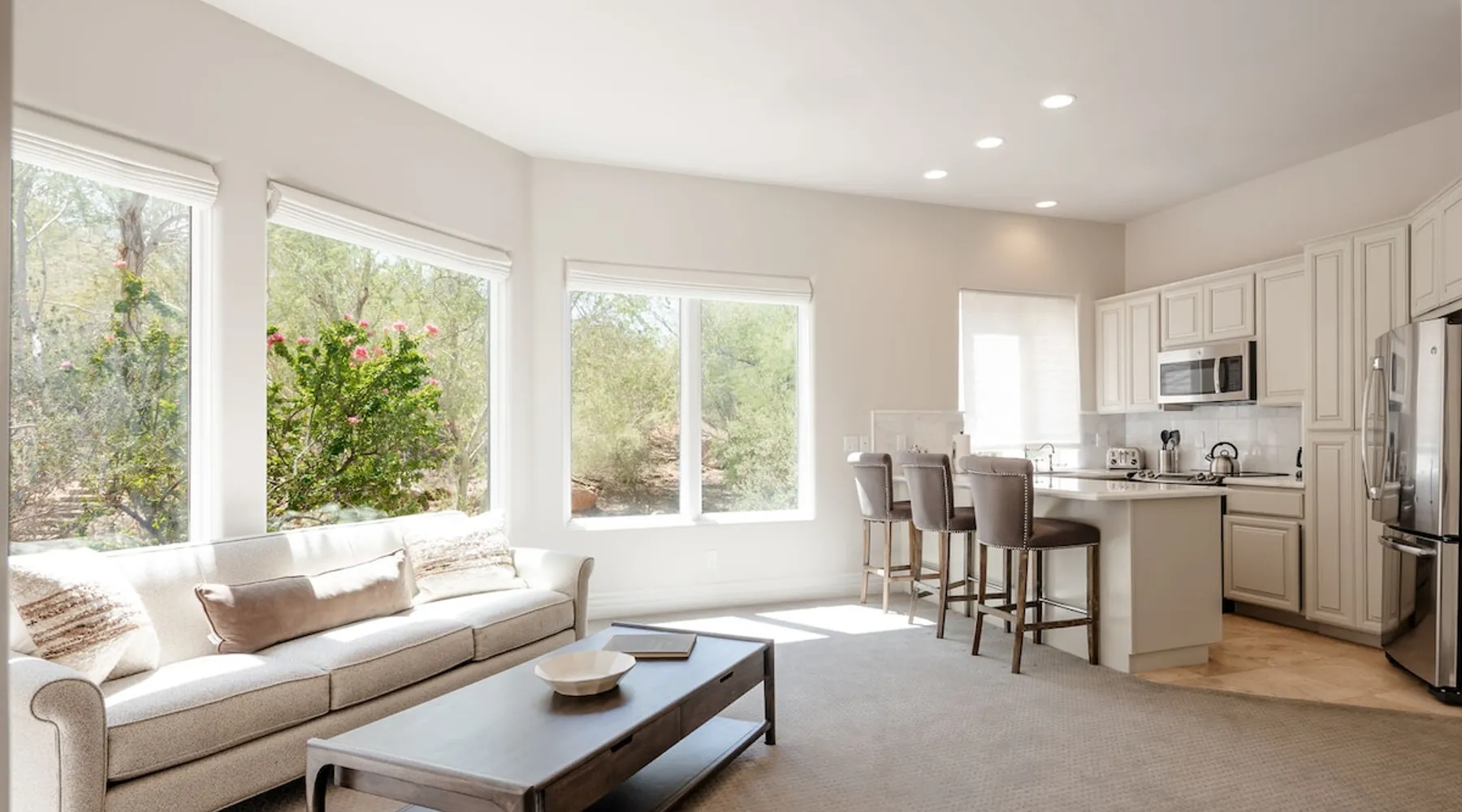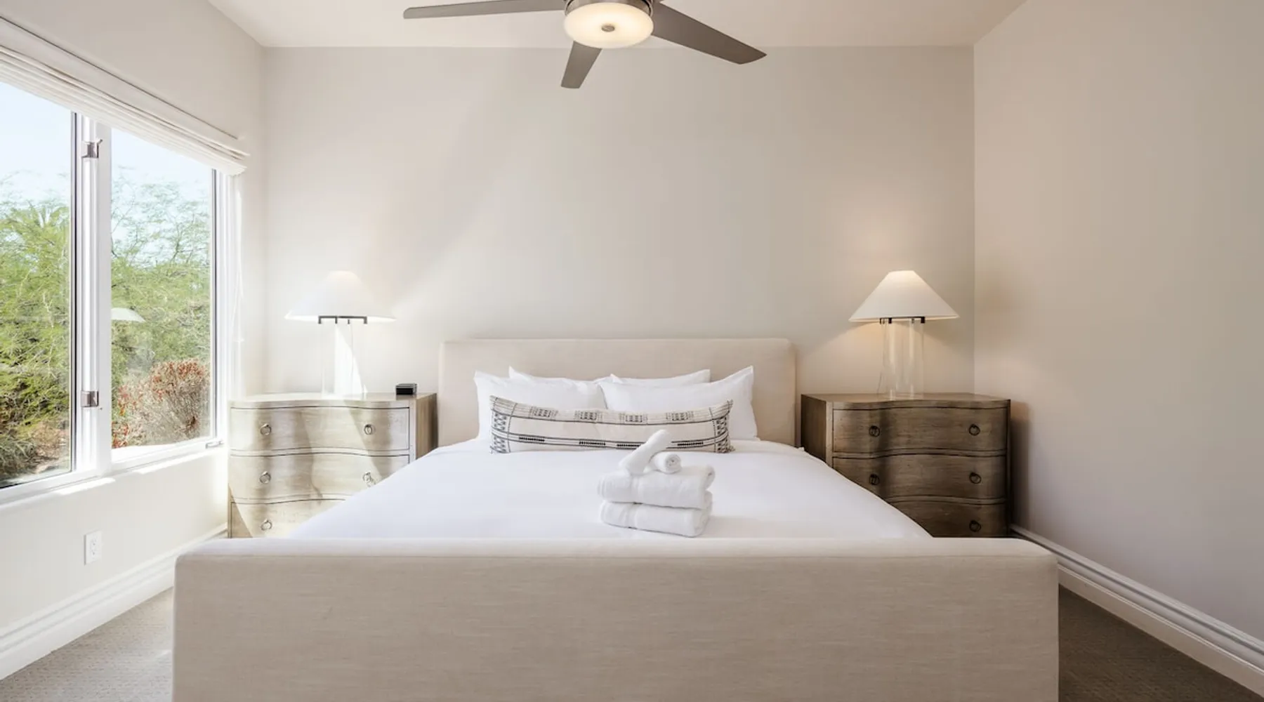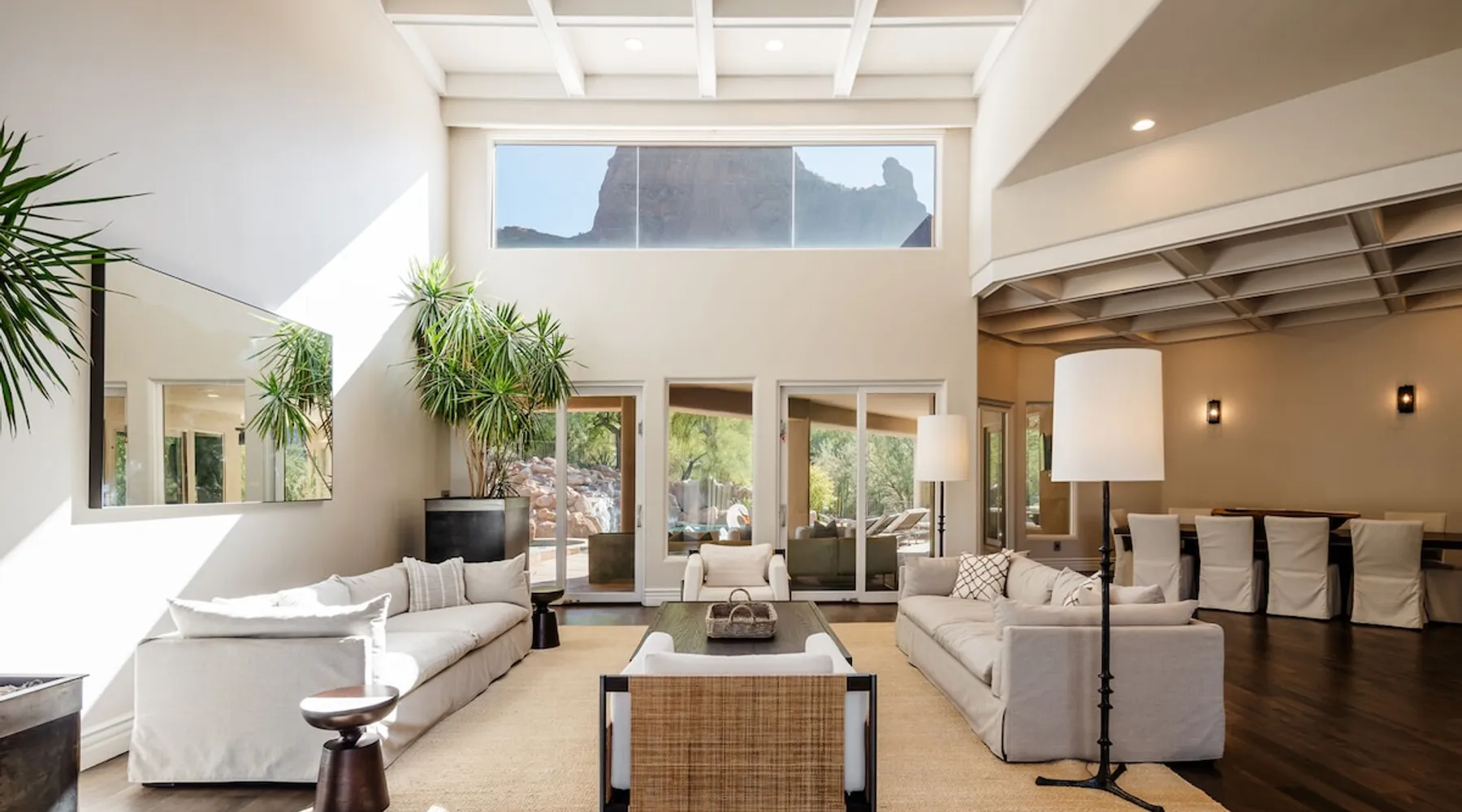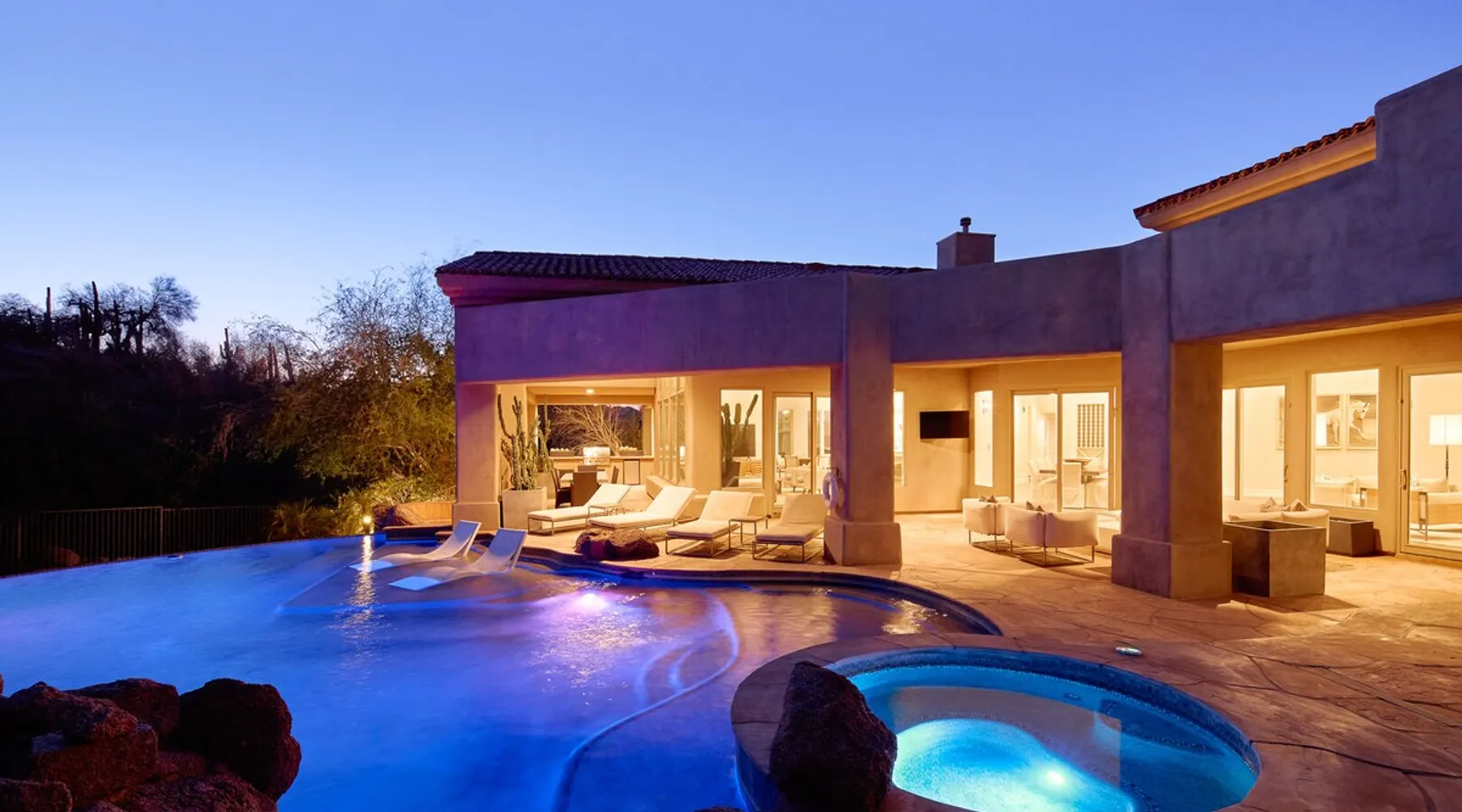 Welcome to Red Rock, an elegant estate nestled in exclusive Paradise Valley, known for stunning mountain views and upscale living. This luxurious retreat features a resort-style backyard with a sparkling pool and slide, elevated spa, fire pit, and patio with a grill and mini fridge. Inside, enjoy three sophisticated living areas, gourmet kitchens, and a private office—perfectly positioned on Camelback Mountain and just minutes from Scottsdale Fashion Square for unforgettable experiences. The space IF YOU ARE INTERESTED IN THIS PROPERTY, PLEASE READ THE LISTING ENTIRELY. By booking, the guest agrees they have read all the details about the property and agree to our terms and conditions. ⭐ Signature Amenities at Red Rock: - Resort-Style backyard oasis featuring a sparkling pool with slide, elevated pa, fire pit, and premium outdoor lounge with views of Camelback Mountain - Heated pool available for $225/night, Heated spa for $50/night, $250/night for both (optional) - Outdoor kitchen setup complete with a built-in grill and mini fridge, perfect for al fresco dining and evening gatherings - Expansive covered patio with cozy furnishings, Smart TV, and built-in heaters for year-round comfort - Elegant outdoor dining area with seating for 8 under the Arizona sky - Additional front patio for quiet morning coffee or evening cocktails - Three distinct open-concept living areas curated with upscale furnishings and layered textures - Spacious and private home office perfect for extended stays or remote work - Guest Casita with its own Kitchen and Living Area 🛋️ Sophisticated Living Spaces: - 3 beautifully appointed living areas offering ample space for relaxation and entertainment - Elegant designer furniture, accent lighting, and curated décor - Electric fireplace adds warmth and ambiance - Smart TV for premium streaming and entertainment - Custom wet bar with wine cooler, ideal for hosting or unwinding - Direct access to the backyard for effortless indoor-outdoor living - Board games thoughtfully provided for laid-back evenings 🍽️ Gourmet Kitchens & Dining: - Two fully outfitted kitchens featuring high-end stainless steel appliances - Main kitchen features high-end stainless steel appliances, including a double oven, 6-burner stove with griddle, microwave, dishwasher, and full-size refrigerator - Large kitchen island with elegant bar seating for 4—ideal for morning coffee or evening wine - Built-in mini wine fridge and dedicated ice maker in the main kitchen for seamless entertaining - Second kitchen includes additional prep space and bar seating for 3 guests—perfect for larger groups or private chef experiences - Elegant formal dining room with seating for 10—ideal for celebratory dinners and catered meals - Casual breakfast nook with seating for 5, great for relaxed breakfasts or mid-day bites - Drip coffee maker with complimentary coffee to start your mornings in comfort - Kitchen Starter Kit: 2 dishwashing tablet, dish soap, 1 dish sponge, 2 laundry detergent pods, disinfectant wipes, 2 paper towel rolls, 2 trash bags, 1 coffee bag, and 4 coffee filters. 🛌 Bedrooms & Bathrooms: - Primary Bedroom: King Bed with Cozy Furnishings, Smart TV, Electric Fireplace, Large Walk-In Closet, Access to the Backyard, and En-Suite Bathroom featuring Dual Vanity, Large Stand-In Shower with Multiple Shower Heads, Bathtub, and Get Ready Station - 2nd Bedroom: Queen Bed with a Smart TV, Dresser, Closet, Access to the Back Patio, and En-Suite Bathroom featuring Single Vanity, Stand-In Shower and Bathtub - 3rd Bedroom: King Bed with a Smart TV, Dresser, Walk-In Closet, Access to the Front Patio, and En-Suite Bathroom featuring Single Vanity with a Stand-In Shower - 4th Bedroom: King Bed with a Smart TV, Walk-In Closet, Access to the Front Patio, and En-Suite Bathroom featuring Single Vanity with a Stand-In Shower - 5th Bedroom (Casita): King Bed with a Smart TV, Closet, and a Jack and Jill Style En-Suite Bathroom featuring Single Vanity and Stand-In Shower. - Half Bathroom: Single Vanity - Bathroom Starter Kits: 1 Shampoo, 1 Conditioner, 1 Body Wash, 1 Body Bar Soap, 1 Hand Bar Soap, 1 Makeup Wipe, 1 Liner for Trash Can. 🚗 Parking: - 4 Car Garage - Additional Parking in the Driveway From tranquil mornings on the sun-soaked patio to elegant evenings by the fire, Red Rock offers a refined retreat where every detail is thoughtfully designed for elevated living. Whether you’re hosting under the stars, indulging in resort-style amenities, or exploring the beauty of Paradise Valley, this exceptional estate is your private sanctuary in the Sonoran desert. Experience luxury. Experience Red Rock. Interested in Pool Heat? Pool heat is typically requested between Oct - Apr when nightly temperatures get cooler. For this particular home, pool heat and spa heat are $250/night and only available for the full duration of your stay. Only pool heat is $225/night, and only spa heat is $50/night. We require 5 days' notice from check-in if you wish to add this amenity to your stay. 🗺️ Explore the Area: - Walking Distance - Located in Paradise Valley 12 min walk: Camelback Mountain - Driving Distance - 8 mins: Phoenician Golf Club 8 mins: Arcadia, Arizona 9 mins: Chaparral Park 9 mins: Silverado Golf Club 9 mins: Scottsdale Fashion Square 9 mins: Old Town Scottsdale 10 mins: Entertainment District 10 mins: Arizona Canal 12 mins: Scottsdale Stadium 13 mins: OdySea Aquarium 13 mins: Butterfly Wonderland 13 mins: Octane Raceway 13 mins: Mavrix Entertainment 13 mins: Topgolf 13 mins: Talking Stick Resort and Casino 13 mins: Talking Stick Golf Club 13 mins: Arizona Biltmore Golf Club 15 mins: StarFire Golf Club 15 mins: Salt River Fields 15 mins: Desert Botanical Garden 15 mins: Phoenix Zoo 15 mins: Uptown Phoenix 16 mins: Phoenix Sky Harbor 21 mins: Chase Field - Diamondbacks 21 mins: Footprint Center - Phoenix Suns 32 mins: State Farm Stadium - Arizona Cardinals Add Ons: - Air Mattresses ($50 - 1 per rese