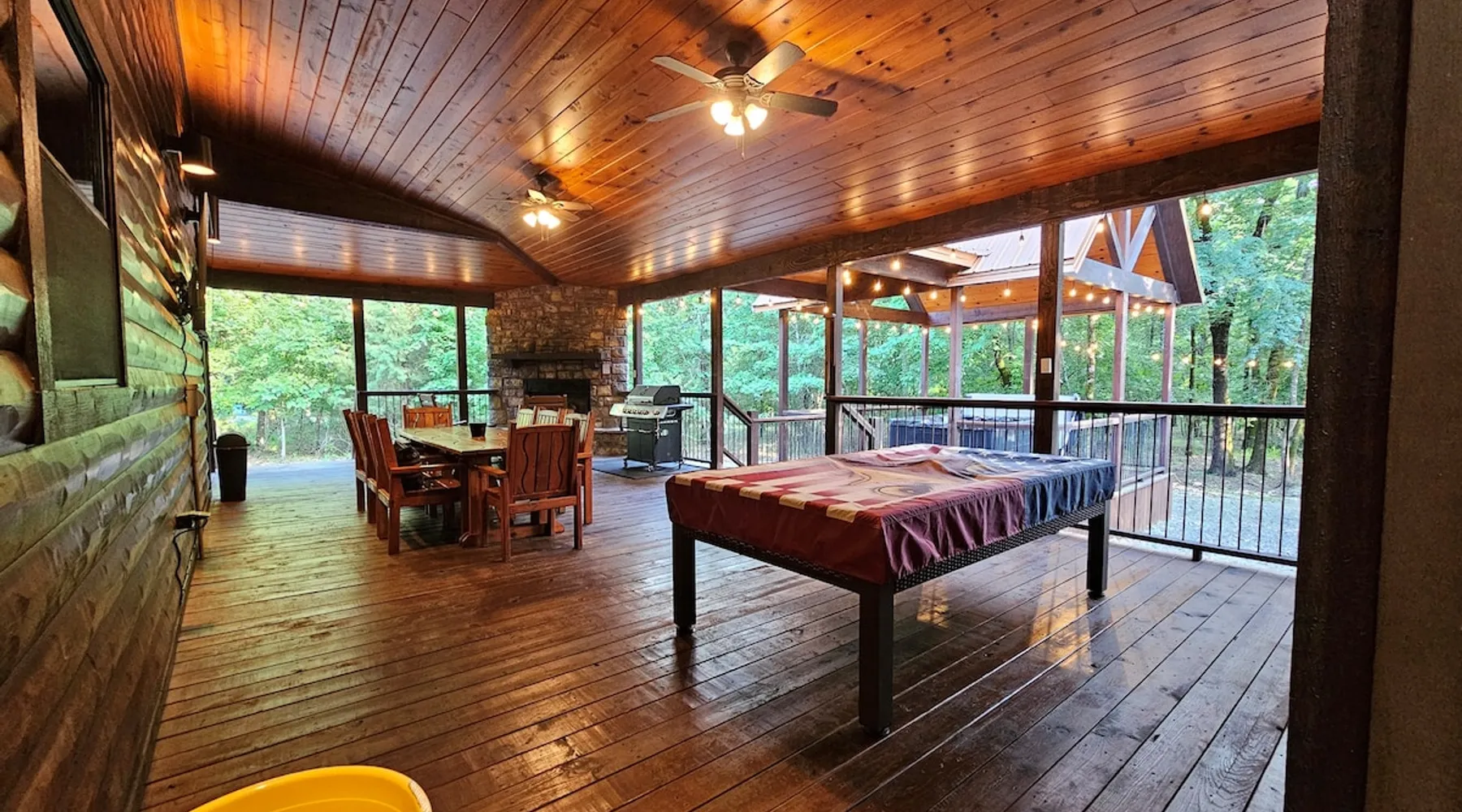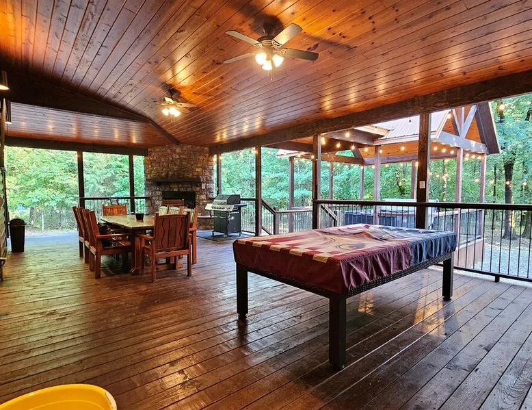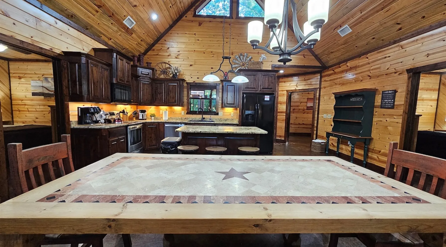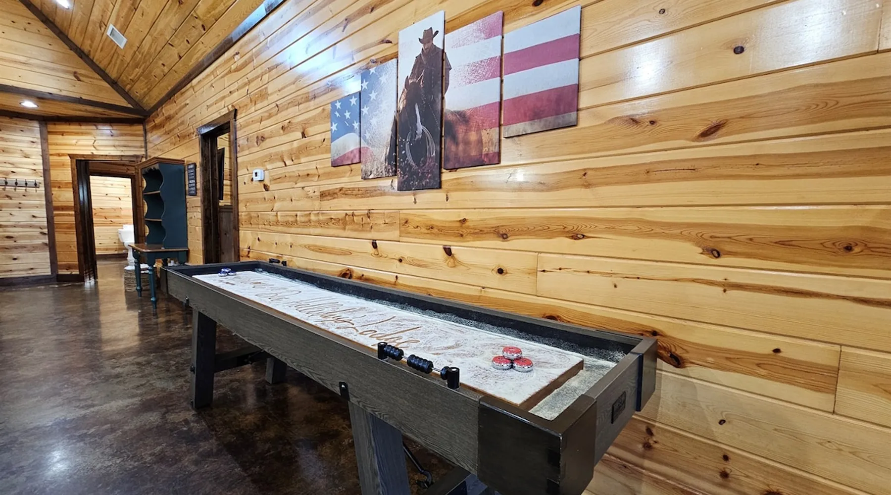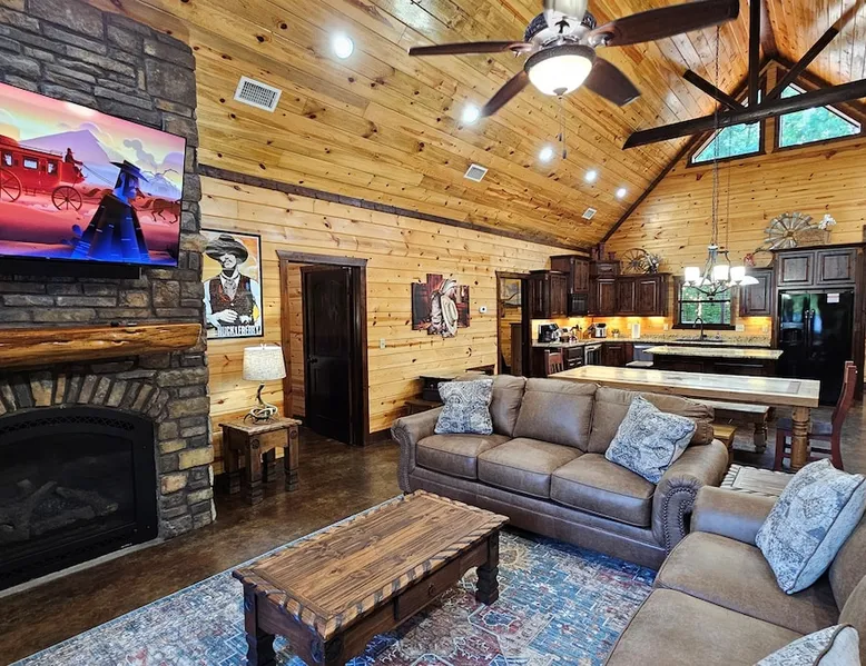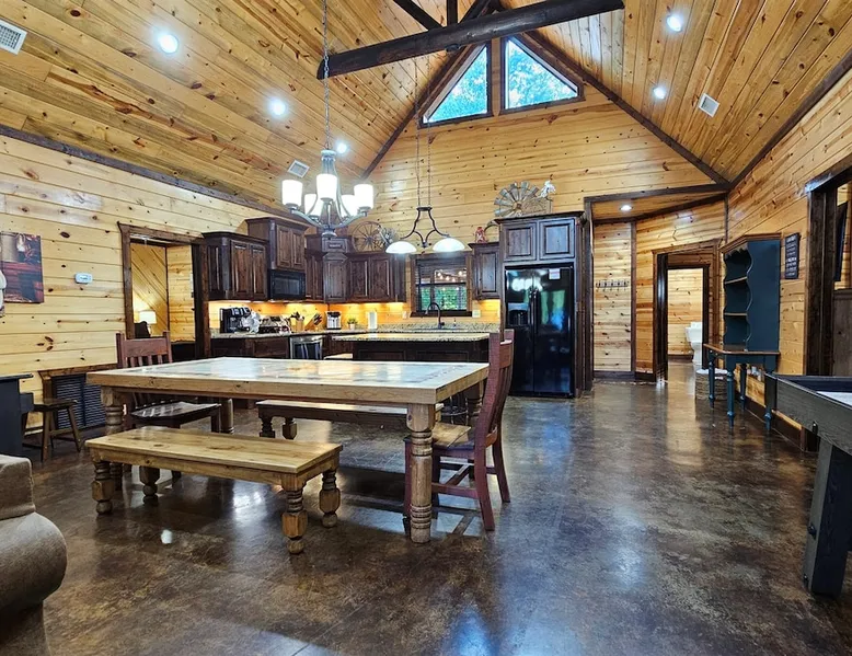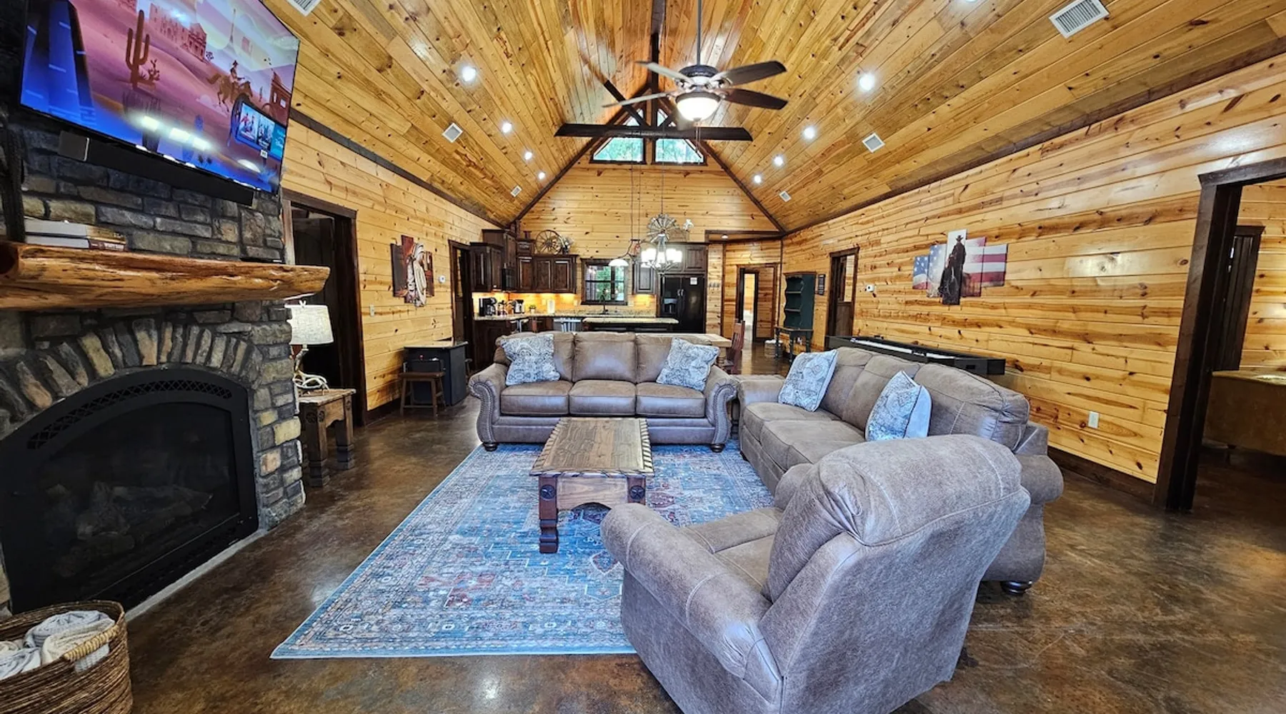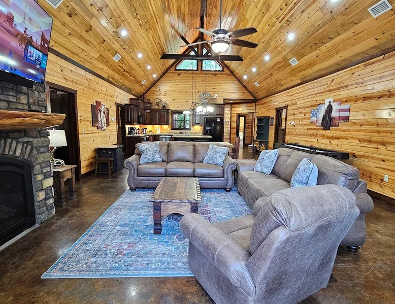 Bring the whole crew to Doc Holliday’s Lodge, a spacious 5-bedroom cabin near Broken Bow Lake with room to relax, play, and reconnect. Enjoy 5 king bedrooms, a hot tub, outdoor pool table, playground, and plenty of space for memory-making inside and out. Perfect for families, friends, and pet-friendly getaways! The space Welcome to Doc Holliday’s Lodge – Big Comfort, Bigger Fun! Round up the crew and escape to Doc Holliday’s Lodge, a stunning five-bedroom log cabin nestled in the serene Deer Ridge area, just minutes from Broken Bow Lake and Beavers Bend State Park. With five king bedrooms, spacious outdoor living, and family-friendly amenities galore, this lodge is built for making memories. 🛏️ 5 King Bedrooms | Sleeps Up to 12 Spread out in five spacious king suites, each with Smart TVs and cozy cabin vibes. The master bedroom features a private ensuite with double sinks and a tile shower, while the other rooms share two additional full baths—perfect for large families or group getaways. 🍳 Chef-Ready Kitchen & Coffee Bar The heart of the lodge is a beautiful chef’s kitchen with granite counters, custom cabinets, and everything you need—full-size appliances, an air fryer, and a fully stocked coffee and tea bar. Whether you’re whipping up a big breakfast or grilling outside, dining together is easy with plenty of seating. 🛋️ Relax Indoors in Rustic Style The open-concept living room is perfect for connecting, with plush leather seating, a gas fireplace, and a large SmartTV for movie nights. It’s a cozy, communal space where everyone can feel at home. 🎯 Let the Games Begin Whether inside or out, there’s no shortage of ways to play. Challenge your group to a game of shuffleboard or arcade classics Rack ‘em up on the outdoor pool table Soak in the hot tub under the stars 🌲 Outdoor Fun for Everyone Catch the game or a movie on the deck TV Kids can burn off energy on the playground with swings, slide & climbing wall Enjoy campfires, horseshoes, tetherball, and more! Gas fireplace and BBQ grill 🐾 Pet-Friendly + Boat Parking Bring your pups—Doc Holliday’s is dog-friendly for up to two small dogs (under 50 lbs, pet fee applies). Plus, there’s plenty of space in the large driveway for boat parking. With high-speed Wi-Fi, seasonal fireplaces (Oct–April), and unforgettable extras for all ages, Doc Holliday’s Lodge is more than a place to stay—it’s a place to experience the best of Broken Bow together. 🎶 Please Note: Doc Holliday’s Lodge is located near Hochatown Saloon (0.5 miles), a popular local venue known for its live music and weekend nightlife. Guests may occasionally hear music in the late evening, especially on weekends or during events. Many guests enjoy the lively atmosphere and proximity to local entertainment, but light sleepers may prefer to bring earplugs or a sound machine. Guest access You'll receive a private door code for keyless entry — no need to meet anyone in person. Enjoy the freedom of self check-in and to come and go at your convenience. You'll have full access to the entire property and available amenities during your stay. Other things to note Enhance your stay with one of our curated add-ons (Subject to Availability): • 🍫 S’mores Kits – Everything you need for fireside treats • 🪵 Firewood Bundles – Ready-to-use bundles for the outdoor firepit • 💐🎁 Flowers, Candy & Gift Packages – Perfect for romantic gestures, birthdays, or surprise celebrations Important Booking Info • 📄 A rental agreement must be signed electronically after booking • 🪪 A government-issued photo ID is required to confirm your reservation • 💳 A refundable security deposit will be held during your stay, just in case Security For your peace of mind, one exterior security camera is located at the front entry, facing out, monitoring only the driveway and entryway — never inside or in private outdoor areas. Gas log fireplaces are seasonal October through April.