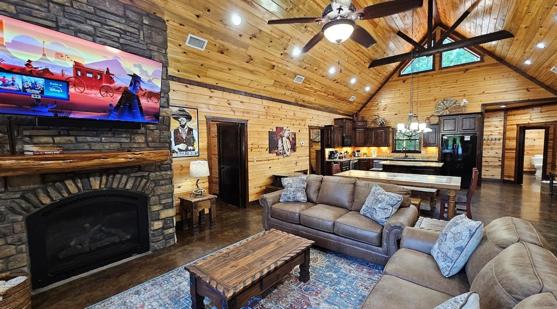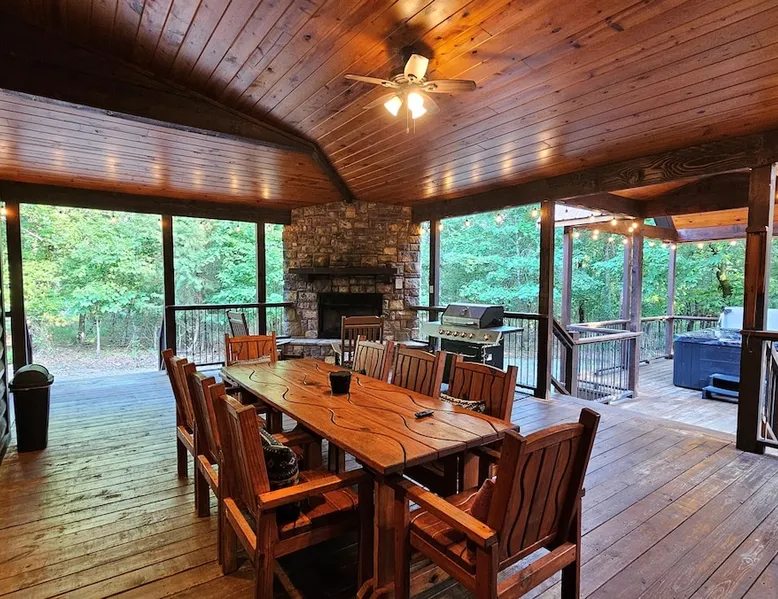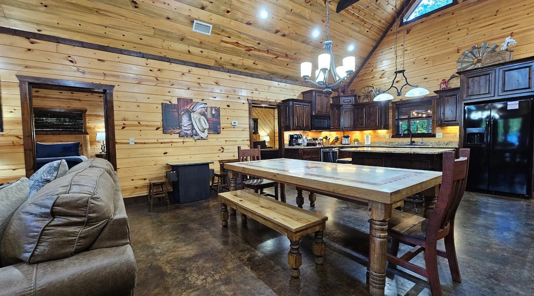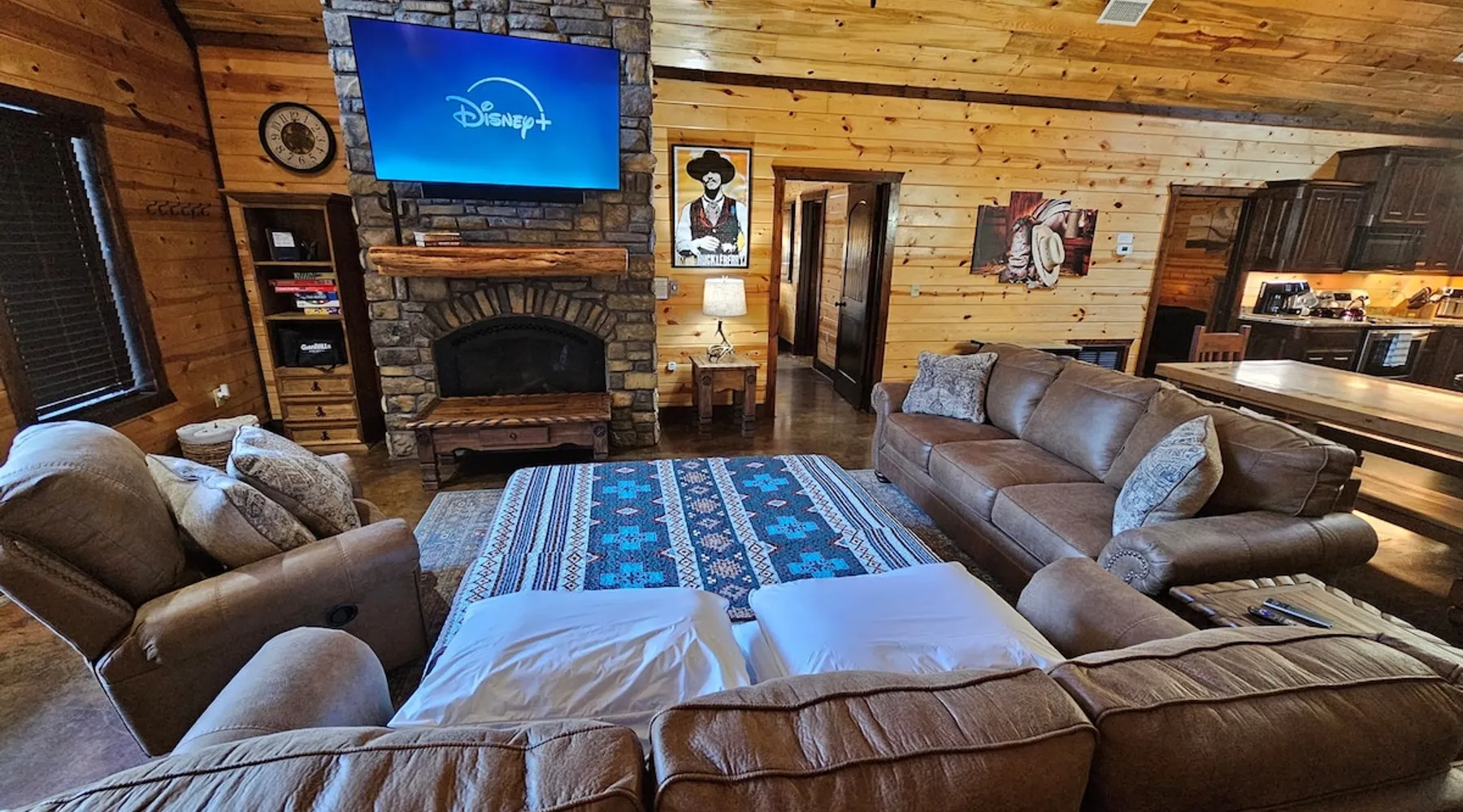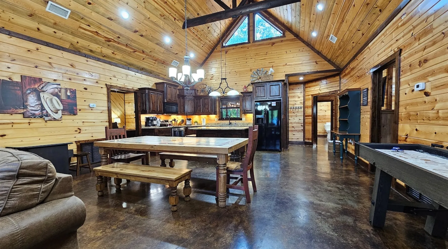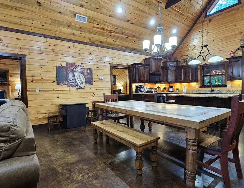 Bring the whole crew to Doc Holliday’s Lodge, a spacious 5-bedroom cabin near Broken Bow Lake with room to relax, play, and reconnect. Enjoy 5 king bedrooms, a hot tub, outdoor pool table, playground, and plenty of space for memory-making inside and out. Perfect for families, friends, and pet-friendly getaways! The space Welcome to Doc Holliday’s Lodge – Big Comfort, Bigger Fun! Round up the crew and escape to Doc Holliday’s Lodge, a stunning five-bedroom log cabin nestled in the serene Deer Ridge area, just minutes from Broken Bow Lake and Beavers Bend State Park. With five king bedrooms, spacious outdoor living, and family-friendly amenities galore, this lodge is built for making memories. 🛏️ 5 King Bedrooms | Sleeps Up to 12 Spread out in five spacious king suites, each with Smart TVs and cozy cabin vibes. The master bedroom features a private ensuite with double sinks and a tile shower, while the other rooms share two additional full baths—perfect for large families or group getaways. 🍳 Chef-Ready Kitchen & Coffee Bar The heart of the lodge is a beautiful chef’s kitchen with granite counters, custom cabinets, and everything you need—full-size appliances, an air fryer, and a fully stocked coffee and tea bar. Whether you’re whipping up a big breakfast or grilling outside, dining together is easy with plenty of seating. 🛋️ Relax Indoors in Rustic Style The open-concept living room is perfect for connecting, with plush leather seating, a gas fireplace, and a large SmartTV for movie nights. It’s a cozy, communal space where everyone can feel at home. 🎯 Let the Games Begin Whether inside or out, there’s no shortage of ways to play. Challenge your group to a game of shuffleboard or arcade classics Rack ‘em up on the outdoor pool table Soak in the hot tub under the stars 🌲 Outdoor Fun for Everyone Catch the game or a movie on the deck TV Kids can burn off energy on the playground with swings, slide & climbing wall Enjoy campfires, horseshoes, tetherball, and more! Gas fireplace and BBQ grill 🐾 Pet-Friendly + Boat Parking Bring your pups—Doc Holliday’s is dog-friendly for up to two small dogs (under 50 lbs, pet fee applies). Plus, there’s plenty of space in the large driveway for boat parking. With high-speed Wi-Fi, seasonal fireplaces (Oct–April), and unforgettable extras for all ages, Doc Holliday’s Lodge is more than a place to stay—it’s a place to experience the best of Broken Bow together. 🎶 Please Note: Doc Holliday’s Lodge is located near Hochatown Saloon (0.5 miles), a popular local venue known for its live music and weekend nightlife. Guests may occasionally hear music in the late evening, especially on weekends or during events. Many guests enjoy the lively atmosphere and proximity to local entertainment, but light sleepers may prefer to bring earplugs or a sound machine. Guest access You'll receive a private door code for keyless entry — no need to meet anyone in person. Enjoy the freedom of self check-in and to come and go at your convenience. You'll have full access to the entire property and available amenities during your stay. Other things to note Enhance your stay with one of our curated add-ons (Subject to Availability): • 🍫 S’mores Kits – Everything you need for fireside treats • 🪵 Firewood Bundles – Ready-to-use bundles for the outdoor firepit • 💐🎁 Flowers, Candy & Gift Packages – Perfect for romantic gestures, birthdays, or surprise celebrations Important Booking Info • 📄 A rental agreement must be signed electronically after booking • 🪪 A government-issued photo ID is required to confirm your reservation • 💳 A refundable security deposit will be held during your stay, just in case Security For your peace of mind, one exterior security camera is located at the front entry, facing out, monitoring only the driveway and entryway — never inside or in private outdoor areas. Gas log fireplaces are seasonal October through April.