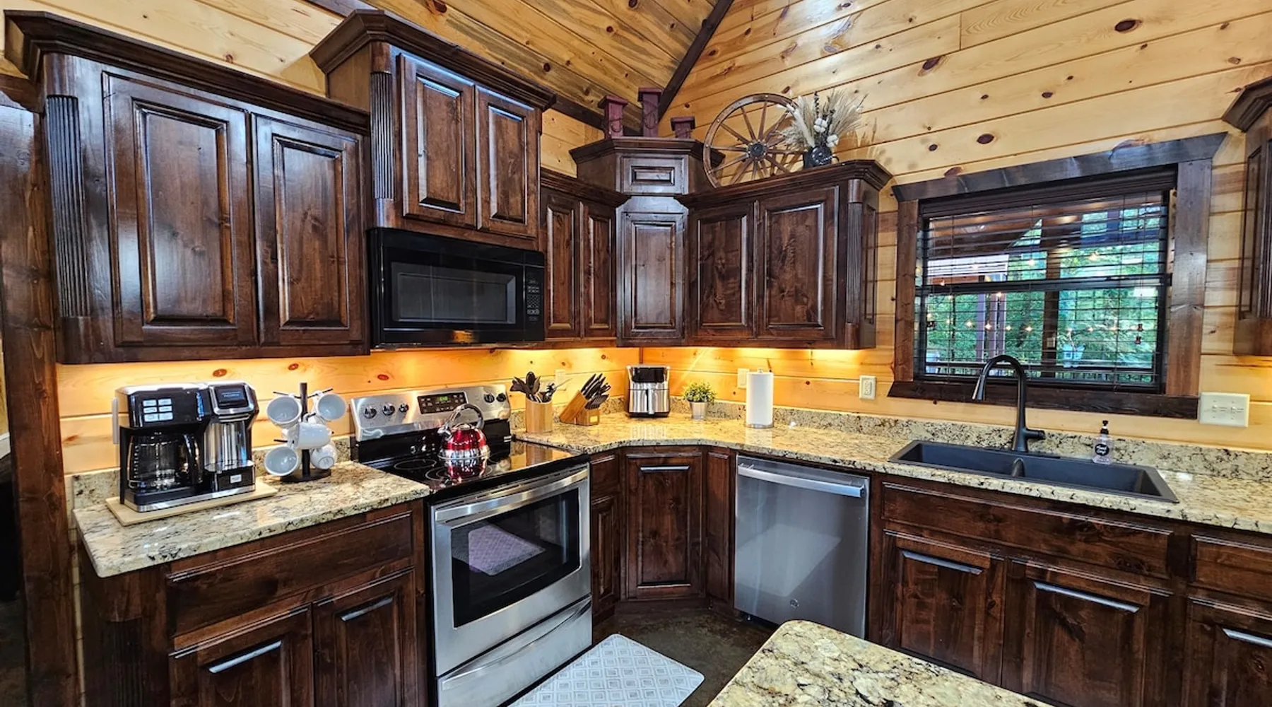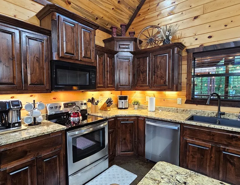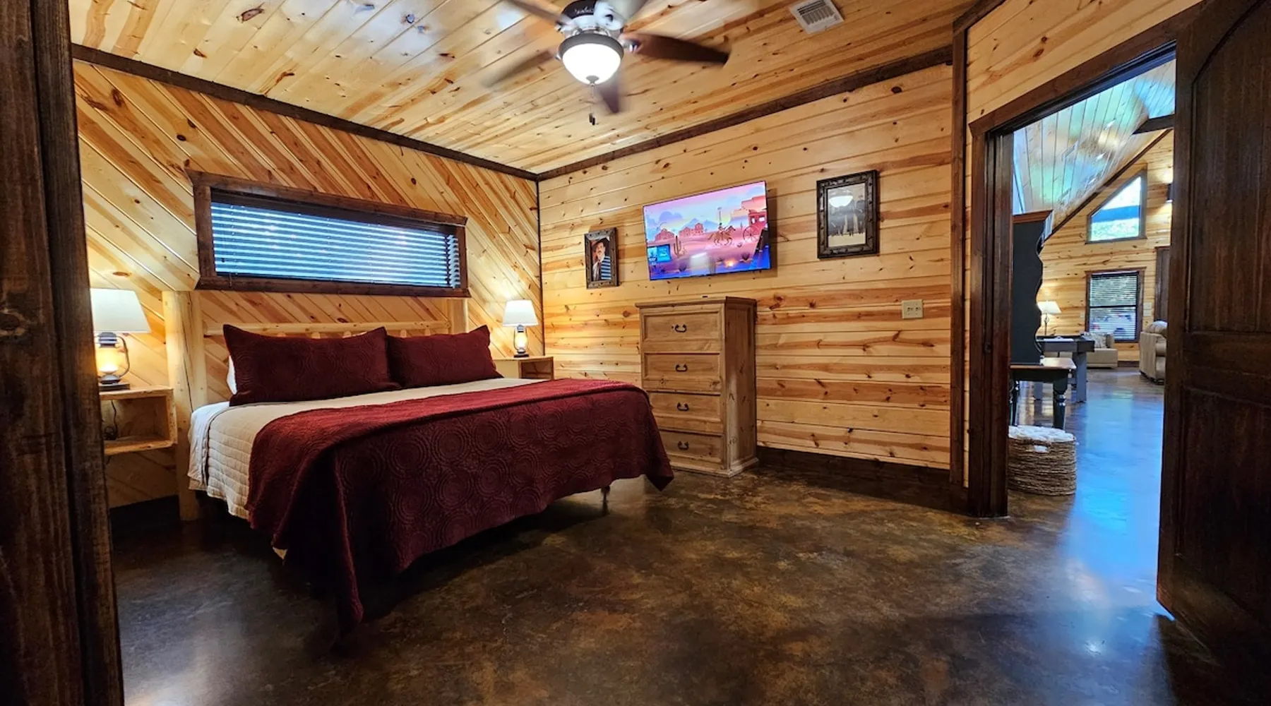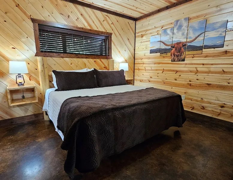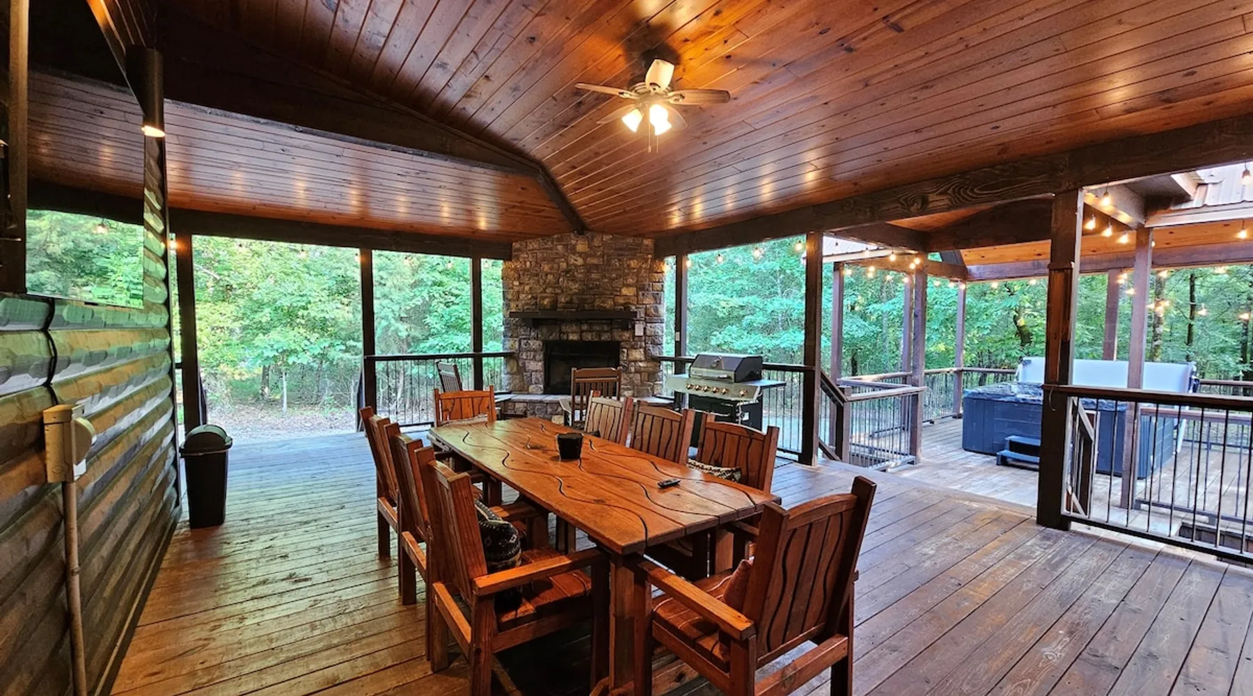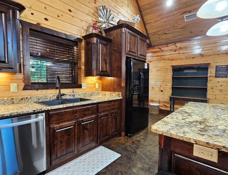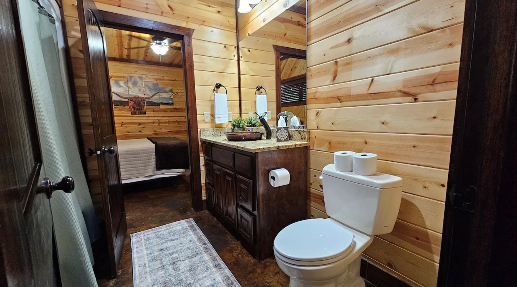 Bring the whole crew to Doc Holliday’s Lodge, a spacious 5-bedroom cabin near Broken Bow Lake with room to relax, play, and reconnect. Enjoy 5 king bedrooms, a hot tub, outdoor pool table, playground, and plenty of space for memory-making inside and out. Perfect for families, friends, and pet-friendly getaways! The space Welcome to Doc Holliday’s Lodge – Big Comfort, Bigger Fun! Round up the crew and escape to Doc Holliday’s Lodge, a stunning five-bedroom log cabin nestled in the serene Deer Ridge area, just minutes from Broken Bow Lake and Beavers Bend State Park. With five king bedrooms, spacious outdoor living, and family-friendly amenities galore, this lodge is built for making memories. 🛏️ 5 King Bedrooms | Sleeps Up to 12 Spread out in five spacious king suites, each with Smart TVs and cozy cabin vibes. The master bedroom features a private ensuite with double sinks and a tile shower, while the other rooms share two additional full baths—perfect for large families or group getaways. 🍳 Chef-Ready Kitchen & Coffee Bar The heart of the lodge is a beautiful chef’s kitchen with granite counters, custom cabinets, and everything you need—full-size appliances, an air fryer, and a fully stocked coffee and tea bar. Whether you’re whipping up a big breakfast or grilling outside, dining together is easy with plenty of seating. 🛋️ Relax Indoors in Rustic Style The open-concept living room is perfect for connecting, with plush leather seating, a gas fireplace, and a large SmartTV for movie nights. It’s a cozy, communal space where everyone can feel at home. 🎯 Let the Games Begin Whether inside or out, there’s no shortage of ways to play. Challenge your group to a game of shuffleboard or arcade classics Rack ‘em up on the outdoor pool table Soak in the hot tub under the stars 🌲 Outdoor Fun for Everyone Catch the game or a movie on the deck TV Kids can burn off energy on the playground with swings, slide & climbing wall Enjoy campfires, horseshoes, tetherball, and more! Gas fireplace and BBQ grill 🐾 Pet-Friendly + Boat Parking Bring your pups—Doc Holliday’s is dog-friendly for up to two small dogs (under 50 lbs, pet fee applies). Plus, there’s plenty of space in the large driveway for boat parking. With high-speed Wi-Fi, seasonal fireplaces (Oct–April), and unforgettable extras for all ages, Doc Holliday’s Lodge is more than a place to stay—it’s a place to experience the best of Broken Bow together. 🎶 Please Note: Doc Holliday’s Lodge is located near Hochatown Saloon (0.5 miles), a popular local venue known for its live music and weekend nightlife. Guests may occasionally hear music in the late evening, especially on weekends or during events. Many guests enjoy the lively atmosphere and proximity to local entertainment, but light sleepers may prefer to bring earplugs or a sound machine. Guest access You'll receive a private door code for keyless entry — no need to meet anyone in person. Enjoy the freedom of self check-in and to come and go at your convenience. You'll have full access to the entire property and available amenities during your stay. Other things to note Enhance your stay with one of our curated add-ons (Subject to Availability): • 🍫 S’mores Kits – Everything you need for fireside treats • 🪵 Firewood Bundles – Ready-to-use bundles for the outdoor firepit • 💐🎁 Flowers, Candy & Gift Packages – Perfect for romantic gestures, birthdays, or surprise celebrations Important Booking Info • 📄 A rental agreement must be signed electronically after booking • 🪪 A government-issued photo ID is required to confirm your reservation • 💳 A refundable security deposit will be held during your stay, just in case Security For your peace of mind, one exterior security camera is located at the front entry, facing out, monitoring only the driveway and entryway — never inside or in private outdoor areas. Gas log fireplaces are seasonal October through April.