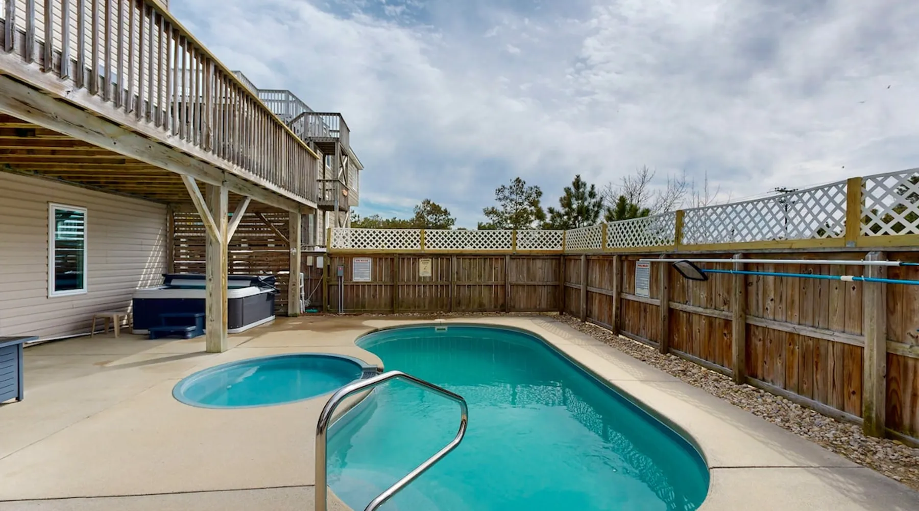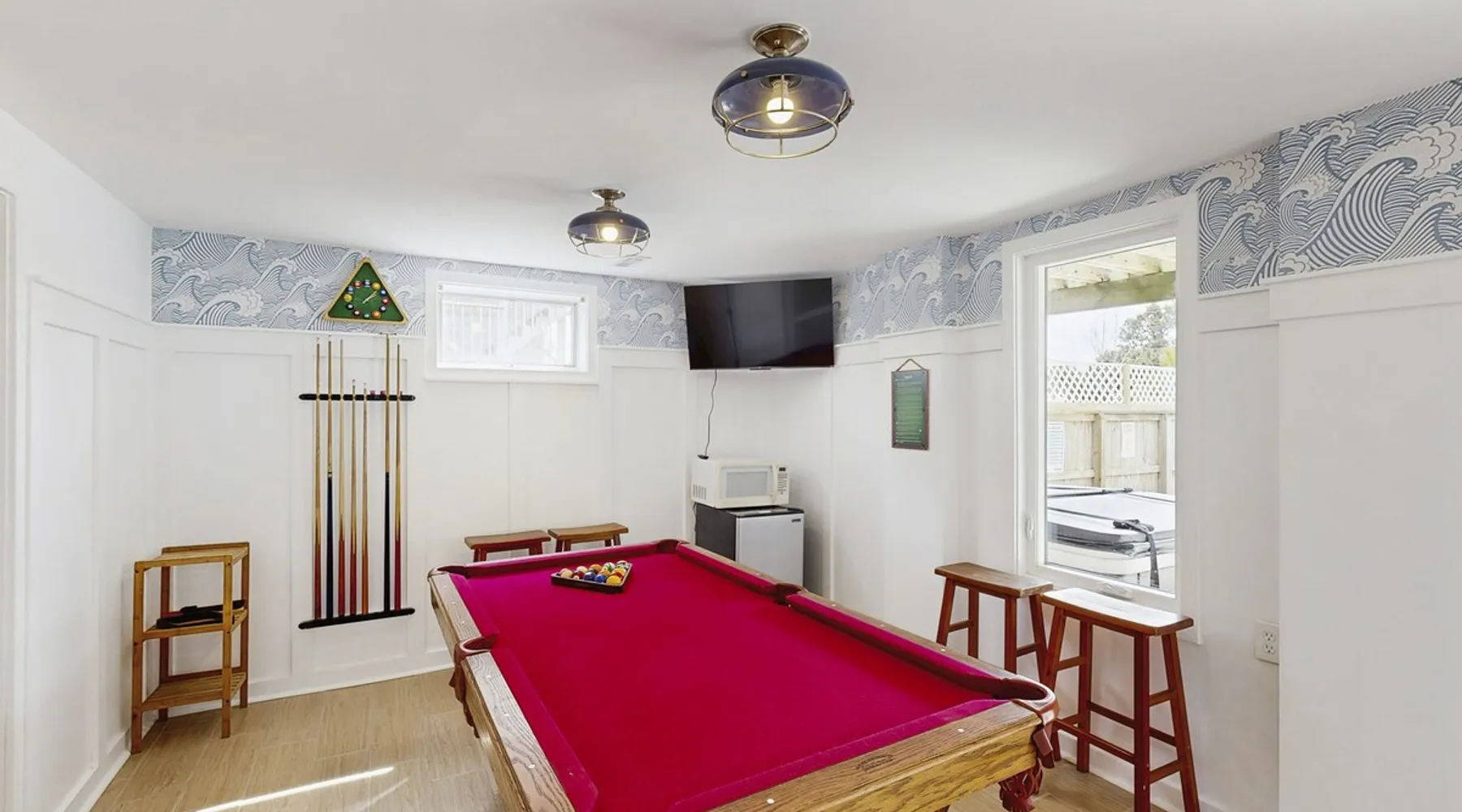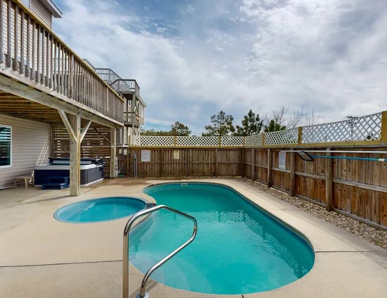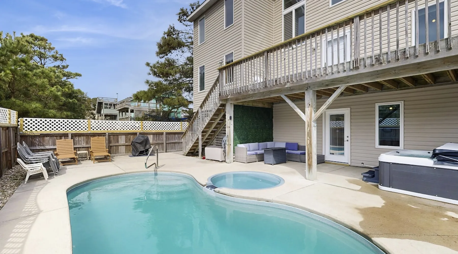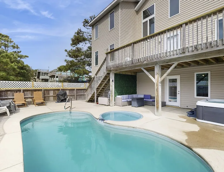 Modern 4BR home with Private Pool, Hot Tub and close to 7-acre lake The space Escape to the charming 'Lemon Drop Inn' in Corolla, NC, where your worries will simply melt away. This delightful house is the perfect home away from home for a family vacation at the Outer Banks. This stunning, newly renovated 4-bedroom, 3 full bath, and 2 half bath home is designed for relaxation and entertainment. Step outside to your private oasis with a gated pool, hot tub, and kiddie pool, ensuring fun for guests of all ages and perfect for unwinding after a day in the sun. The spacious game room, which connects directly to the pool area, ensures endless fun for all ages. With three expansive decks, there’s no shortage of outdoor lounge space to soak in the ocean breeze. Located just a 10-minute walk to the beach and a 2-minute walk to a serene 7-acre lake, perfect for fishing and observing indigenous wildlife like ducks, egrets, and turtles. This home offers the perfect balance of coastal charm and modern convenience. Inside, the open-concept living space is bright and airy, featuring stylish updates throughout. The kitchen boasts sleek countertops, stainless steel appliances, and plenty of room for entertaining. The beautifully appointed bedrooms provide a tranquil escape, while the luxurious bathrooms offer spa-like finishes. The house has a Great Room with a 65' Roku TV, a closet filled with board games and comfortable sleeping arrangements, including a King En Suite Bedroom, a Queen En Suite Bedroom, and additional bedrooms on the mid-level with Roku Streaming LCD TVs throughout the property. 'Lemon Drop Inn' is dog-friendly, so your furry family member can join in on the vacation fun. This prime location is just a 3-minute drive to Timbuk II, where you’ll find fantastic shopping, top-rated restaurants, go-karts, mini golf, and more. Also nearby is the Currituck Club, Currituck Lighthouse, and the Corolla Wild Horse Museum. Need groceries? Food Lion is just 3 minutes away, and Harris Teeter is only 5 minutes away for your convenience. Private Pool Dates: The private pool is open from April 1 through October 15th. The private pool is unavailable outside of these dates. Things to note: This is a 3-level home.