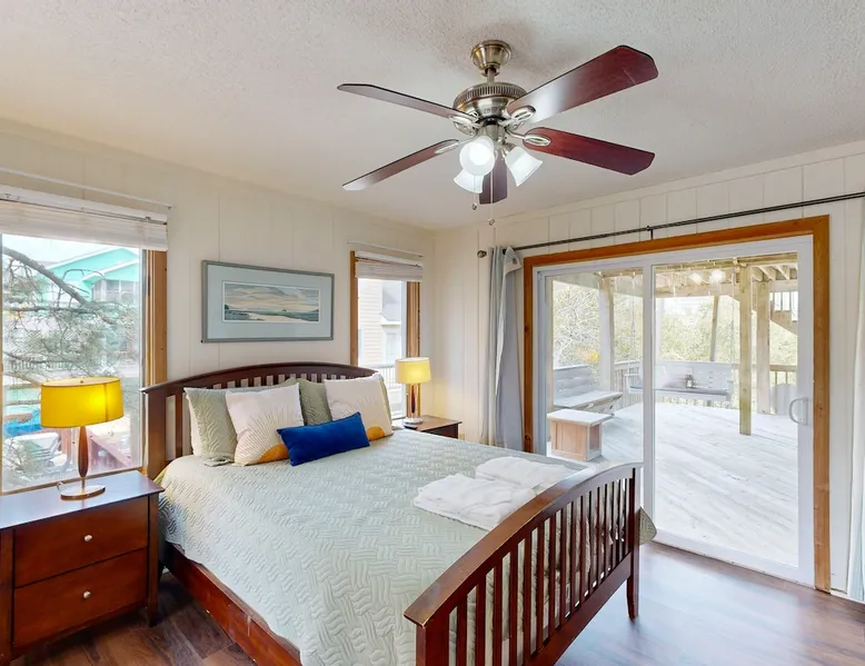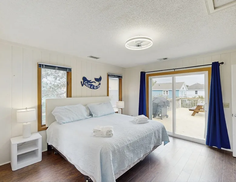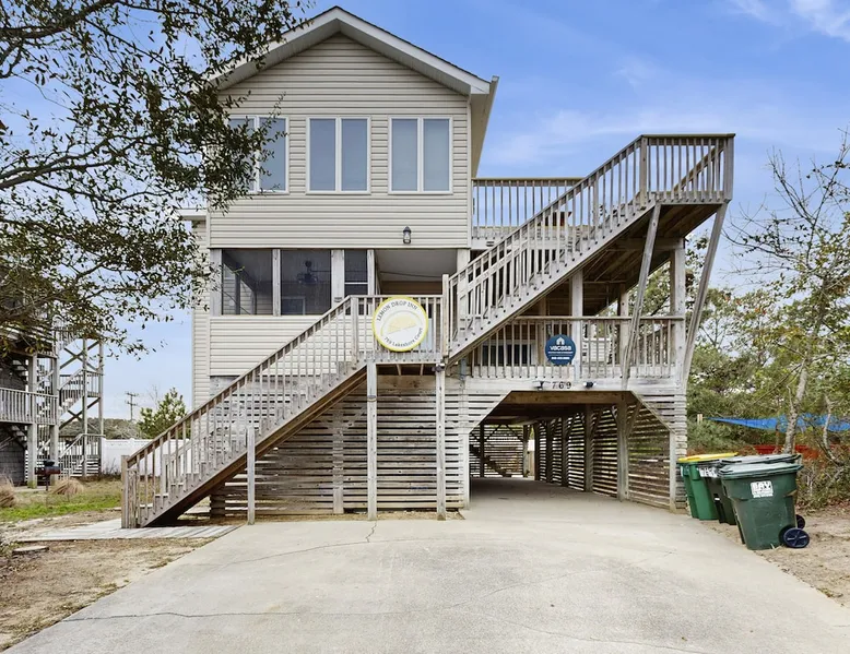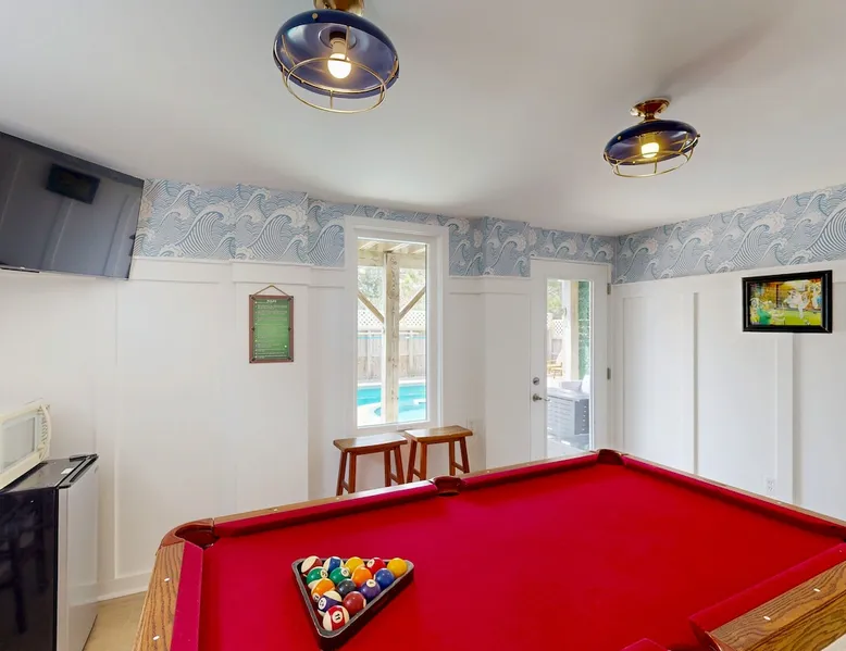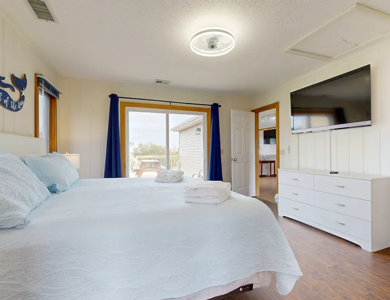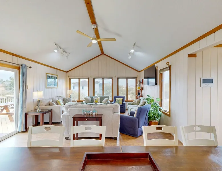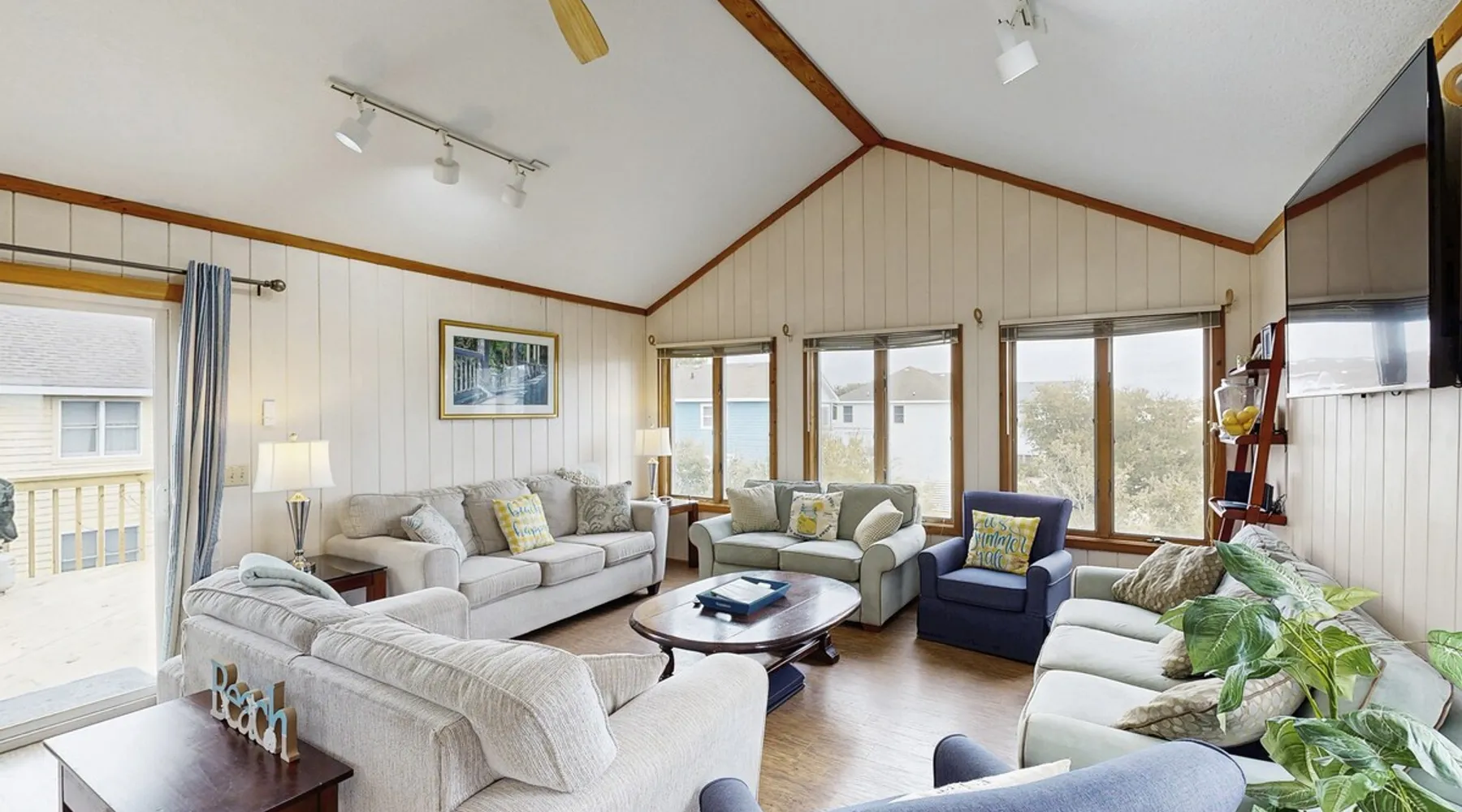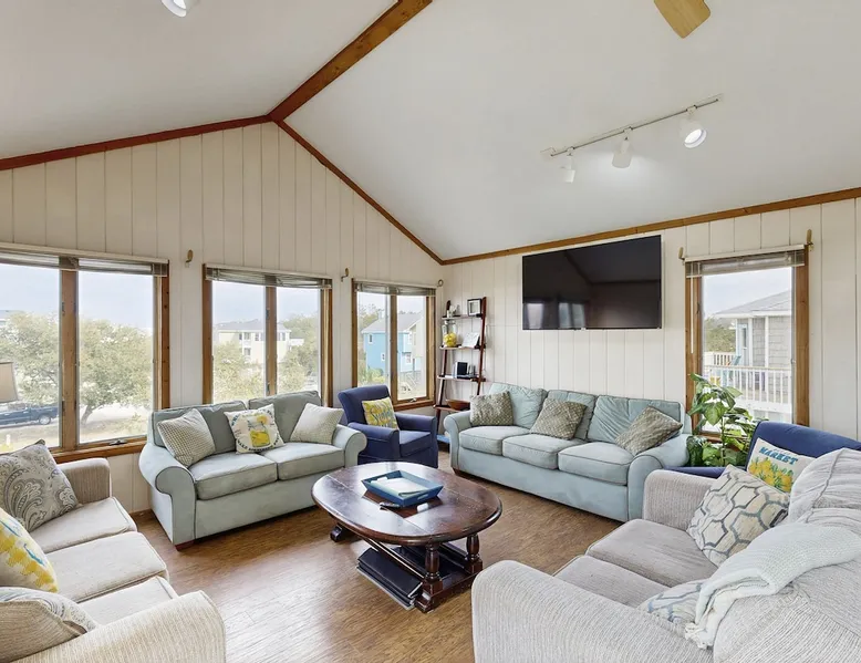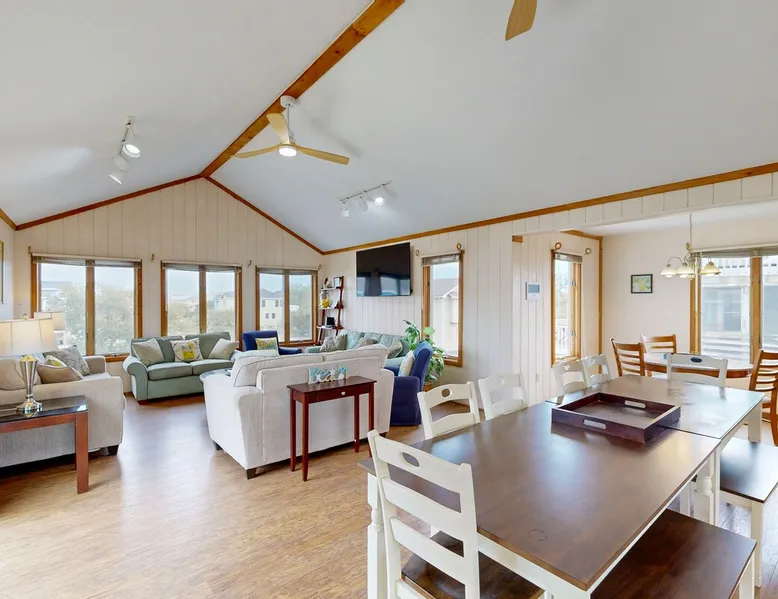 Modern 4BR home with Private Pool, Hot Tub and close to 7-acre lake The space Escape to the charming 'Lemon Drop Inn' in Corolla, NC, where your worries will simply melt away. This delightful house is the perfect home away from home for a family vacation at the Outer Banks. This stunning, newly renovated 4-bedroom, 3 full bath, and 2 half bath home is designed for relaxation and entertainment. Step outside to your private oasis with a gated pool, hot tub, and kiddie pool, ensuring fun for guests of all ages and perfect for unwinding after a day in the sun. The spacious game room, which connects directly to the pool area, ensures endless fun for all ages. With three expansive decks, there’s no shortage of outdoor lounge space to soak in the ocean breeze. Located just a 10-minute walk to the beach and a 2-minute walk to a serene 7-acre lake, perfect for fishing and observing indigenous wildlife like ducks, egrets, and turtles. This home offers the perfect balance of coastal charm and modern convenience. Inside, the open-concept living space is bright and airy, featuring stylish updates throughout. The kitchen boasts sleek countertops, stainless steel appliances, and plenty of room for entertaining. The beautifully appointed bedrooms provide a tranquil escape, while the luxurious bathrooms offer spa-like finishes. The house has a Great Room with a 65' Roku TV, a closet filled with board games and comfortable sleeping arrangements, including a King En Suite Bedroom, a Queen En Suite Bedroom, and additional bedrooms on the mid-level with Roku Streaming LCD TVs throughout the property. 'Lemon Drop Inn' is dog-friendly, so your furry family member can join in on the vacation fun. This prime location is just a 3-minute drive to Timbuk II, where you’ll find fantastic shopping, top-rated restaurants, go-karts, mini golf, and more. Also nearby is the Currituck Club, Currituck Lighthouse, and the Corolla Wild Horse Museum. Need groceries? Food Lion is just 3 minutes away, and Harris Teeter is only 5 minutes away for your convenience. Private Pool Dates: The private pool is open from April 1 through October 15th. The private pool is unavailable outside of these dates. Things to note: This is a 3-level home.