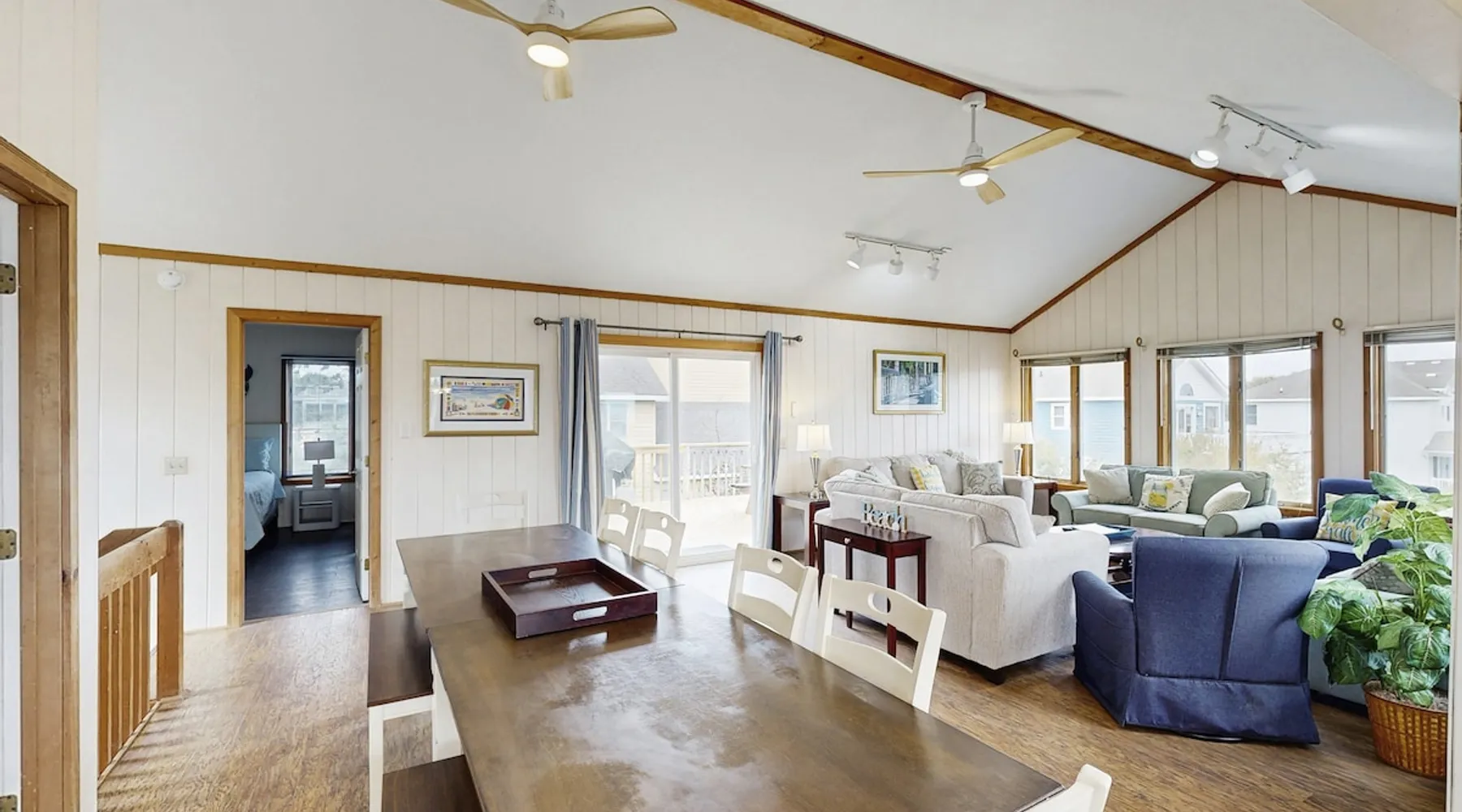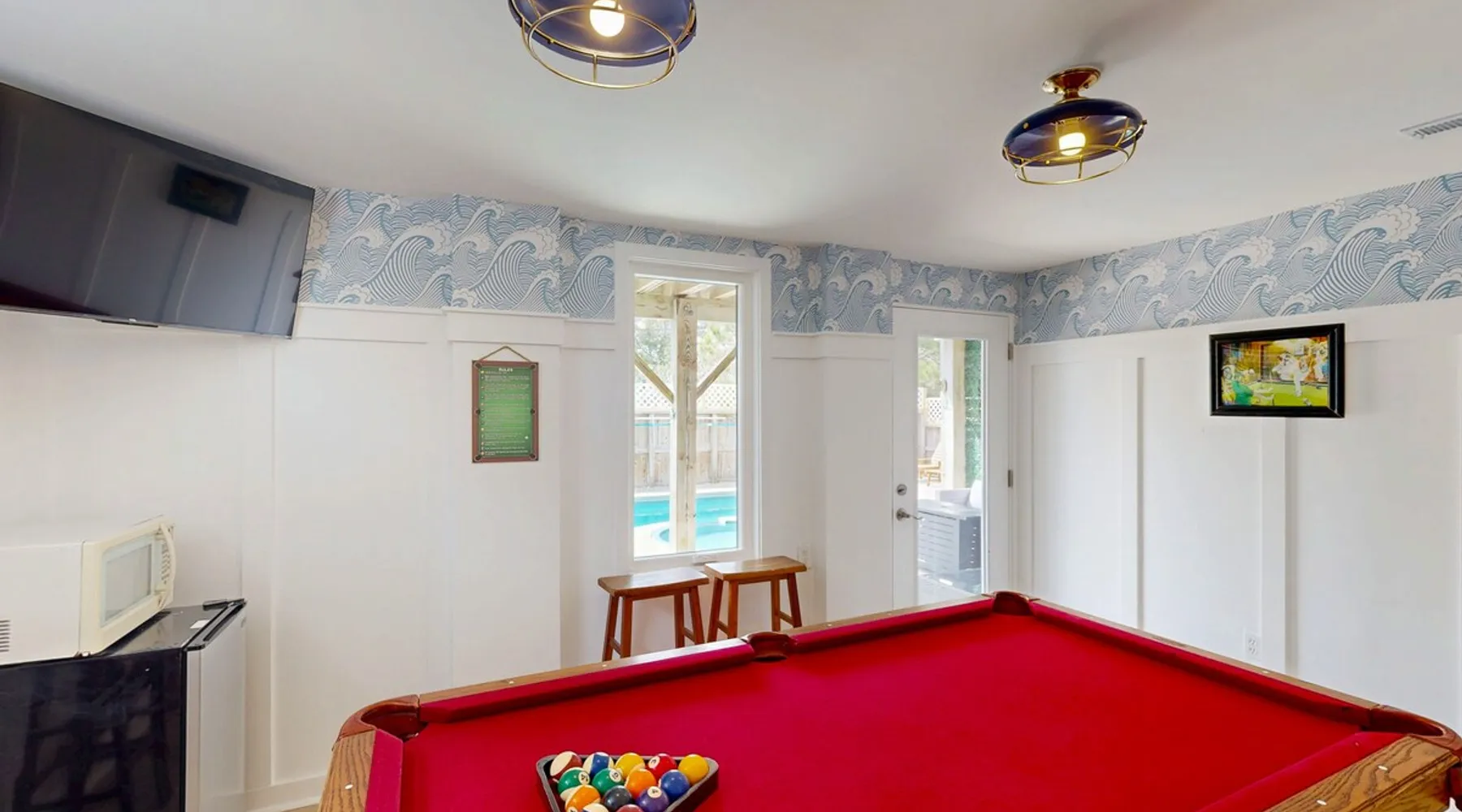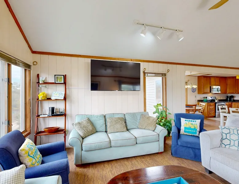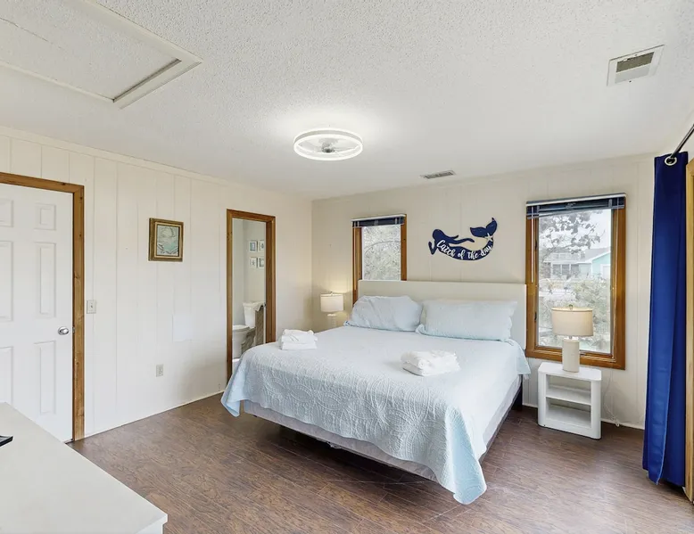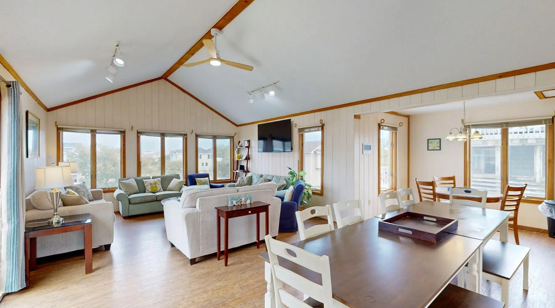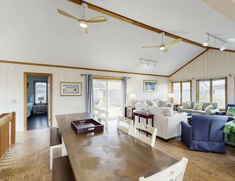 Modern 4BR home with Private Pool, Hot Tub and close to 7-acre lake The space Escape to the charming 'Lemon Drop Inn' in Corolla, NC, where your worries will simply melt away. This delightful house is the perfect home away from home for a family vacation at the Outer Banks. This stunning, newly renovated 4-bedroom, 3 full bath, and 2 half bath home is designed for relaxation and entertainment. Step outside to your private oasis with a gated pool, hot tub, and kiddie pool, ensuring fun for guests of all ages and perfect for unwinding after a day in the sun. The spacious game room, which connects directly to the pool area, ensures endless fun for all ages. With three expansive decks, there’s no shortage of outdoor lounge space to soak in the ocean breeze. Located just a 10-minute walk to the beach and a 2-minute walk to a serene 7-acre lake, perfect for fishing and observing indigenous wildlife like ducks, egrets, and turtles. This home offers the perfect balance of coastal charm and modern convenience. Inside, the open-concept living space is bright and airy, featuring stylish updates throughout. The kitchen boasts sleek countertops, stainless steel appliances, and plenty of room for entertaining. The beautifully appointed bedrooms provide a tranquil escape, while the luxurious bathrooms offer spa-like finishes. The house has a Great Room with a 65' Roku TV, a closet filled with board games and comfortable sleeping arrangements, including a King En Suite Bedroom, a Queen En Suite Bedroom, and additional bedrooms on the mid-level with Roku Streaming LCD TVs throughout the property. 'Lemon Drop Inn' is dog-friendly, so your furry family member can join in on the vacation fun. This prime location is just a 3-minute drive to Timbuk II, where you’ll find fantastic shopping, top-rated restaurants, go-karts, mini golf, and more. Also nearby is the Currituck Club, Currituck Lighthouse, and the Corolla Wild Horse Museum. Need groceries? Food Lion is just 3 minutes away, and Harris Teeter is only 5 minutes away for your convenience. Private Pool Dates: The private pool is open from April 1 through October 15th. The private pool is unavailable outside of these dates. Things to note: This is a 3-level home.