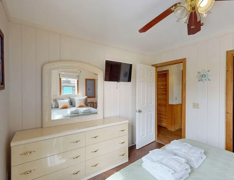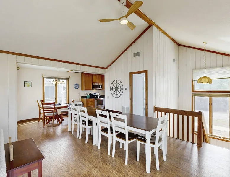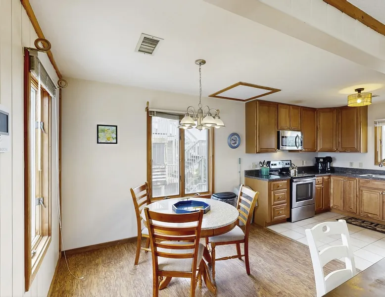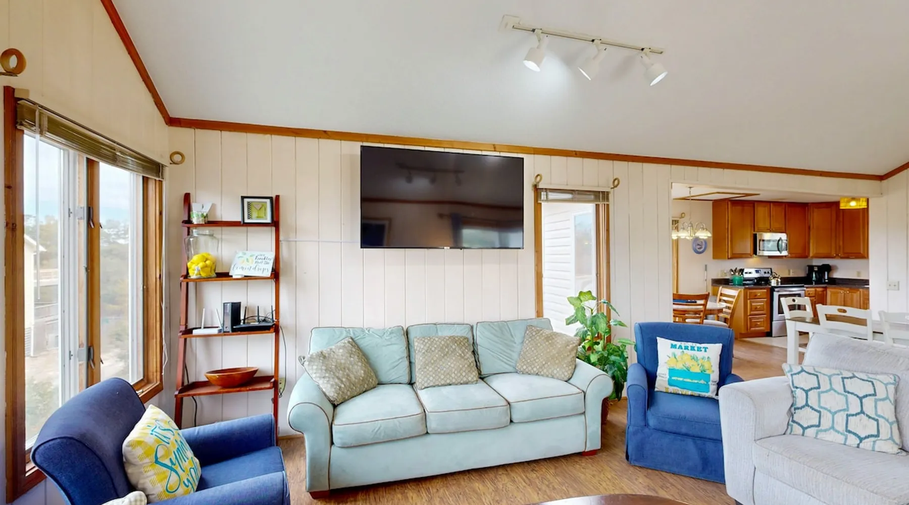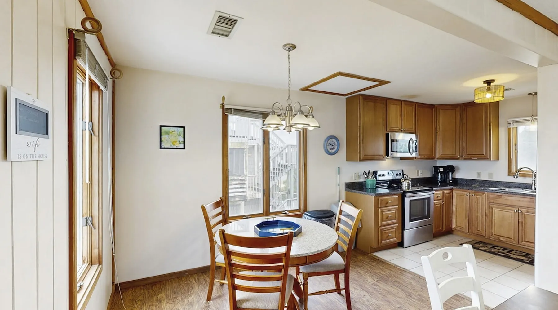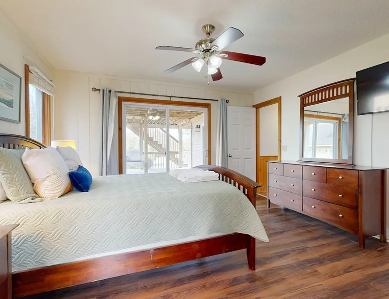 Modern 4BR home with Private Pool, Hot Tub and close to 7-acre lake The space Escape to the charming 'Lemon Drop Inn' in Corolla, NC, where your worries will simply melt away. This delightful house is the perfect home away from home for a family vacation at the Outer Banks. This stunning, newly renovated 4-bedroom, 3 full bath, and 2 half bath home is designed for relaxation and entertainment. Step outside to your private oasis with a gated pool, hot tub, and kiddie pool, ensuring fun for guests of all ages and perfect for unwinding after a day in the sun. The spacious game room, which connects directly to the pool area, ensures endless fun for all ages. With three expansive decks, there’s no shortage of outdoor lounge space to soak in the ocean breeze. Located just a 10-minute walk to the beach and a 2-minute walk to a serene 7-acre lake, perfect for fishing and observing indigenous wildlife like ducks, egrets, and turtles. This home offers the perfect balance of coastal charm and modern convenience. Inside, the open-concept living space is bright and airy, featuring stylish updates throughout. The kitchen boasts sleek countertops, stainless steel appliances, and plenty of room for entertaining. The beautifully appointed bedrooms provide a tranquil escape, while the luxurious bathrooms offer spa-like finishes. The house has a Great Room with a 65' Roku TV, a closet filled with board games and comfortable sleeping arrangements, including a King En Suite Bedroom, a Queen En Suite Bedroom, and additional bedrooms on the mid-level with Roku Streaming LCD TVs throughout the property. 'Lemon Drop Inn' is dog-friendly, so your furry family member can join in on the vacation fun. This prime location is just a 3-minute drive to Timbuk II, where you’ll find fantastic shopping, top-rated restaurants, go-karts, mini golf, and more. Also nearby is the Currituck Club, Currituck Lighthouse, and the Corolla Wild Horse Museum. Need groceries? Food Lion is just 3 minutes away, and Harris Teeter is only 5 minutes away for your convenience. Private Pool Dates: The private pool is open from April 1 through October 15th. The private pool is unavailable outside of these dates. Things to note: This is a 3-level home.