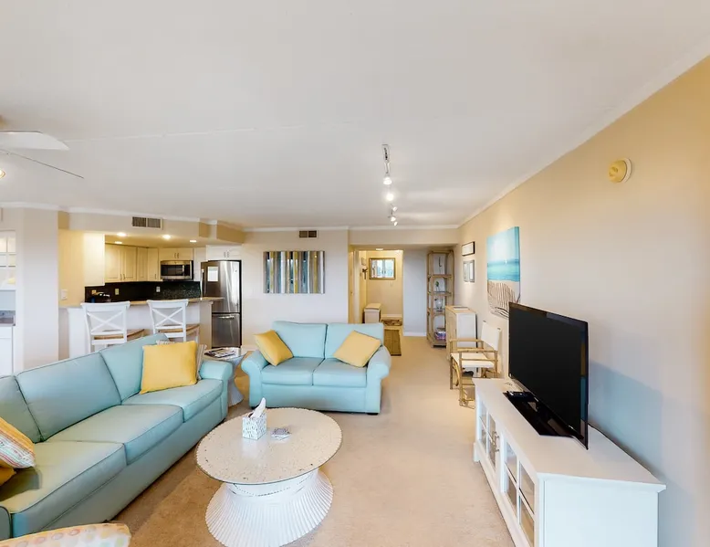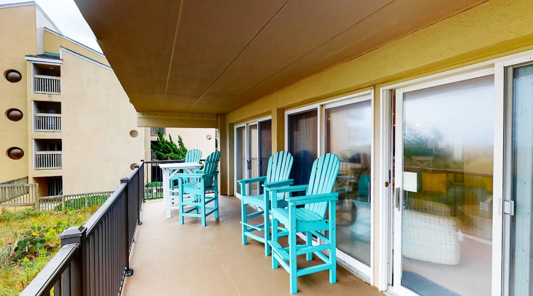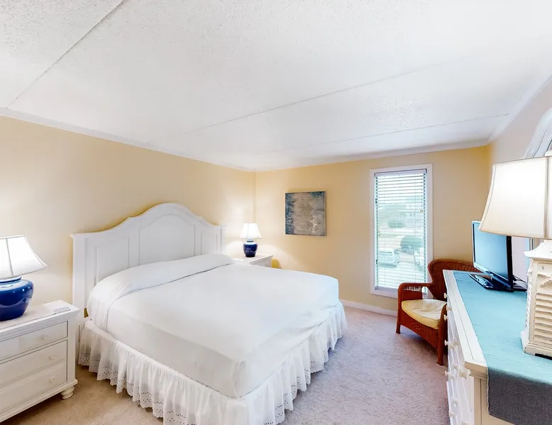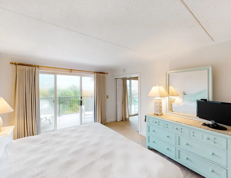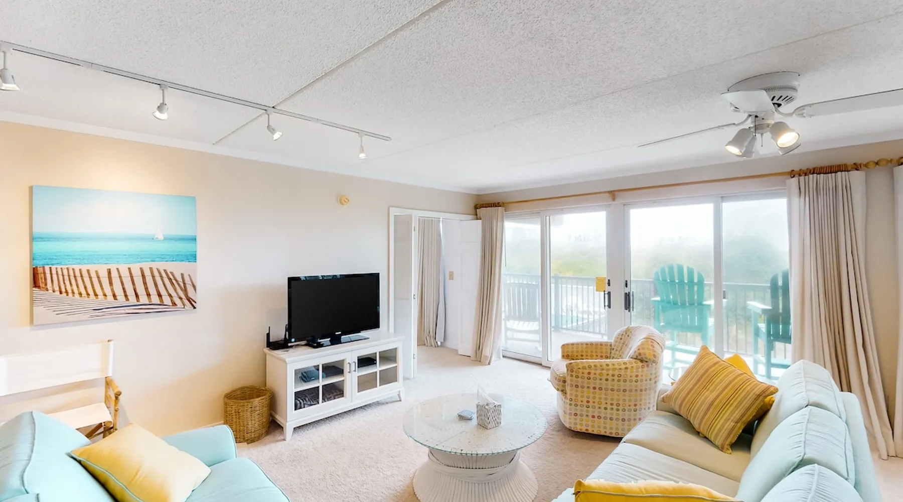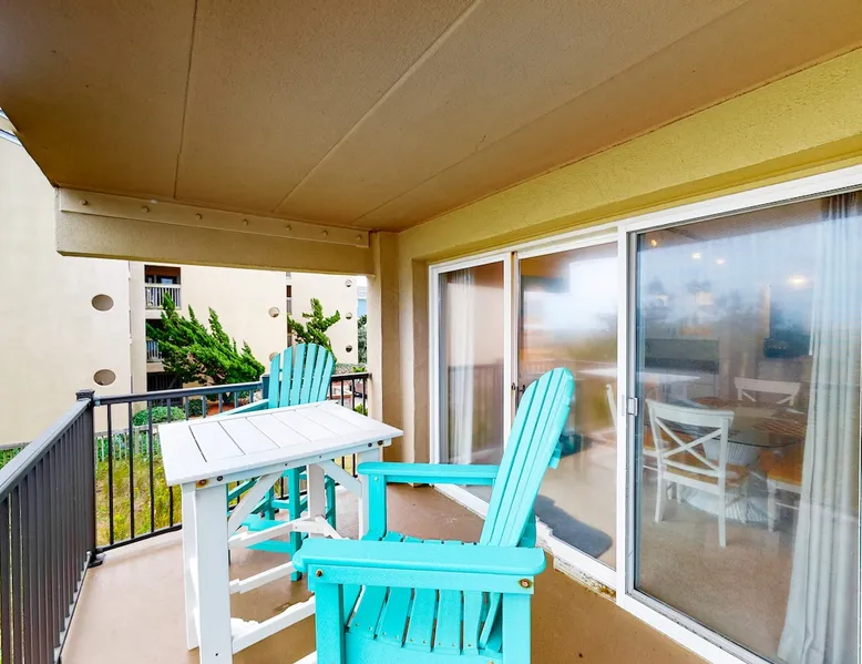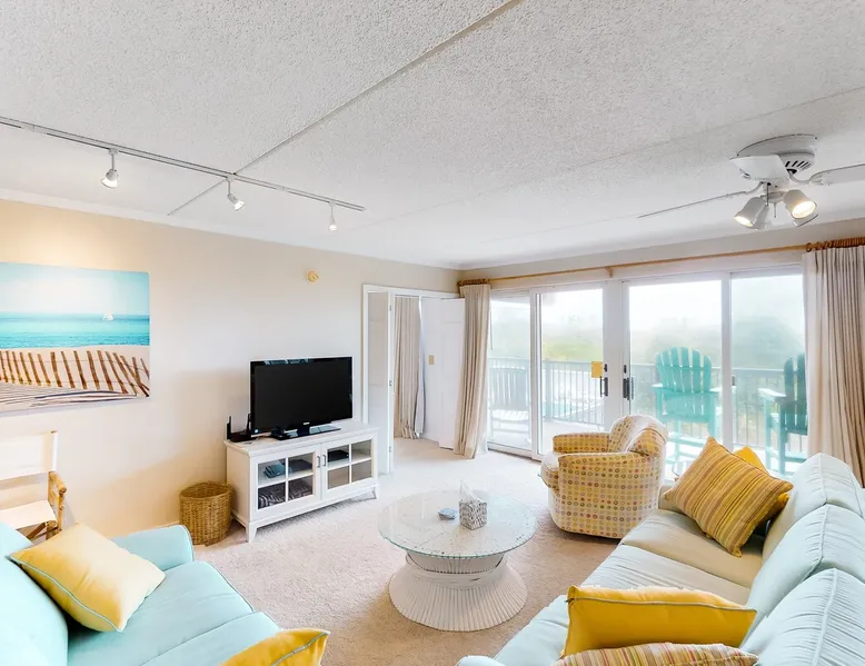 Beachy waterfront condo with private balcony, pool, beach access, fast WiFi The space With a prime location near the beach and everything Nags Head has to offer, this lovely Outer Banks condo is simply the best option for your next family beach-cation! Located on the second floor, this waterfront retreat features a sunny open layout with a flatscreen TV with cable (all over TVs are Smart TVs), an updated kitchen with Drip and Keurig coffee makers, updated bathrooms, and a 38-foot deck facing the pool, which is a great spot to enjoy a nice cup of coffee while watching the sunrise. Guests will find all the comforts of home in a serene setting and a great location for surf fishing. The main draws of this condo? The direct beach access, which offers fun in the sun, and access to a community outdoor pool! Things to Know Seasonal communal pool High-speed internet and free WiFi, perfect for working from home, distance learning, and streaming.