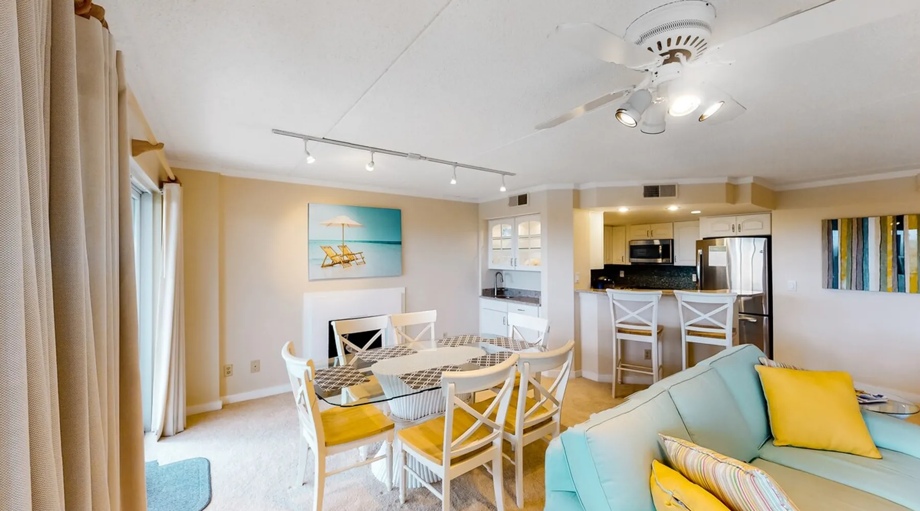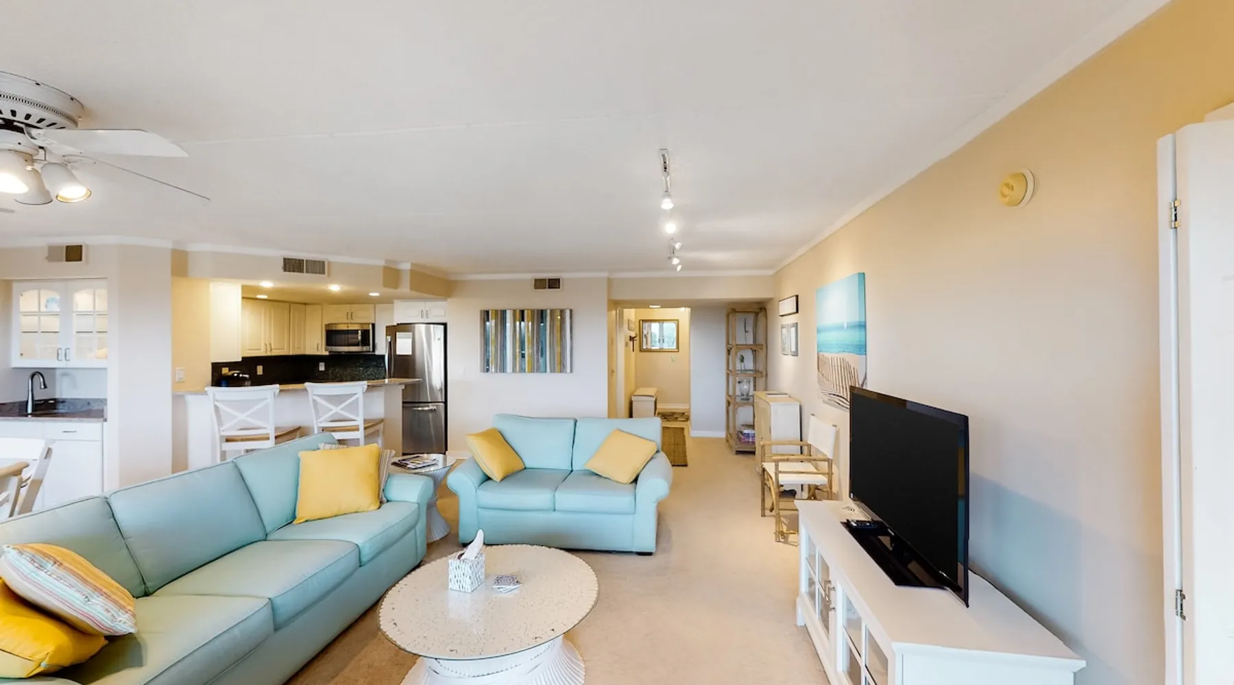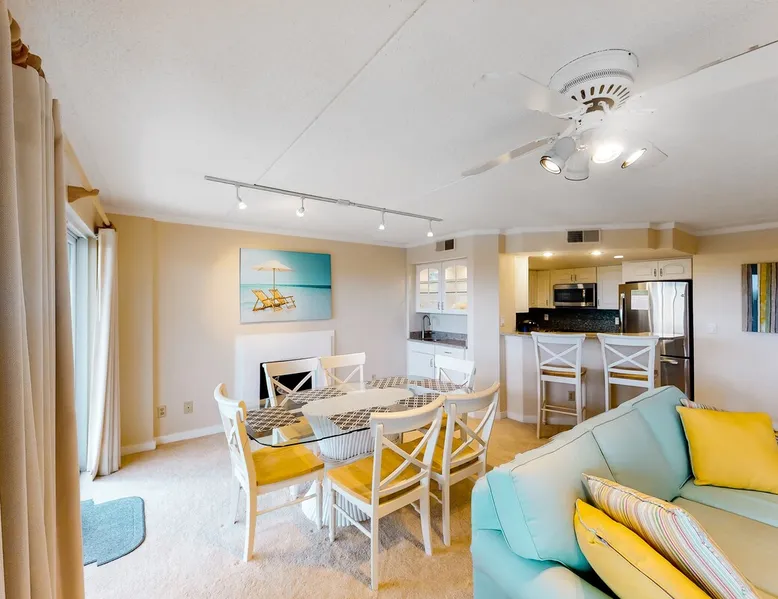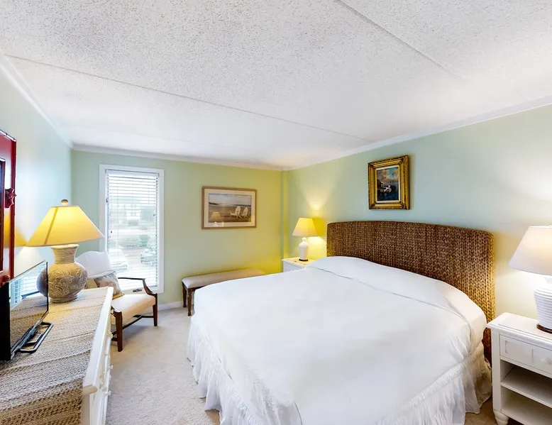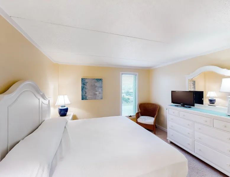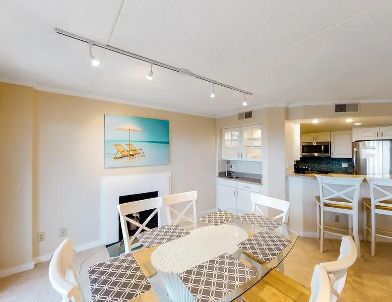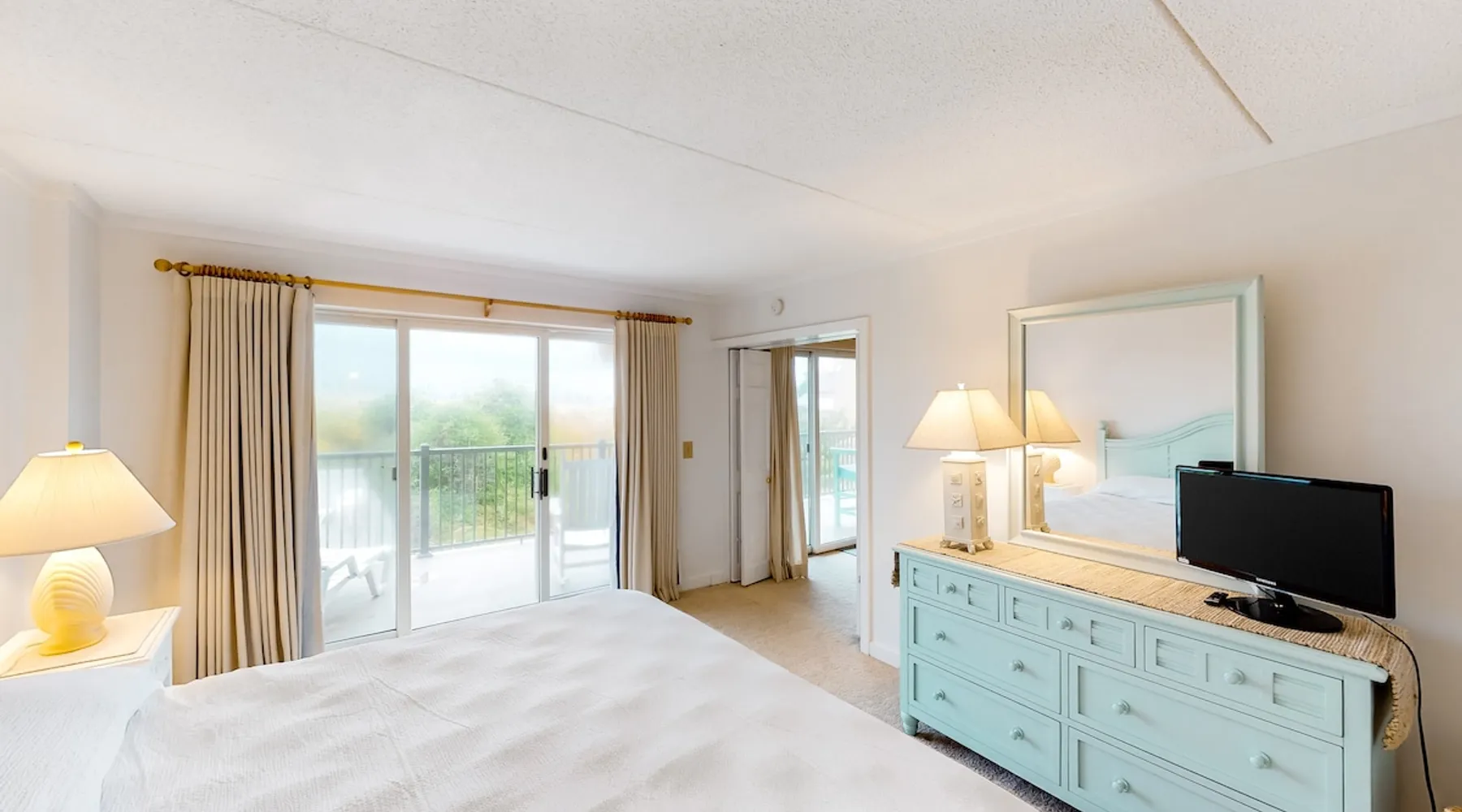 Beachy waterfront condo with private balcony, pool, beach access, fast WiFi The space With a prime location near the beach and everything Nags Head has to offer, this lovely Outer Banks condo is simply the best option for your next family beach-cation! Located on the second floor, this waterfront retreat features a sunny open layout with a flatscreen TV with cable (all over TVs are Smart TVs), an updated kitchen with Drip and Keurig coffee makers, updated bathrooms, and a 38-foot deck facing the pool, which is a great spot to enjoy a nice cup of coffee while watching the sunrise. Guests will find all the comforts of home in a serene setting and a great location for surf fishing. The main draws of this condo? The direct beach access, which offers fun in the sun, and access to a community outdoor pool! Things to Know Seasonal communal pool High-speed internet and free WiFi, perfect for working from home, distance learning, and streaming.
