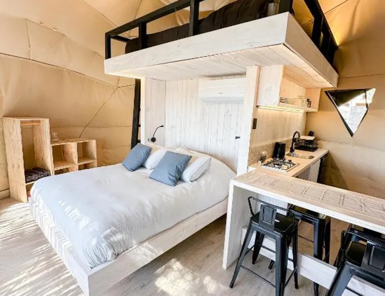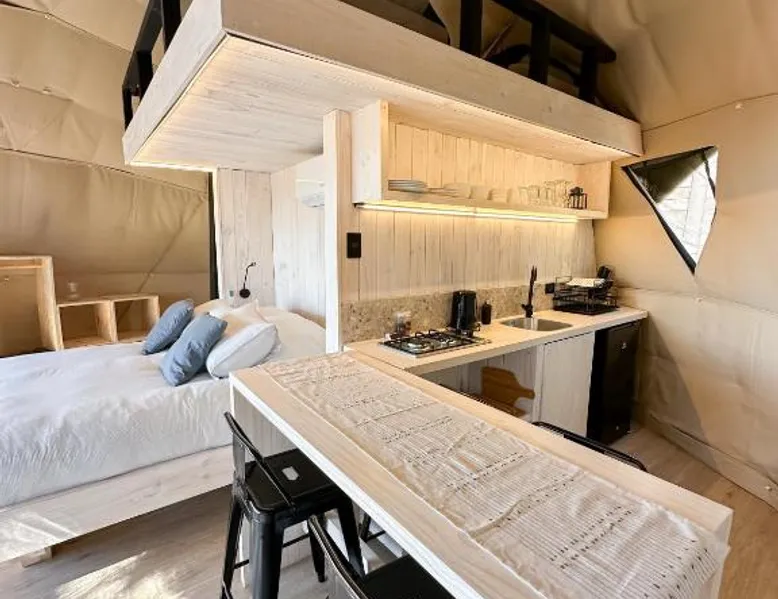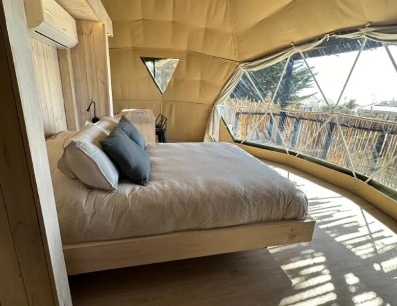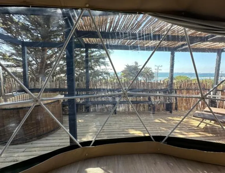 Elegant Holiday Home in Matanzas: Domos de Matanzas offers a serene retreat in Matanzas, Chili. Guests enjoy a sun terrace, lush garden, and free WiFi throughout the property. Comfortable Living Spaces: The holiday home features family rooms, a hot tub, and an outdoor seating area. Additional amenities include a kitchenette, private bathroom, and free on-site private parking. Convenient Location: Located a few steps from Matanzas Beach and 1.2 mi from Roca Cuadrada, the property provides easy access to local attractions. Santiago International Airport is 101 mi away. Activities and Facilities: Guests can enjoy cycling, relax in the hot tub, and hire bikes on-site. The property also offers bike hire, ensuring a memorable stay. The hot tub is the standout feature of this holiday home. Boasting a private entrance, this air-conditioned holiday home comes with 1 living room, 1 separate bedroom and 1 bathroom with a shower. Guests will find a stovetop, a refrigerator, kitchenware and a tea and coffee maker in the well-equipped kitchen. The holiday home also includes a barbecue. The holiday home has a terrace with outdoor furniture and sea views where you can relax. The unit has 3 beds.