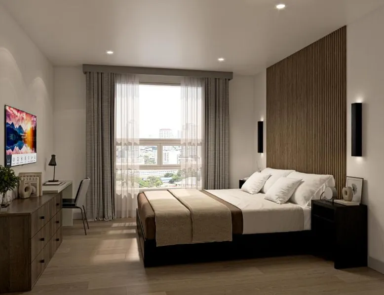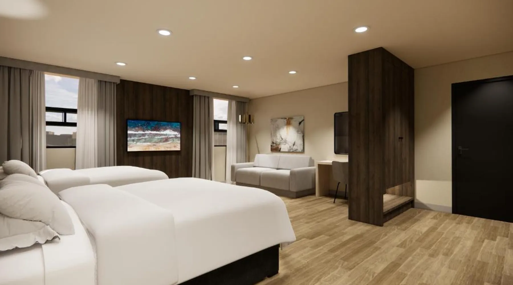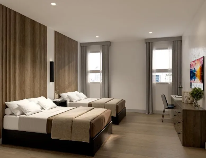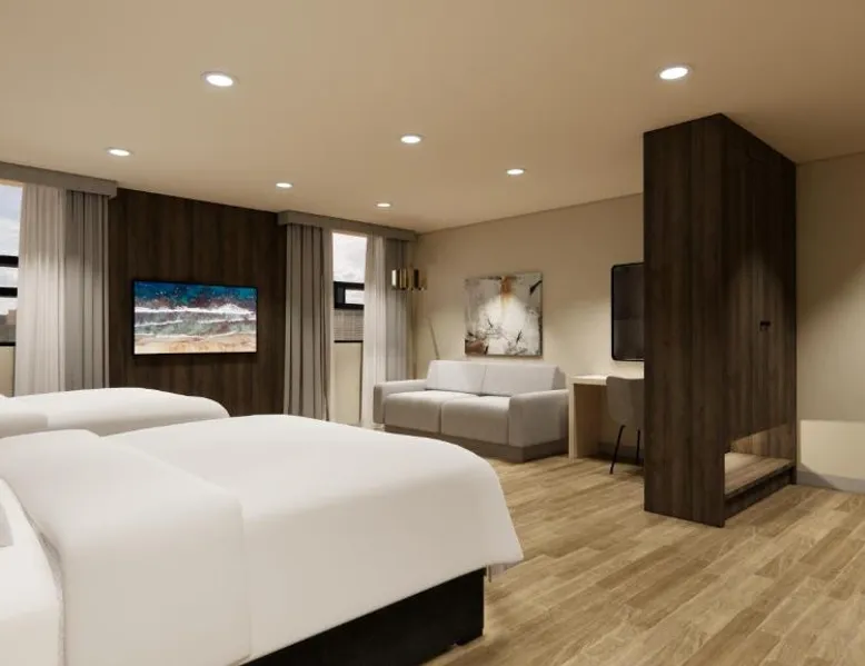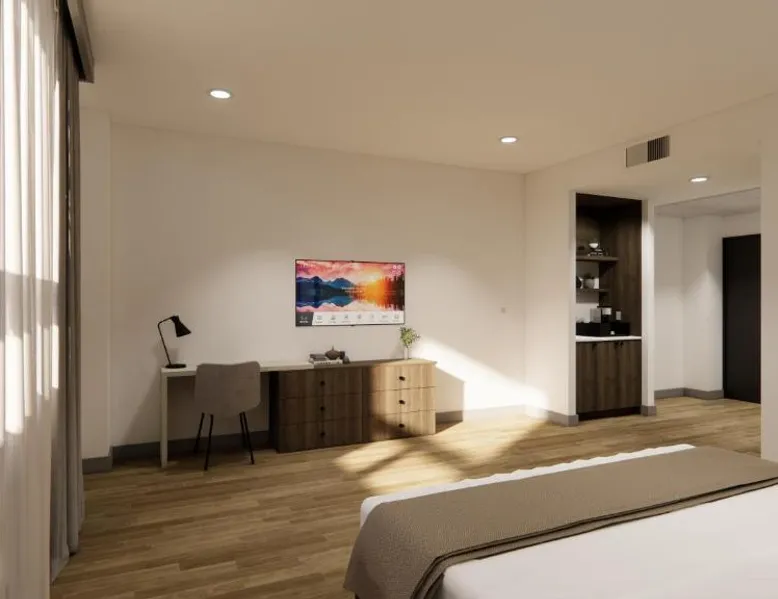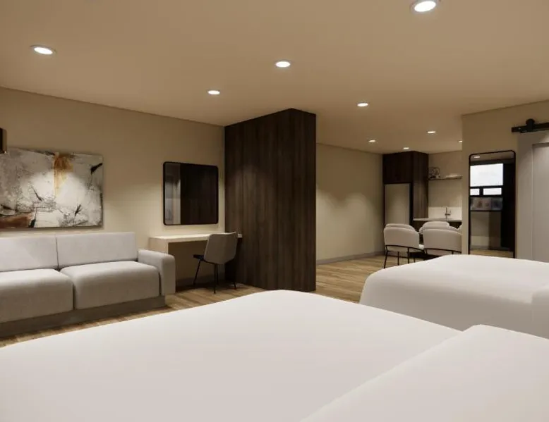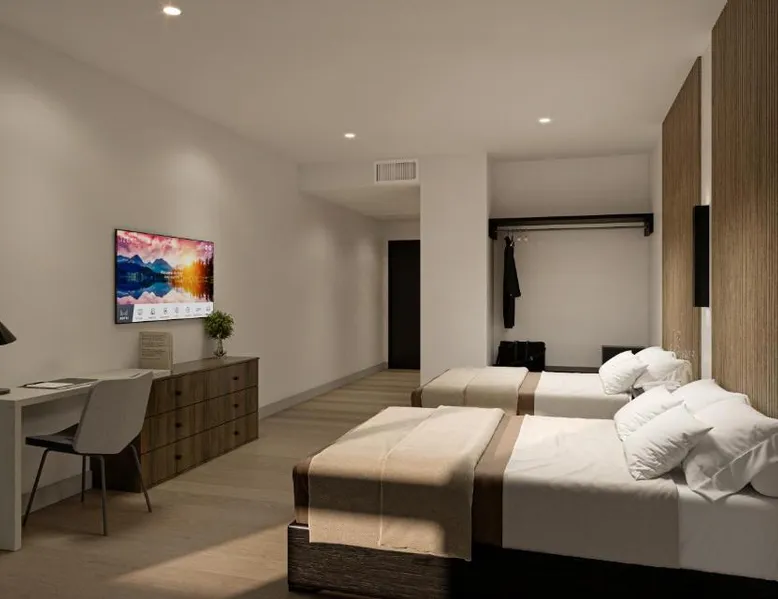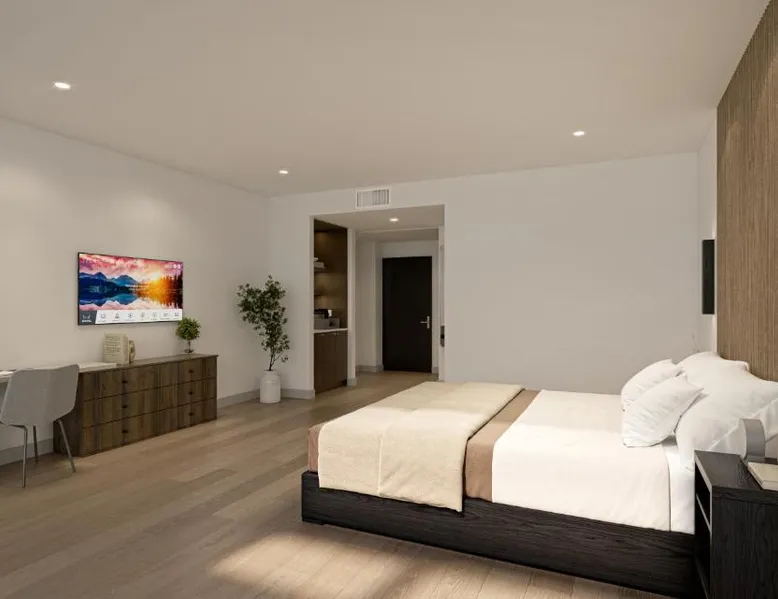 Comfortable Accommodations: Kins Hotel in Los Angeles offers 4-star comfort with air-conditioned rooms featuring private bathrooms, tea and coffee makers, and city views. Each room includes a work desk, TV, and wardrobe, ensuring a pleasant stay. Essential Facilities: Guests can relax on the terrace or stay connected with free WiFi. Additional amenities include a elevator, 24-hour front desk, daily housekeeping service, family rooms, room service, and luggage storage. Prime Location: Located 11 mi from Hollywood Burbank Airport, the hotel is a short walk from Wilshire / Normandie (Lacmta Station) and Wiltern Theater. Nearby attractions include St Sophia Cathedral and Lina'S Art Gallery. Boating is available in the surroundings. The spacious suite has 1 separate bedroom and 1 bathroom with a bath and a shower. This air-conditioned suite comes with a dining area, a flat-screen TV with cable channels a tea and coffee maker and a wardrobe. The unit has 3 beds.