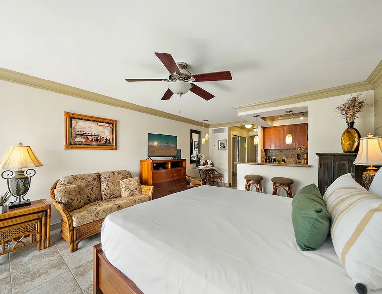 Lahaina Shores 512 Relax in this Remodeled Studio at the Beach with Majestic West Maui Mountain Views! The space FREE daily activities included with your stay value up to $570! Complimentary admission, every day of your stay*: Whale Watch (seasonal), Dinner Sunset Sail, Snorkel Sail, Alpaca Farm Tour, Pineapple Farm Tour, and All Day Electric Bike Rental. (W1) *One ticket per activity per day. Additional details provided after confirmed booking. Escape to the charm of Lahaina Shores Resort with this remodeled mountain-view studio on West Maui. While the condo offers peaceful views of the West Maui Mountains from its private furnished lanai, guests also enjoy direct access to the resort’s incredible beachfront setting. Just steps away, you’ll find a sparkling oceanfront pool and hot tub overlooking the Pacific, where you can take in breathtaking sunsets and sweeping views of the neighboring islands of Lanai and Molokai. Wake up refreshed and enjoy your morning coffee while taking in sweeping views of the majestic West Maui Mountains. This thoughtfully updated studio features an upgraded kitchen, modern bathroom, and tile flooring, and offers a fully equipped kitchen with a breakfast bar—perfect as a workspace or casual dining spot. If you prefer, enjoy meals at the cozy table for two on the lanai while soaking in the tranquil scenery. Lahaina Shores is just a short drive from world-famous Kaanapali Beach, the serene shores of Napili Bay, and the luxurious Kapalua Resort area. Whether you’re seeking oceanfront relaxation, or scenic island exploration, studio at provides the perfect home base for your next Maui vacation! Condo Highlights: -Remodeled Studio, 1 Bathroom Condo, Sleeps 2 guests -Central AC throughout -The resort is oceanfront, the unit faces the mountains -Mountain view 5th floor lanai with panoramic mountain views -Fresh, bright, spacious and clean -Ceiling fan featured -Queen size bed featured -Smart streaming TV featured -Fully equipped kitchen -Bathroom features a tiled walk-in shower -Indoor dining table seating for 2 -Outdoor bistro table seating for 2 -On-site Credit Card operated washer/dryer located on the same floor near the elevator Please be aware that the surrounding area, impacted by the 2023 wildfires, is still in recovery. While there are no shops or restaurants within walking distance and some construction nearby, our property offers a peaceful retreat by the sea. We kindly remind guests to respect the neighborhood and refrain from walking in the surrounding areas. Lahaina Shores Resort is a one-of-a-kind Hawaiian vacation destination, offering a rare blend of beachfront serenity and historic charm. Located directly on the golden sands of West Maui's shoreline, the resort provides unobstructed ocean views stretching across the channel to the neighboring islands of Lanai and Molokai. Guests of Lahaina Shores Resort enjoy direct beach access just steps from the property, along with the convenience of the resort’s pool, hot tub, and beautifully maintained grounds. With the sand at your doorstep, you can easily spend your days lounging under the palms, or swimming in the gentle waves. Resort Highlights: •On-site parking: $15.00 a day paid to on-site front desk at check-in ( this will start in Dec 2025) -Oceanfront pool and hot tub -BBQ gas grills -Elevators -24 hour on-site front desk -24-hour security No Mail Allowed: We are unable to receive USPS mail, including letters and packages at this rental. For medical-related items, please contact our Reservations Team for assistance. Minimum age of primary renter: 25 We provide the following in every unit: -First Aid Kit -High Speed Internet -Linens and towels -Iron and ironing board -Hair dryer -Beach towels, Beach chairs, and Hard sided cooler -Starter Kit: Starter supply of shampoo, conditioner, body wash, lotion, hand soap, dish soap, laundry detergent, dishwasher tabs, toilet paper, paper towels, trash bags *We don’t provide beach umbrellas, toys, or gears, such as snorkeling, due to safety, health, and hygiene risks. BEACHES & CRITTERS: The beach size in Hawaii varies month to month due to weather, heavy surf, strong currents, and tides. Due to Maui’s rural setting, you may experience the occasional rooster, as well as harmless geckos. Geckos are friendly, eat insects, and are considered good luck in Hawaii. Please don’t kill them. Although the HOA schedules regular professional pest control services, pests such as ants, roaches and rodents simply cannot be completely controlled in the tropics. Maui is in a tropical climate. If our guest spot more than the normal expected pests, we always make our best efforts to contact and work with the HOA to minimize your interactions with these pests. Any contact with such pests within or outside the unit does not constitute a breach of this Agreement or give Guest any right to any refund or rental adjustment. **We make no guarantee that properties adjacent to the Unit will be free from disturbances, including but not limited to noise or inconvenience from construction, traffic or other guests or neighbors. Any such disturbance shall not constitute a breach of this Agreement or give Guest any right to any refund or rental adjustment. By booking your stay with us, you accept that Host is not liable for any inconveniences arising from any temporary defect or stoppage in supply of water, electricity, air conditioning or plumbing that is beyond their control. Host is not liable for any loss or damage to Tenants’ personal property caused by weather conditions, natural disasters, or other events beyond their control. Tenants accept that the cable and internet service at the Rental can be sporadic and unreliable at times, and Tenant shall not be entitled to any refund of the rental fee in the event either of these services are unavailable or not operating properly during Tenants’ stay. Registration Details 460020070133, TA-205-718-1696-01