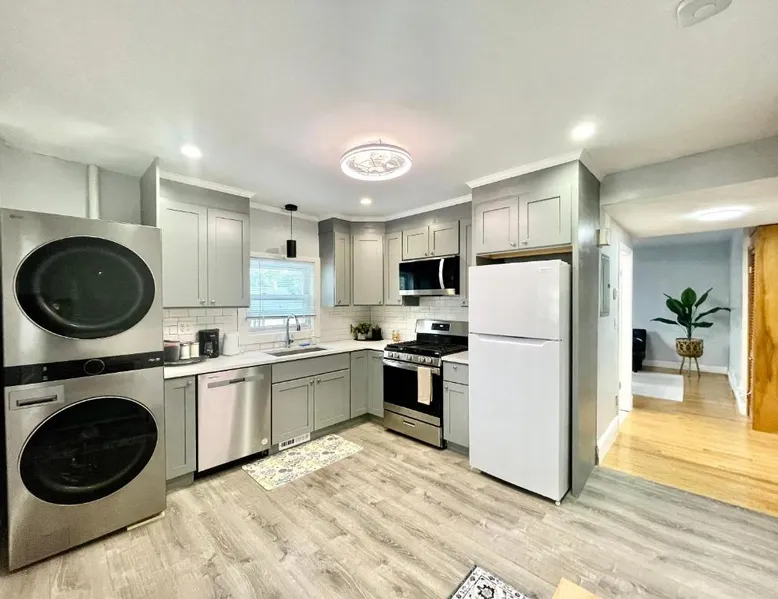 Spacious Accommodations: Cozy 3-Beds in 2-Bedrooms Apartment Near Quincy Adams offers a spacious apartment in Quincy, MA. The property features two bedrooms and a living room, providing ample space for relaxation and comfort. Modern Amenities: Guests enjoy free WiFi, air-conditioning, and a fully equipped kitchenette. Additional amenities include a washing machine, dishwasher, and a work desk, ensuring a convenient and comfortable stay. Convenient Location: Located 9.9 mi from Logan Airport, the apartment is close to attractions such as the JFK Presidential Library & Museum (8.1 mi) and Boston Tea Party Ship & Museum (9.9 mi). An ice-skating rink is also nearby, offering leisure activities for visitors. This spacious apartment consists of 1 living room, 2 separate bedrooms and 1 bathroom with a walk-in shower and free toiletries. Meals can be prepared in the well-fitted kitchen, which is equipped with a stovetop, a refrigerator, a dishwasher and kitchenware. The air-conditioned apartment provides a flat-screen TV, a washing machine, a private entrance, a tea and coffee maker as well as garden views. The unit offers 3 beds.