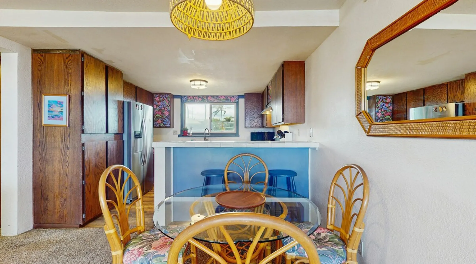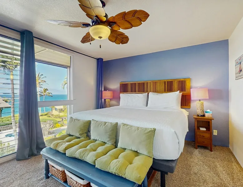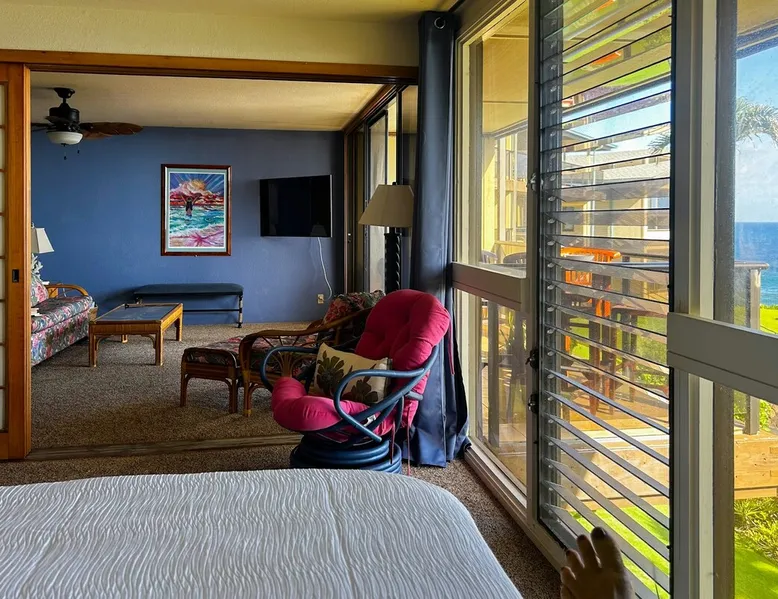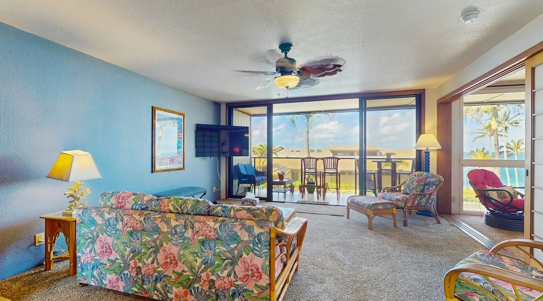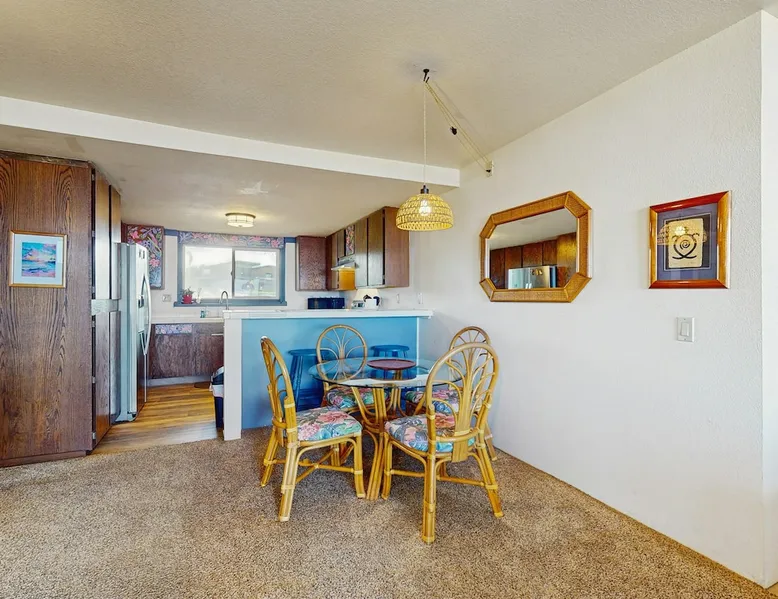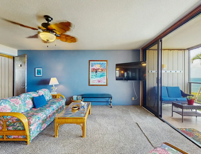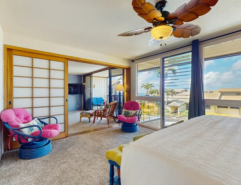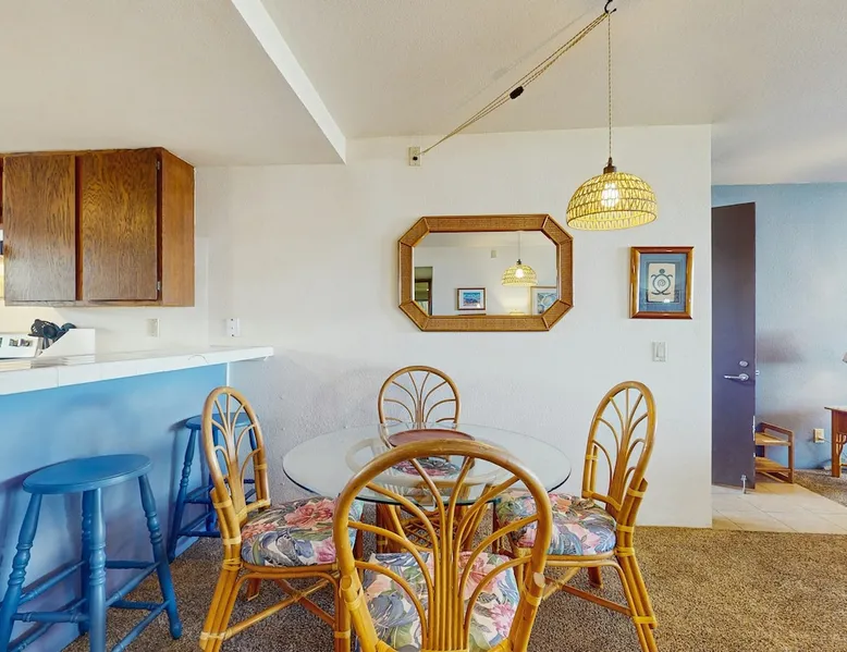 The space Making Makahuena Memories in 2204 Welcome to Makahuena at Poipu Unit #2204, a gorgeous second-floor condo in Koloa, Hawai‘i, where panoramic ocean views and tropical breezes set the tone for an unforgettable escape. This thoughtfully designed retreat features a seamless flow between the living room, dining area, and fully equipped kitchen, all offering front-row views of the sparkling Pacific. Adding to the condo’s unique charm is the touch of beloved local artist Marionette Taboniar, whose creative spirit played a key role in the recent refresh of the space. Her signature style, inspired by old Hawai‘i, is featured on hand-painted kitchen cabinets, a custom window valance, and framed artwork throughout the unit. Her vision and artistry helped shape the soul of this home—and it shows in every thoughtful detail. Ceiling fans in every room keep the island air moving, adding to the relaxed comfort of this breezy home. The primary suite is a true sanctuary, with a king bed positioned to take full advantage of the ocean view from the moment you wake. Two swivel chairs and a small table offer the perfect nook for your morning coffee or a front-row seat to a fiery Kaua‘i sunset. Floor-to-ceiling curtains were specially chosen to fold completely back, ensuring that nothing stands between you and the sea. You’ll also enjoy a private en suite bathroom with a tub and vanity, along with a spacious walk-in closet for all your island attire. The second bedroom is ideal for kids, friends, or additional guests, with two twin beds that can be converted into a king. A hallway bathroom with a tub adds convenience and privacy for everyone. Plan to enjoy exceptional snorkeling at the award-winning Poipu Beach within walking distance where you can see sea turtles, monk seals, and other native wildlife. Whether you're sipping a cool drink or settling in for a movie night with the flat-screen TV, the soothing ambiance of the sea is never far away. Slide open the lanai doors and step outside to feel the trade winds on your skin and watch the waves roll in. This is island living at its best. When you're not relaxing at home, take a dip in the community pool, play a round of golf nearby, or explore the beaches, shops, and restaurants just moments away. Unwind, adventure, or simply take in the beauty of Kaua‘i, with Makahuena #2204 as your perfect home base. Book your stay today and discover why guests return year after year! Please note: This rental unit is located on floor 2. This building is not equipped with an elevator; stair access only. No dog(s) are welcome in this home. No other animals are allowed without specific Vacasa approval. This rental is located on floor 2. Parking notes: There is free parking available for 2 vehicles. Damage waiver: The total cost of your reservation for this Property includes a damage waiver fee which covers you for up to $3,000 of accidental damage to the Property or its contents (such as furniture, fixtures, and appliances) as long as you report the incident to the host prior to checking out. More information can be found from the "Additional rules" on the checkout page. Due to local laws or HOA requirements, guests must be at least 21 years of age to book. Guests under 21 must be accompanied by a parent or legal guardian for the duration of the reservation. Registration Details 280200030030, TA-078-461-0816-01