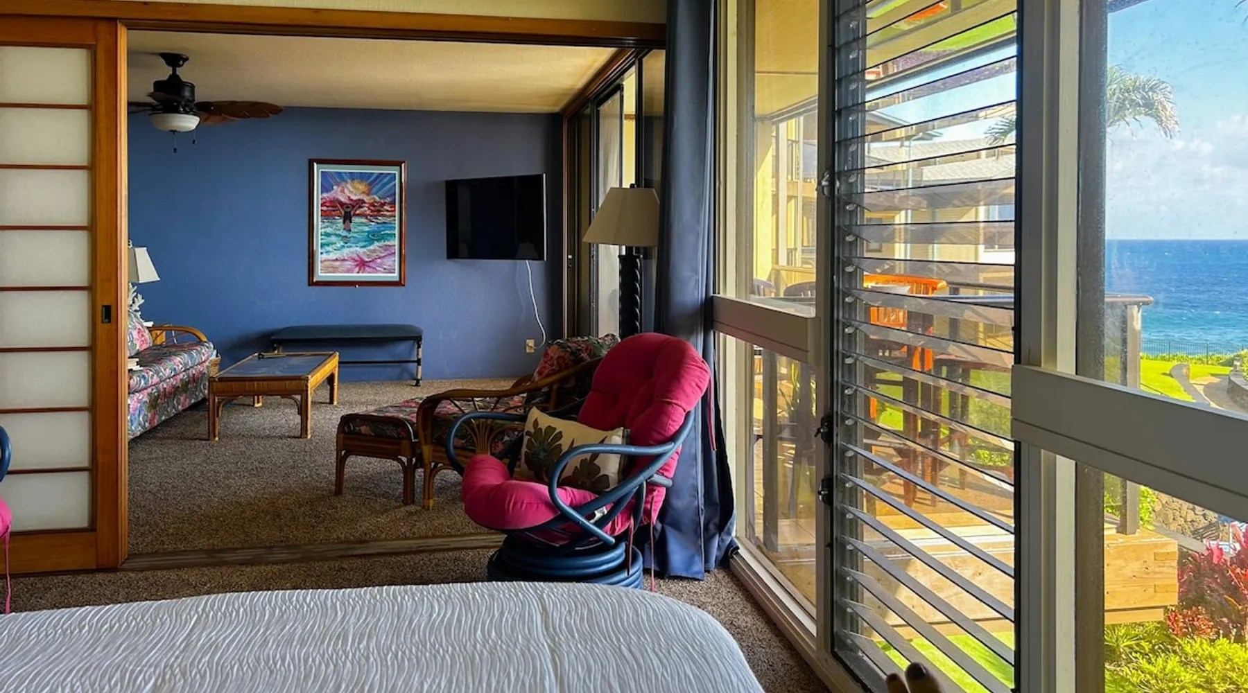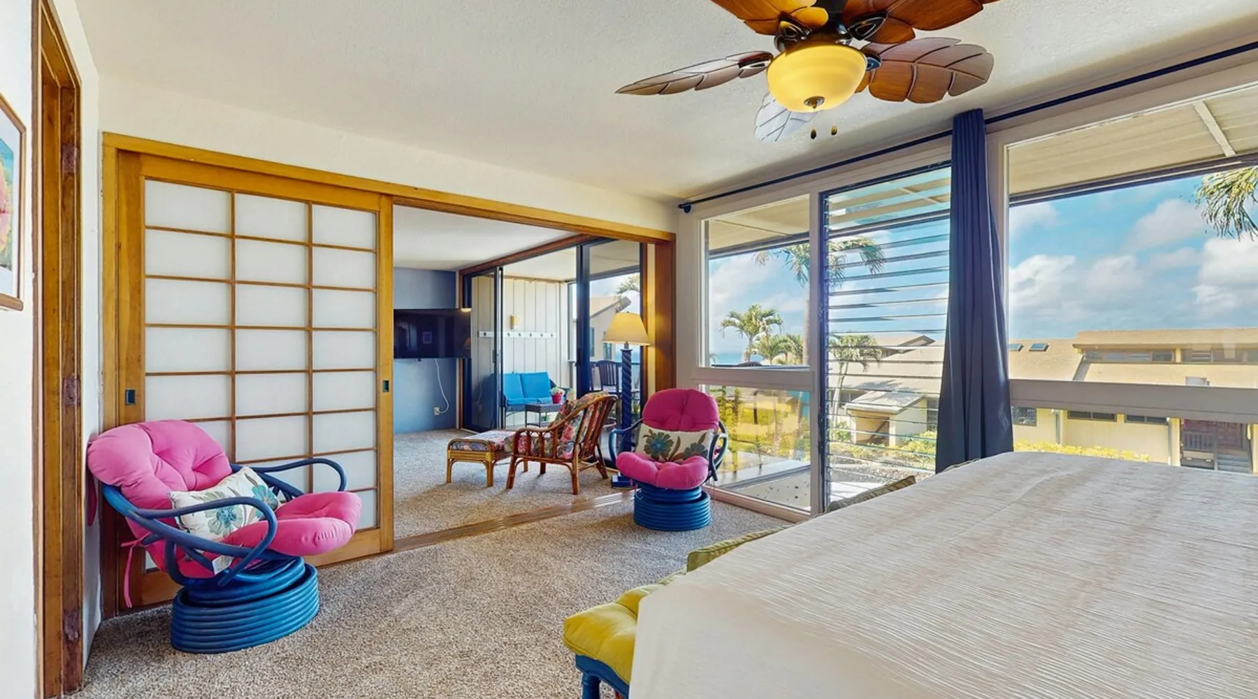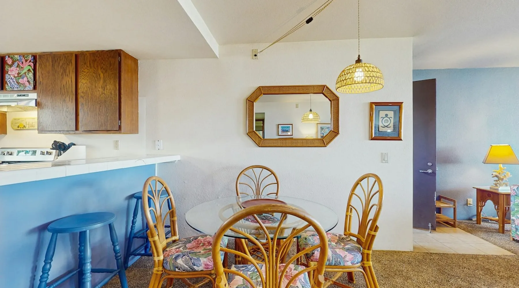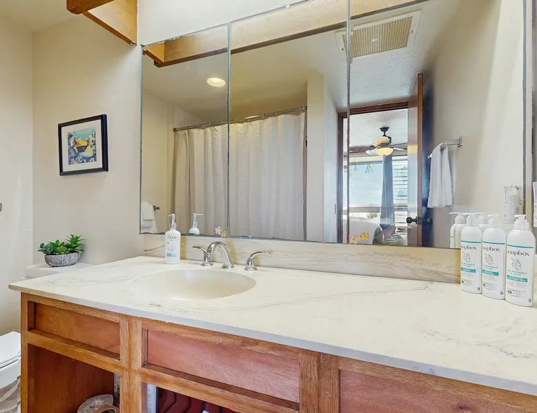 The space Making Makahuena Memories in 2204 Welcome to Makahuena at Poipu Unit #2204, a gorgeous second-floor condo in Koloa, Hawai‘i, where panoramic ocean views and tropical breezes set the tone for an unforgettable escape. This thoughtfully designed retreat features a seamless flow between the living room, dining area, and fully equipped kitchen, all offering front-row views of the sparkling Pacific. Adding to the condo’s unique charm is the touch of beloved local artist Marionette Taboniar, whose creative spirit played a key role in the recent refresh of the space. Her signature style, inspired by old Hawai‘i, is featured on hand-painted kitchen cabinets, a custom window valance, and framed artwork throughout the unit. Her vision and artistry helped shape the soul of this home—and it shows in every thoughtful detail. Ceiling fans in every room keep the island air moving, adding to the relaxed comfort of this breezy home. The primary suite is a true sanctuary, with a king bed positioned to take full advantage of the ocean view from the moment you wake. Two swivel chairs and a small table offer the perfect nook for your morning coffee or a front-row seat to a fiery Kaua‘i sunset. Floor-to-ceiling curtains were specially chosen to fold completely back, ensuring that nothing stands between you and the sea. You’ll also enjoy a private en suite bathroom with a tub and vanity, along with a spacious walk-in closet for all your island attire. The second bedroom is ideal for kids, friends, or additional guests, with two twin beds that can be converted into a king. A hallway bathroom with a tub adds convenience and privacy for everyone. Plan to enjoy exceptional snorkeling at the award-winning Poipu Beach within walking distance where you can see sea turtles, monk seals, and other native wildlife. Whether you're sipping a cool drink or settling in for a movie night with the flat-screen TV, the soothing ambiance of the sea is never far away. Slide open the lanai doors and step outside to feel the trade winds on your skin and watch the waves roll in. This is island living at its best. When you're not relaxing at home, take a dip in the community pool, play a round of golf nearby, or explore the beaches, shops, and restaurants just moments away. Unwind, adventure, or simply take in the beauty of Kaua‘i, with Makahuena #2204 as your perfect home base. Book your stay today and discover why guests return year after year! Please note: This rental unit is located on floor 2. This building is not equipped with an elevator; stair access only. No dog(s) are welcome in this home. No other animals are allowed without specific Vacasa approval. This rental is located on floor 2. Parking notes: There is free parking available for 2 vehicles. Damage waiver: The total cost of your reservation for this Property includes a damage waiver fee which covers you for up to $3,000 of accidental damage to the Property or its contents (such as furniture, fixtures, and appliances) as long as you report the incident to the host prior to checking out. More information can be found from the "Additional rules" on the checkout page. Due to local laws or HOA requirements, guests must be at least 21 years of age to book. Guests under 21 must be accompanied by a parent or legal guardian for the duration of the reservation. Registration Details 280200030030, TA-078-461-0816-01