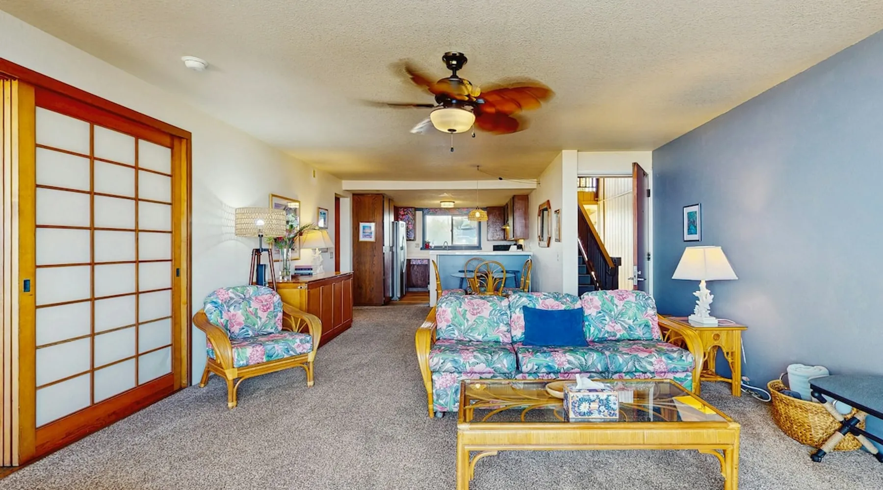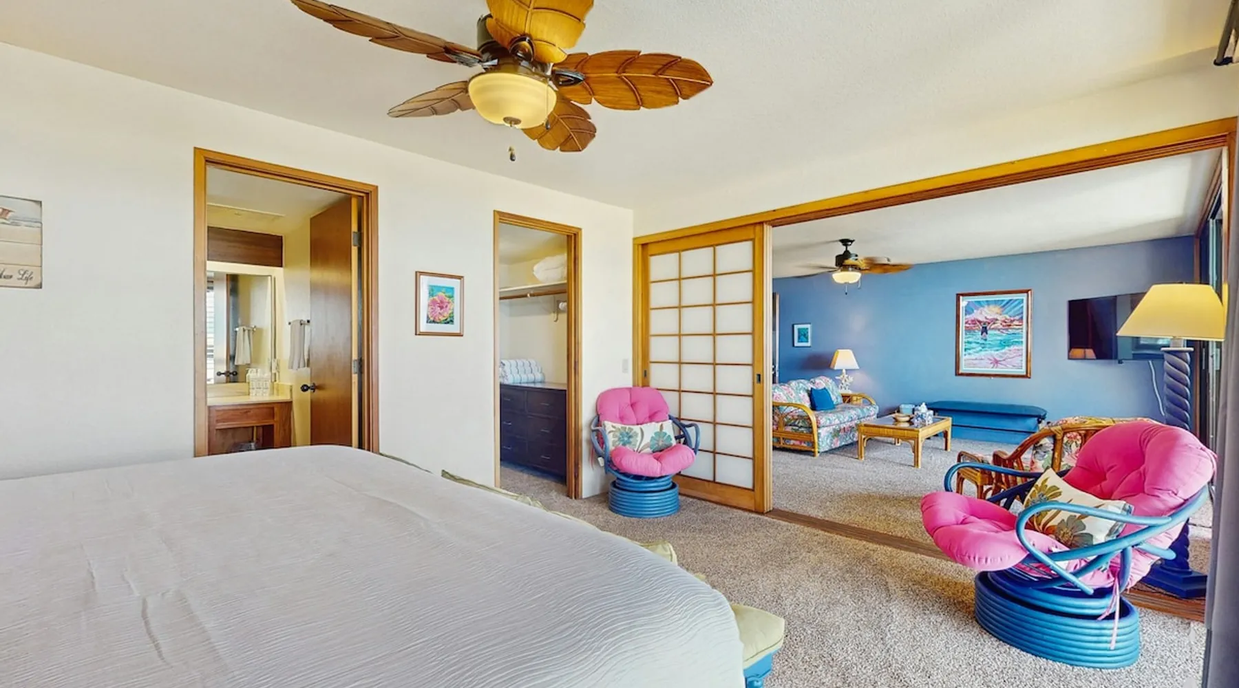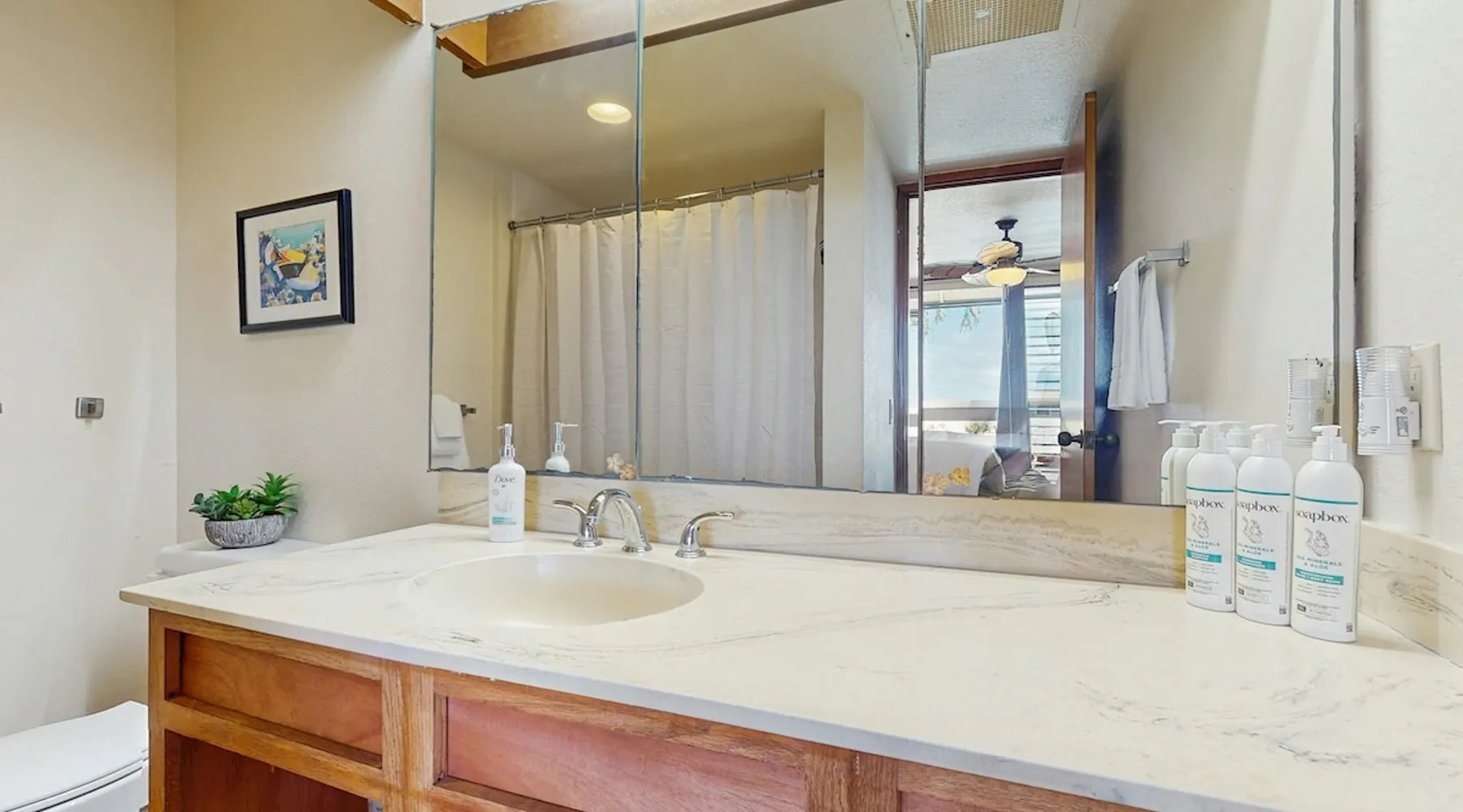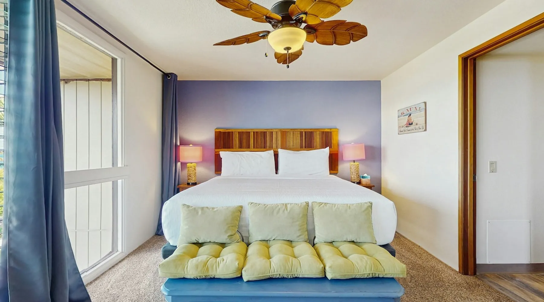 The space Making Makahuena Memories in 2204 Welcome to Makahuena at Poipu Unit #2204, a gorgeous second-floor condo in Koloa, Hawai‘i, where panoramic ocean views and tropical breezes set the tone for an unforgettable escape. This thoughtfully designed retreat features a seamless flow between the living room, dining area, and fully equipped kitchen, all offering front-row views of the sparkling Pacific. Adding to the condo’s unique charm is the touch of beloved local artist Marionette Taboniar, whose creative spirit played a key role in the recent refresh of the space. Her signature style, inspired by old Hawai‘i, is featured on hand-painted kitchen cabinets, a custom window valance, and framed artwork throughout the unit. Her vision and artistry helped shape the soul of this home—and it shows in every thoughtful detail. Ceiling fans in every room keep the island air moving, adding to the relaxed comfort of this breezy home. The primary suite is a true sanctuary, with a king bed positioned to take full advantage of the ocean view from the moment you wake. Two swivel chairs and a small table offer the perfect nook for your morning coffee or a front-row seat to a fiery Kaua‘i sunset. Floor-to-ceiling curtains were specially chosen to fold completely back, ensuring that nothing stands between you and the sea. You’ll also enjoy a private en suite bathroom with a tub and vanity, along with a spacious walk-in closet for all your island attire. The second bedroom is ideal for kids, friends, or additional guests, with two twin beds that can be converted into a king. A hallway bathroom with a tub adds convenience and privacy for everyone. Plan to enjoy exceptional snorkeling at the award-winning Poipu Beach within walking distance where you can see sea turtles, monk seals, and other native wildlife. Whether you're sipping a cool drink or settling in for a movie night with the flat-screen TV, the soothing ambiance of the sea is never far away. Slide open the lanai doors and step outside to feel the trade winds on your skin and watch the waves roll in. This is island living at its best. When you're not relaxing at home, take a dip in the community pool, play a round of golf nearby, or explore the beaches, shops, and restaurants just moments away. Unwind, adventure, or simply take in the beauty of Kaua‘i, with Makahuena #2204 as your perfect home base. Book your stay today and discover why guests return year after year! Please note: This rental unit is located on floor 2. This building is not equipped with an elevator; stair access only. No dog(s) are welcome in this home. No other animals are allowed without specific Vacasa approval. This rental is located on floor 2. Parking notes: There is free parking available for 2 vehicles. Damage waiver: The total cost of your reservation for this Property includes a damage waiver fee which covers you for up to $3,000 of accidental damage to the Property or its contents (such as furniture, fixtures, and appliances) as long as you report the incident to the host prior to checking out. More information can be found from the "Additional rules" on the checkout page. Due to local laws or HOA requirements, guests must be at least 21 years of age to book. Guests under 21 must be accompanied by a parent or legal guardian for the duration of the reservation. Registration Details 280200030030, TA-078-461-0816-01