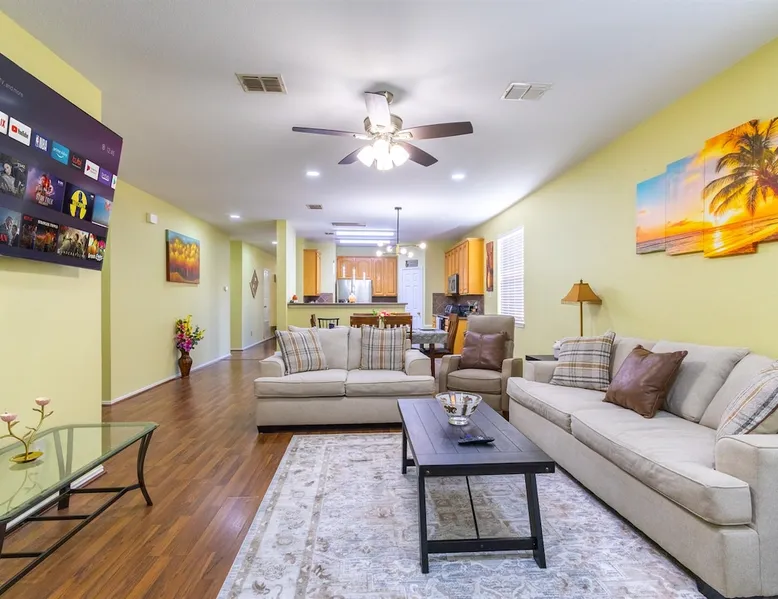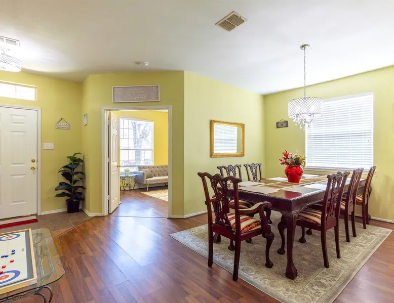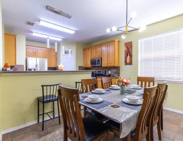 Welcome to your Retreat Getaway in Garland, Texas! This spacious home is designed for comfort and fun, perfect for family trips, group getaways, or business travelers seeking a relaxing space near Dallas. Inside, you’ll find warm Texas-style decor, spacious living areas & a fully equipped kitchen. Remote workers will appreciate fast WiFi, dedicated work space and quiet surroundings, while families and vacationers can enjoy cozy bedrooms, backyard lounging and unbeatable proximity to the water The space Step into true Texas charm at this inviting Garland retreat perfectly located just a short walk from the lake and minutes from community parks and a sparkling pool. Whether you’re visiting for work, family, or pure relaxation, this home is designed to make your stay effortless and memorable. From morning walks along the lake to evenings spent unwinding on the patio, this home offers the perfect balance of comfort, convenience, and local character ideal for extended stays or quick getaways alike. What you’ll love about this home: • 5 min walk to Lake Ray Hubbard • Pool table for friendly competition and evening entertainment • Access to community pool and park just steps away • Open-concept living and dining area with Texas style furnishings and Fast Wi-Fi • Fully equipped kitchen • Comfortable bedrooms with fresh linens and ample storage • Private backyard for relaxing mornings or evening gatherings with a fire pit, corn hole game, and a covered patio area! ⸻ Nearby Attractions • Lake Ray Hubbard (5 min) – Fishing, boating, lakeside dining, and walking trails • Firewheel Town Center (10 min) – Shopping, dining, and movie theater • Bass Pro Shops (8 min) – Outdoor gear + restaurants overlooking the lake • Downtown Dallas (20–25 min) – Museums, nightlife, sports venues, and entertainment • Hawaiian Waters Garland Waterpark (10 min) – Family-friendly water park fun ⸻ Perfect For • Family vacations • Weekend getaways with friends • Work trips or extended stays near Dallas • Guests seeking easy access to major highways (I-30 & PGBT) Guest access Guests will have full access to the entire home and outdoor living space, plus community amenities including: • Pool • Park/playground • Walking trails to the lake Other things to note • Walk to the Lake – Scenic trails and peaceful views just minutes from your door • Community Pool & Park Access – Great for family fun or a refreshing break after work • 20 Minutes to Downtown Dallas – Easy commute for business or exploring the city • Spacious Living Areas – Open layout with cozy Texas-style decor and room to gather • Fully Equipped Kitchen – Cook at home with all the essentials provided • Work-Friendly Setup – Fast Wi-Fi and dedicated spaces for remote work or study • Family-Friendly Comforts – Multiple bedrooms, backyard, and nearby kid-friendly spots • Convenient Parking – Driveway and street parking available for multiple vehicles • Quiet Neighborhood – Perfect for restful nights while staying close to major attractions