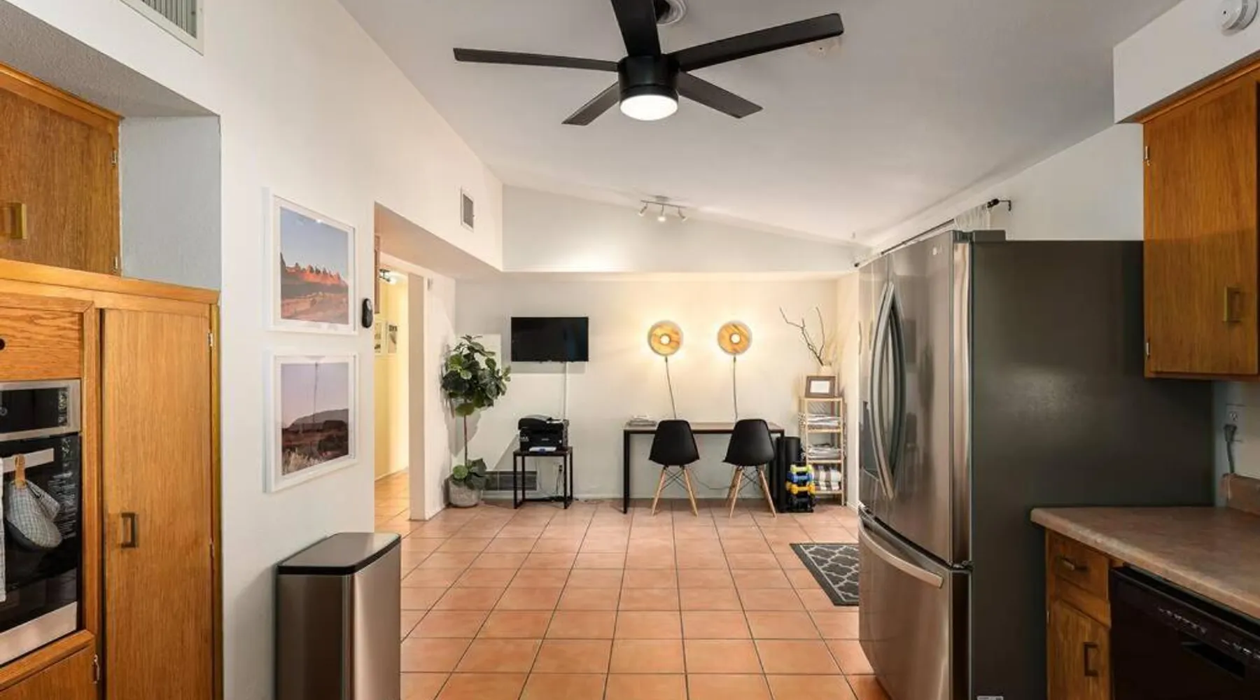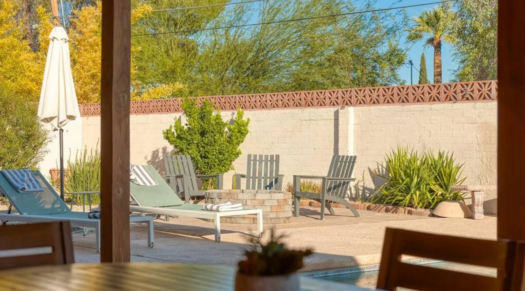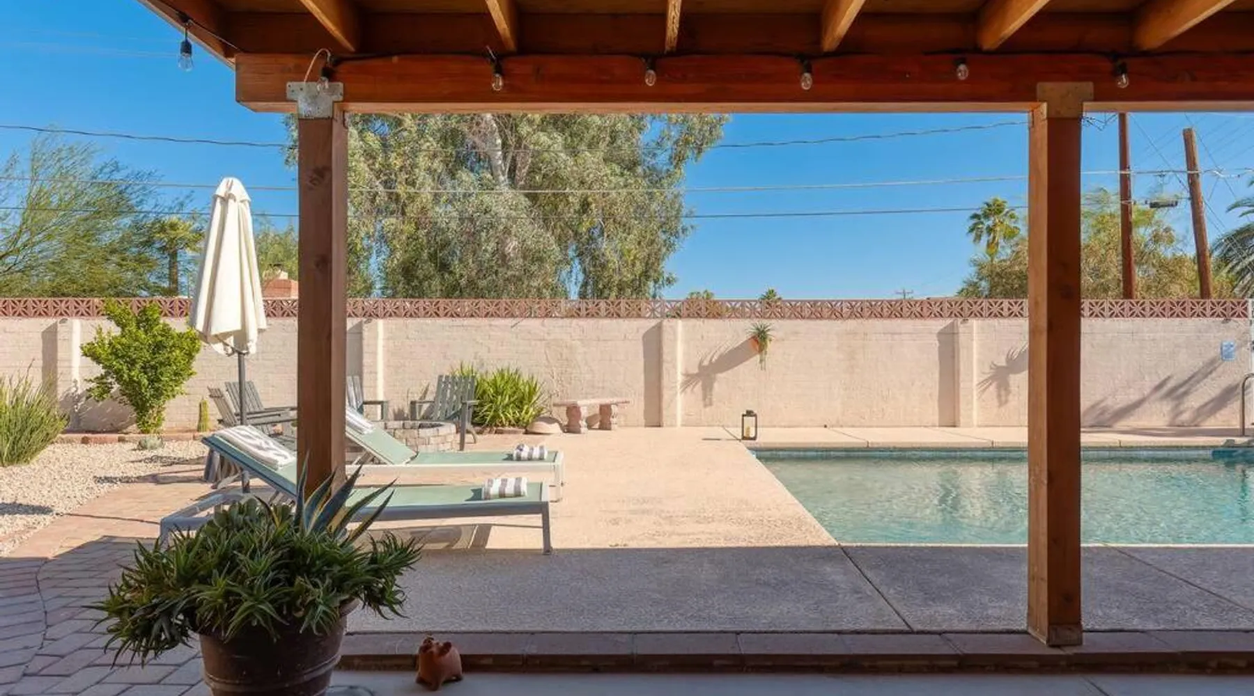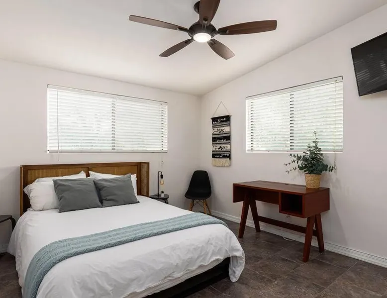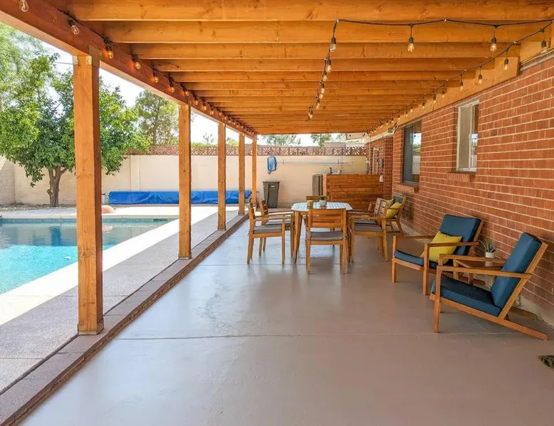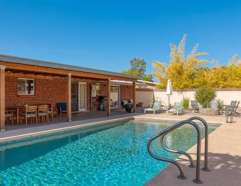 Spacious Accommodations: Stylish Mid-Century Oasis with Pool in Tucson offers three bedrooms and two bathrooms. The ground-floor unit features a private entrance and inner courtyard views. Modern Amenities: Guests enjoy a garden, heated pool, terrace, and free WiFi. The property includes air-conditioning, a fireplace, and a fully equipped kitchen with a dishwasher and microwave. Convenient Location: Located 9.3 mi from Tucson International Airport, the holiday home is near Arizona Stadium (4.3 mi), Tucson Convention Center (6.2 mi), and Reid Park Zoo (3.7 mi). Free on-site private parking is available. Highly Rated by Guests: The property is highly rated for its spaciousness, pet-friendly environment, and excellent facilities. This holiday home's special features are the private pool and the fireplace. Guests will find a stovetop, a refrigerator, a dishwasher and kitchenware in the well-fitted kitchen. The holiday home also offers a barbecue. The spacious air-conditioned holiday home provides a flat-screen TV with streaming services, a washing machine, a private entrance, a tea and coffee maker as well as garden views. The unit offers 4 beds.