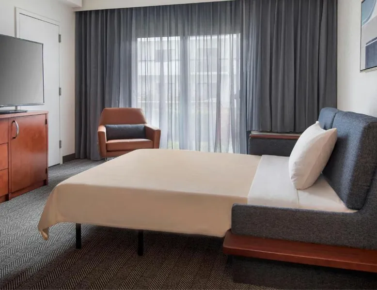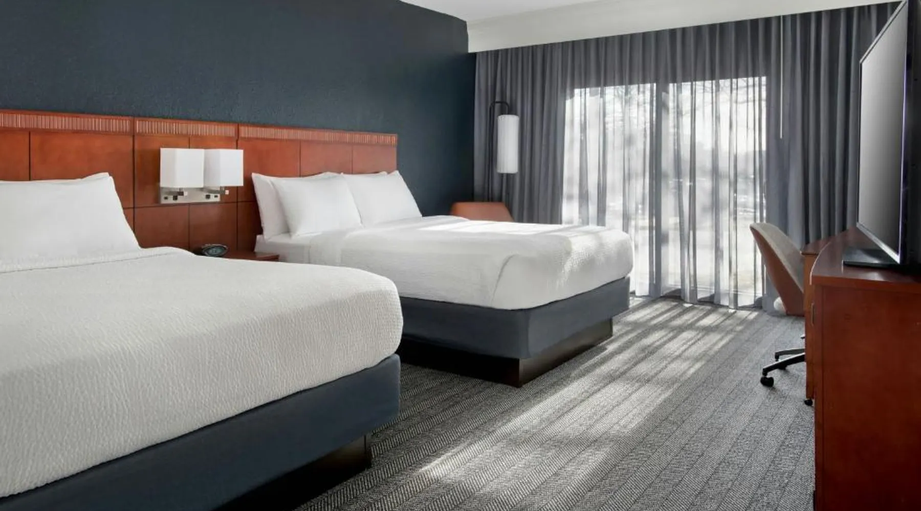 This hotel is 6.5 mi away from downtown Silver Spring and the University of Maryland. The hotel offers rooms with free WiFi. Courtyard Silver Spring North/White Oak rooms feature a sitting area and work desk. The rooms are also equipped with a coffee maker and pay-per-view movies. Dining options at The Bistro - Eat. Drink. Connect. provides guests with healthy food and beverage offerings in the morning and evening dinner service with cocktails. The hotel also offers a 24-hour snack shop and a light menu at The Market. Guests at the Courtyard Silver Spring North/White Oak can work out in the gym. The Courtyard is 14 mi away from downtown Washington DC. The hotel is 27 mi away from the Inner Harbor Baltimore, which features shopping and dining. The double room features a private bathroom equipped with a shower and a hairdryer. The spacious air-conditioned double room provides a TV with streaming services, a tea and coffee maker, a seating area and a sofa. The unit offers 2 beds.