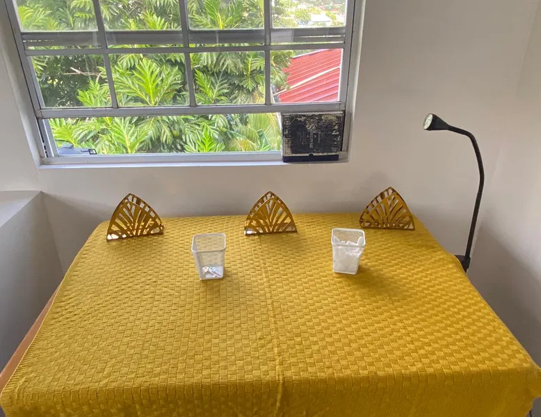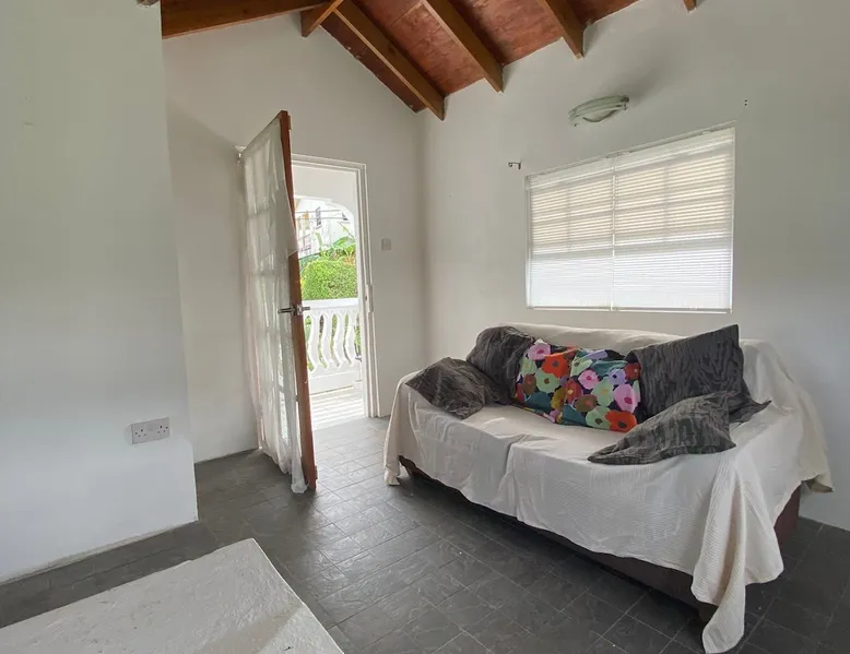 I Love this space because it is in a family home, But offers privacy to guests. Added to the main property in 2012 it is based in the livley fishing village of Dennery on the east coast of the island. The first floor of the apartment (entrance) take you into the kitchen, where you have the stairs leading you the basement which hosts the Wet Room and Toilet. The stairs to the second floor is located in the kitchen area which leads to the main relaxing area and balcony and the sleeping area. The space Y.O.L.O Apartment has a unique half moon shaped balcony (in the front room area), Perfect for breakfast & early evening drinks, or just relaxing and taking in the sights and sounds of the village. Guest access Y.O.L.O Apartment has three levels, Basement=Shower, First Floor=Kitchen, Second Floor=Living Area = x 1 Sofa\ & x 1 Bed Room with X 2 double beds. Sleeps 6 people. Entrance to the property is thorough the main house gates. Guest will have their own private entrance to the apartment, which is located on the side of the main home. Other things to note Dennery Fish Fiesta Every Saturday Night,(except for some religious holiday). Zip Lining, Mamiku Botanical Gardens.