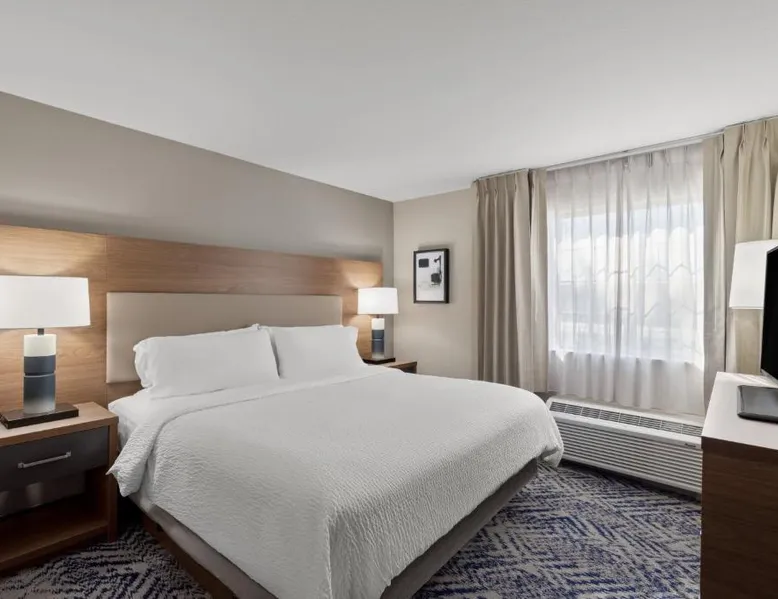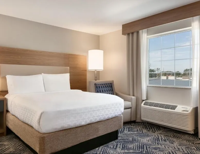 Comfortable Accommodations: Candlewood Suites Yuma by IHG in Yuma offers air-conditioned rooms with private bathrooms, fully equipped kitchens, and modern amenities including a work desk and TV. Convenient Facilities: Guests benefit from a elevator and a 24-hour front desk, ensuring easy access and assistance around the clock. Free on-site parking is available for added convenience. Additional Amenities: Each room features a sofa, hairdryer, refrigerator, microwave, dishwasher, oven, and stovetop, catering to all guest needs. Prime Location: Located 2.5 mi from Yuma International Airport, the hotel provides easy access to local attractions and amenities. Highly rated by guests for its excellent service and facilities. An accessible bath is featured in this room. Free Wi-Fi, a fully-equipped kitchen, flat-screen TV with DVD player, leather recliner and work desk are included.