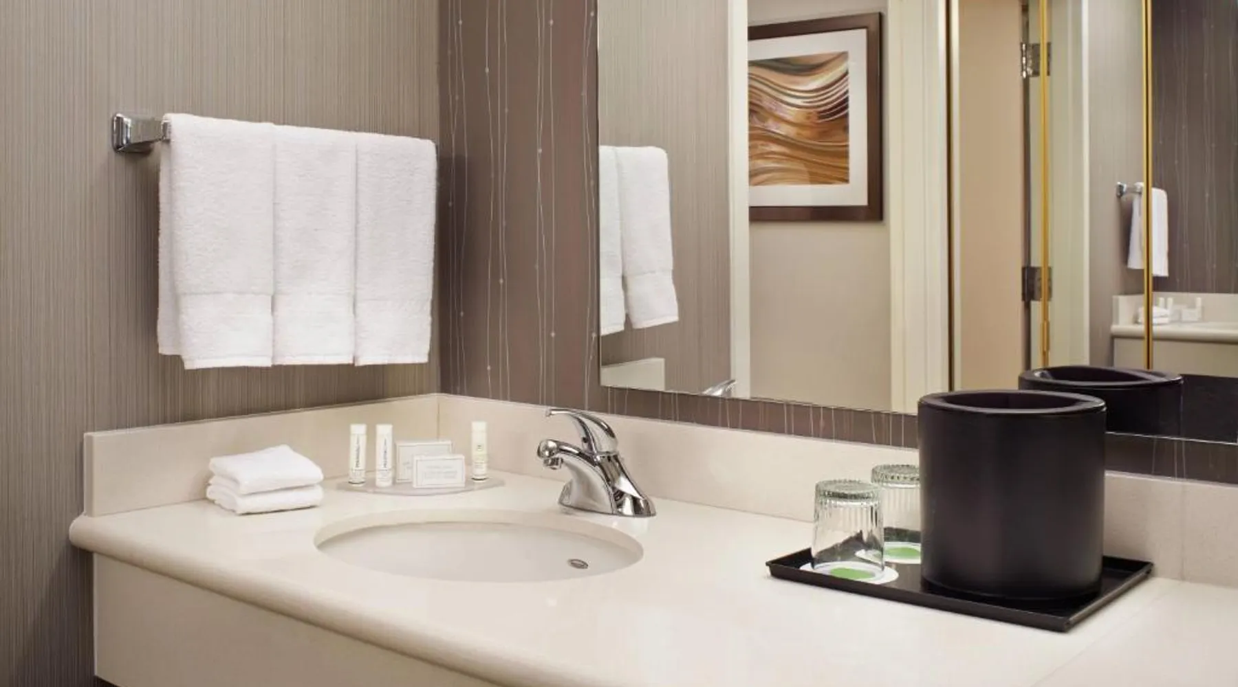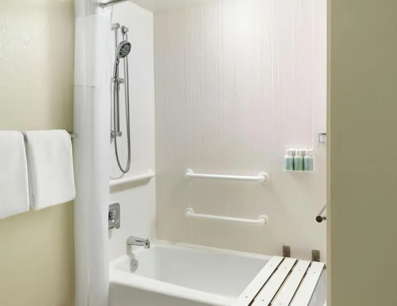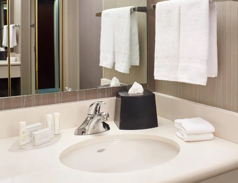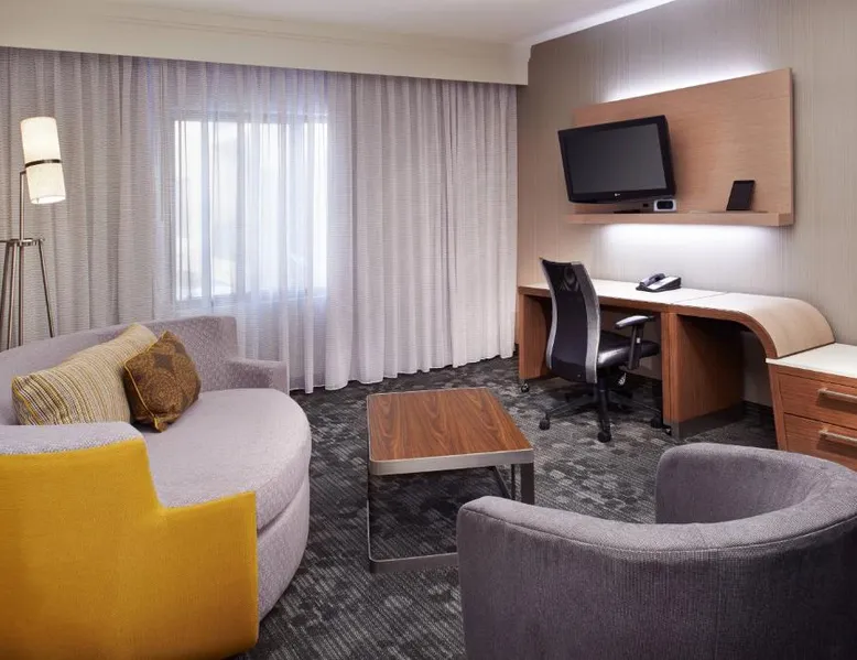 Comfortable Accommodations: Courtyard Toledo Rossford/Perrysburg in Rossford offers air-conditioned rooms with private bathrooms, hairdryers, work desks, seating areas, free toiletries, bath or showers, TVs, and sofas. Dining Experience: The hotel features an American restaurant, providing guests with a variety of dining options. Convenient Facilities: Guests benefit from a elevator, 24-hour front desk, and free on-site parking. Local Attractions: Located 17 mi from Toledo Express Airport, the hotel is near Ottawa Park Golf Course (7.5 mi), Fifth Third Field (8.1 mi), and Toledo Museum of Art (8.7 mi). Highly Rated by Guests: The hotel is highly rated by guests for its excellent service and comfortable accommodations. The unit has 2 beds.