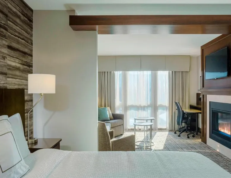 Comfortable Accommodations: Fairfield by Marriott Waterbury Stowe in Waterbury offers air-conditioned rooms with private bathrooms, free WiFi, and modern amenities. Each room includes a work desk, TV, and wardrobe, ensuring a pleasant stay. Exceptional Facilities: Guests can enjoy a fitness center, indoor swimming pool, and hot tub. Additional facilities include a lounge, outdoor fireplace, and outdoor seating area. Free on-site parking and ski storage cater to active travelers. Delicious Breakfast: A complimentary American buffet breakfast is served daily, featuring fresh pastries, fruits, and juices. The property staff provide excellent service and maintain high standards of room cleanliness. Prime Location: Located 24 mi from Burlington International Airport, the hotel is near attractions such as Mount Mansfield (19 mi) and Stowe Village Historic District (8.7 mi). Free WiFi is available throughout the property. Offering free toiletries, this double room includes a private bathroom with a shower and a hairdryer. The spacious double room offers air conditioning, a coffee machine, a wardrobe, a carpeted floor and a flat-screen TV with streaming services. The unit offers 1 bed.
