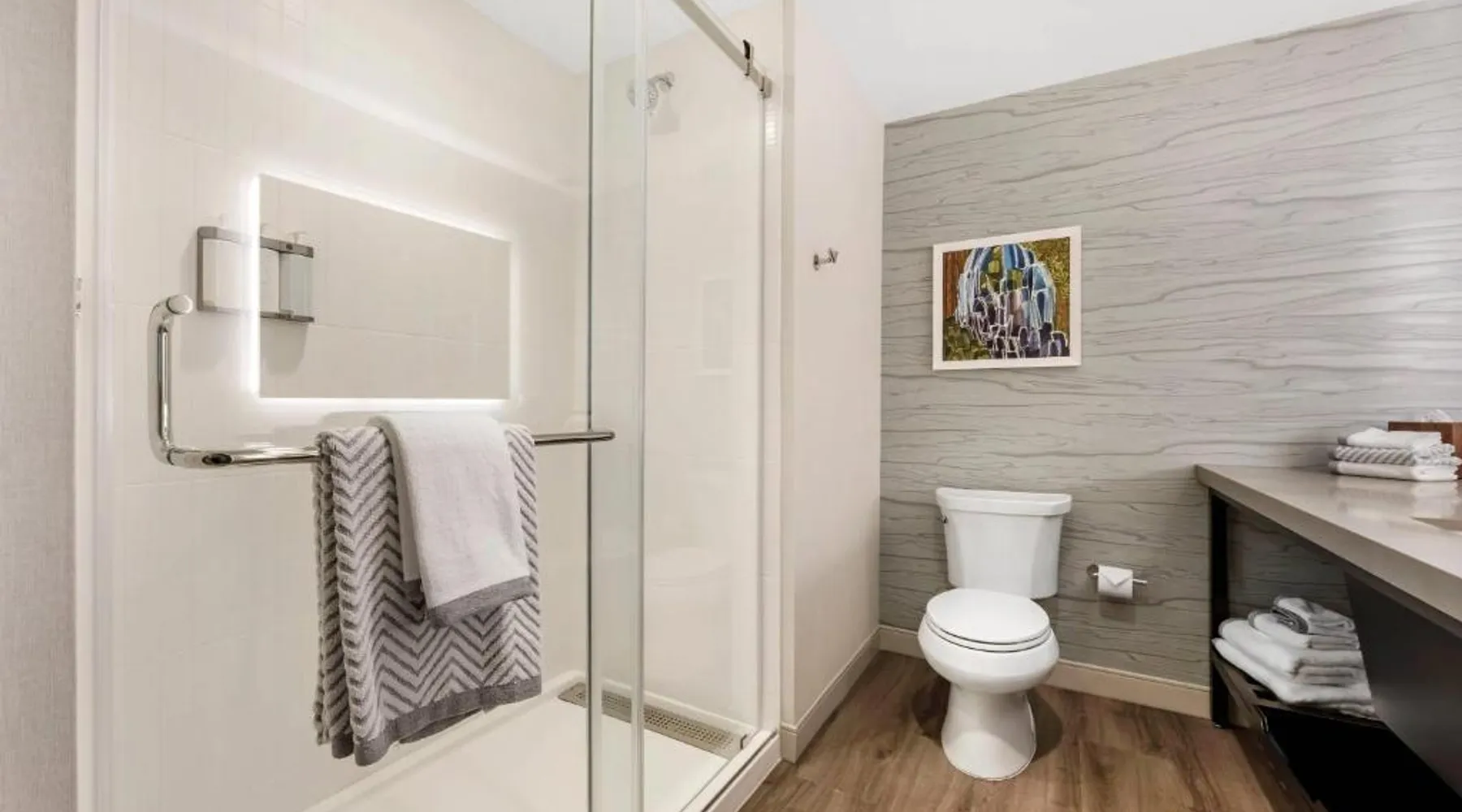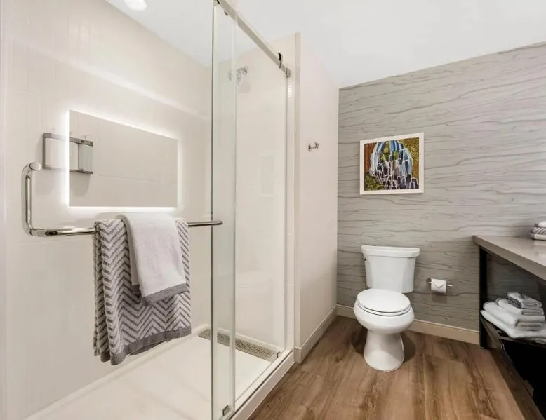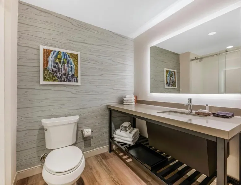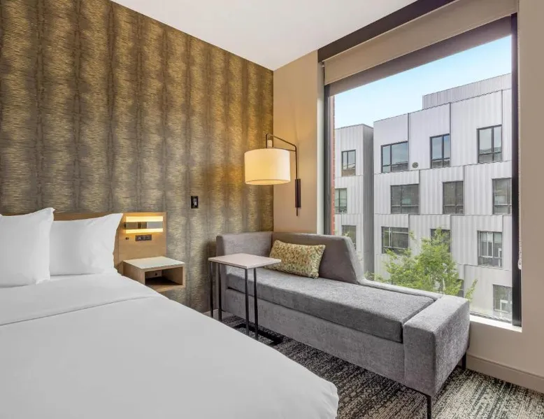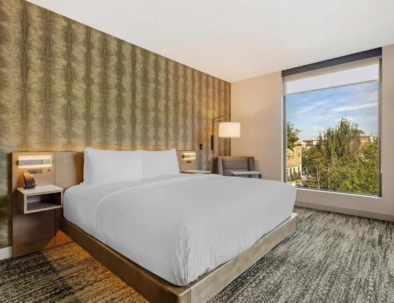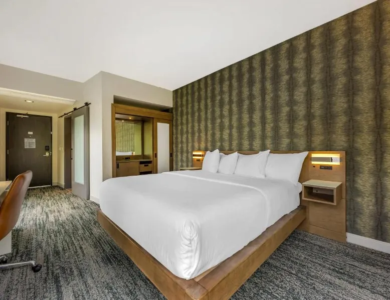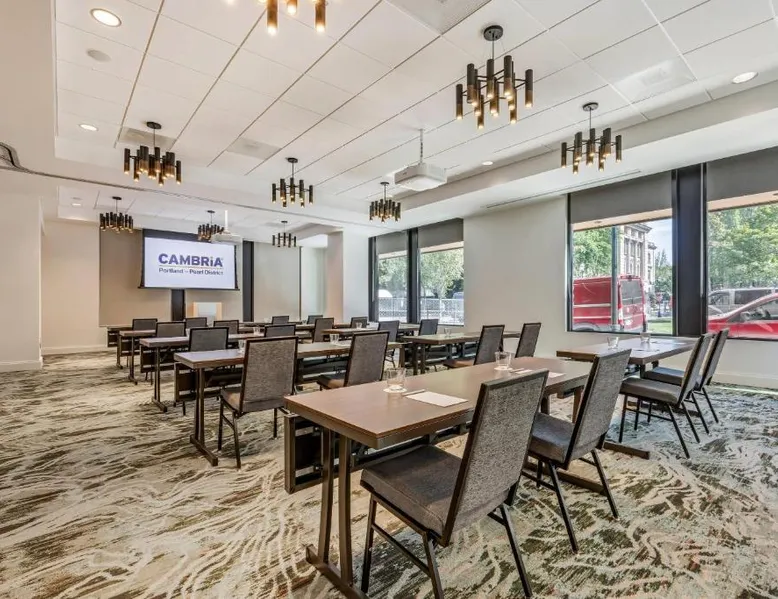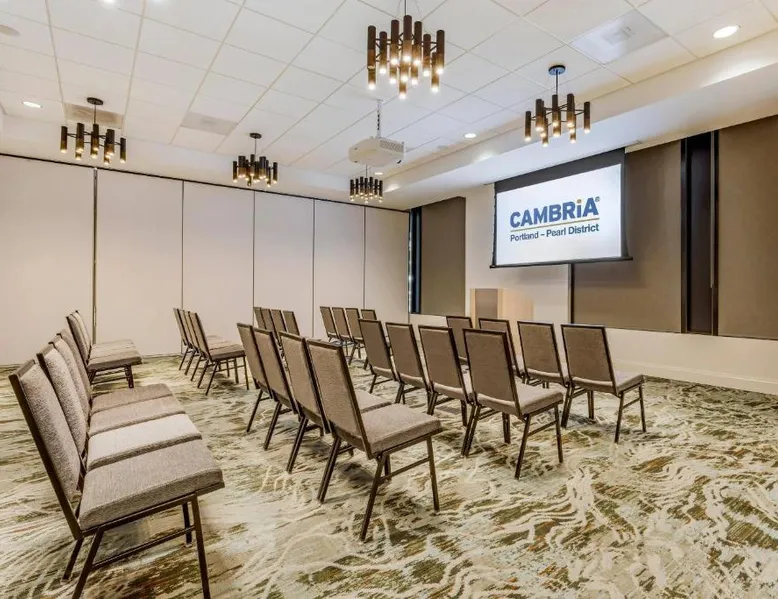 Comfortable Accommodations: Cambria Hotel Portland - Pearl District in Portland offers air-conditioned rooms with private bathrooms, city views, and modern amenities. Each room includes a tea and coffee maker, refrigerator, work desk, and free toiletries. Dining and Leisure: Guests can enjoy American cuisine at the on-site restaurant, which serves brunch, dinner, and cocktails. The bar provides a relaxing atmosphere for evening drinks. Free WiFi is available throughout the property. Convenient Location: Located in the city center, the hotel is 8.1 mi from Portland International Airport. Nearby attractions include Portland Union Station (9-minute walk), Lan Su Chinese Garden (1969 feet), and Portland Art Museum (12-minute walk). Featuring free toiletries, this suite includes a private bathroom with a shower and a hairdryer. The air-conditioned suite features a flat-screen TV with cable channels, a private entrance, a tea and coffee maker, a seating area as well as city views.