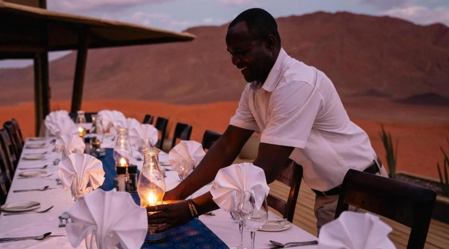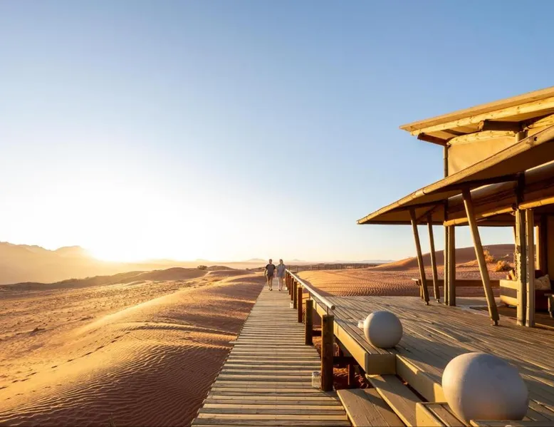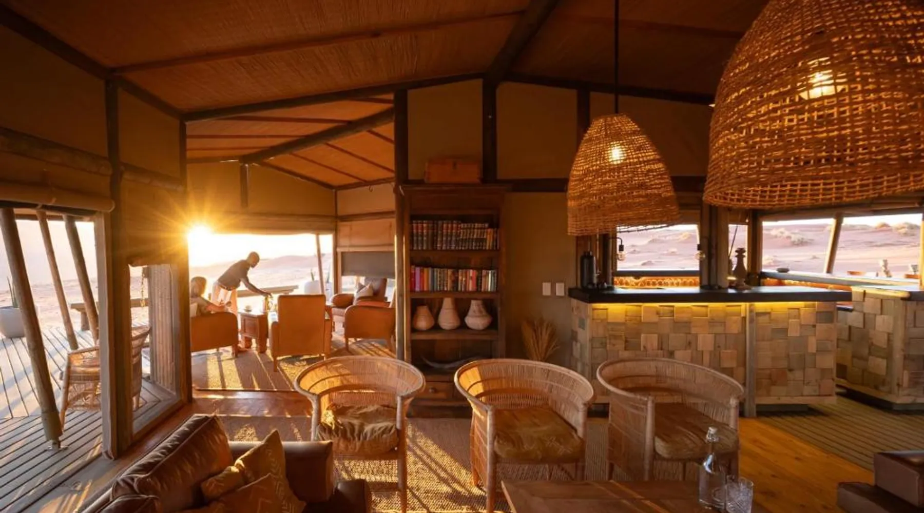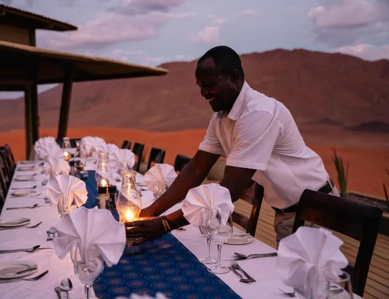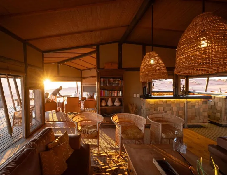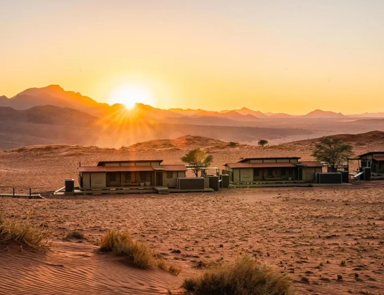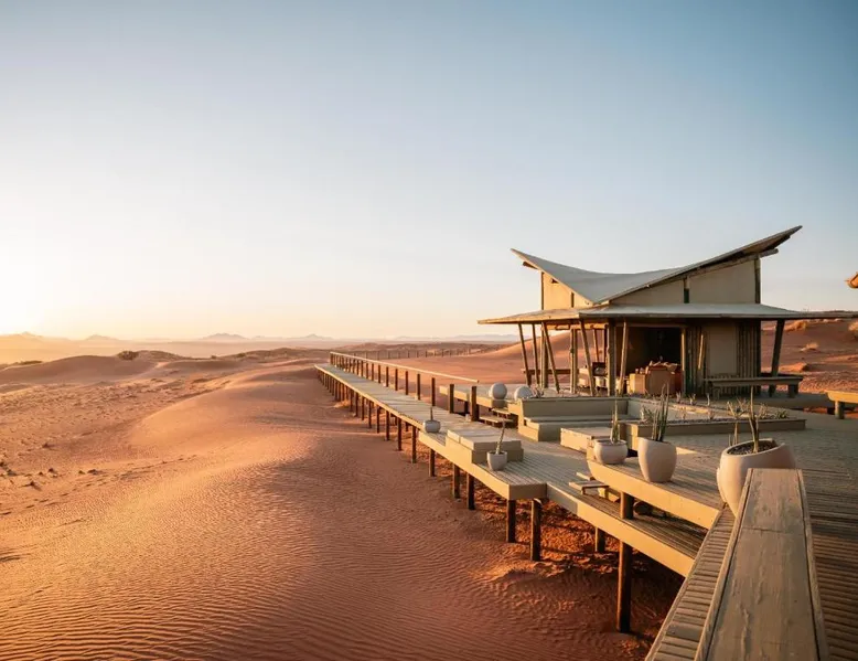 Elegant Accommodations: Wolwedans Desert Lodge in NamibRand offers comfortable family rooms with mountain views. Each room includes a terrace or patio, free WiFi, and a work desk. Dining and Leisure: Guests can enjoy a restaurant serving continental breakfast and a bar. The lodge features a garden, outdoor furniture, and a seating area, perfect for relaxation. Convenient Services: The property provides a paid airport shuttle service and free toiletries. Additional amenities include a tea and coffee maker and a work desk. Natural Surroundings: Located in NamibRand, the lodge offers stunning mountain views and a serene garden setting. The tent features a tea and coffee maker, a seating area, as well as a terrace and a patio. The unit has 1 bed.