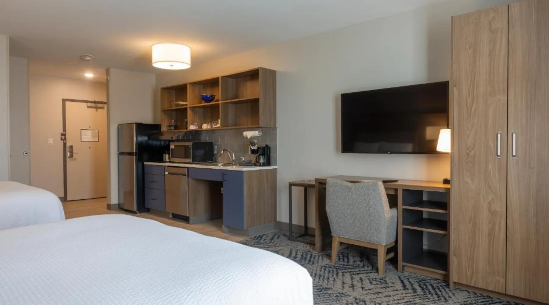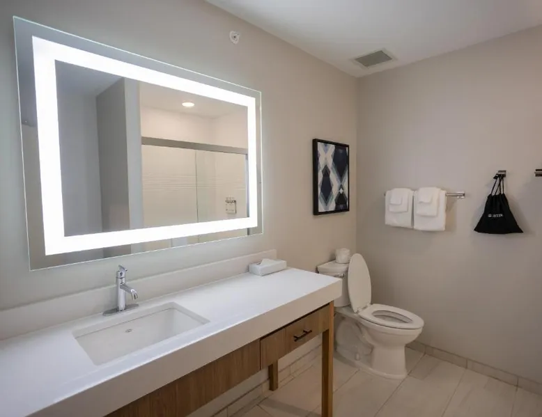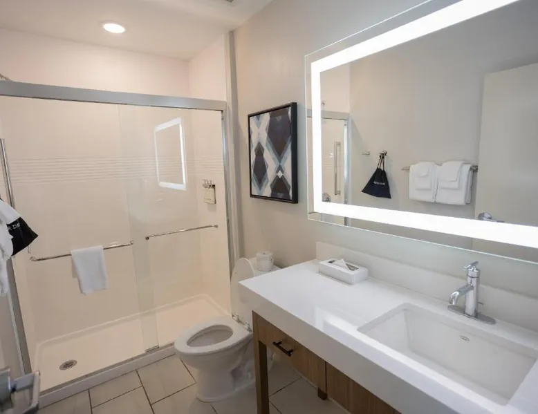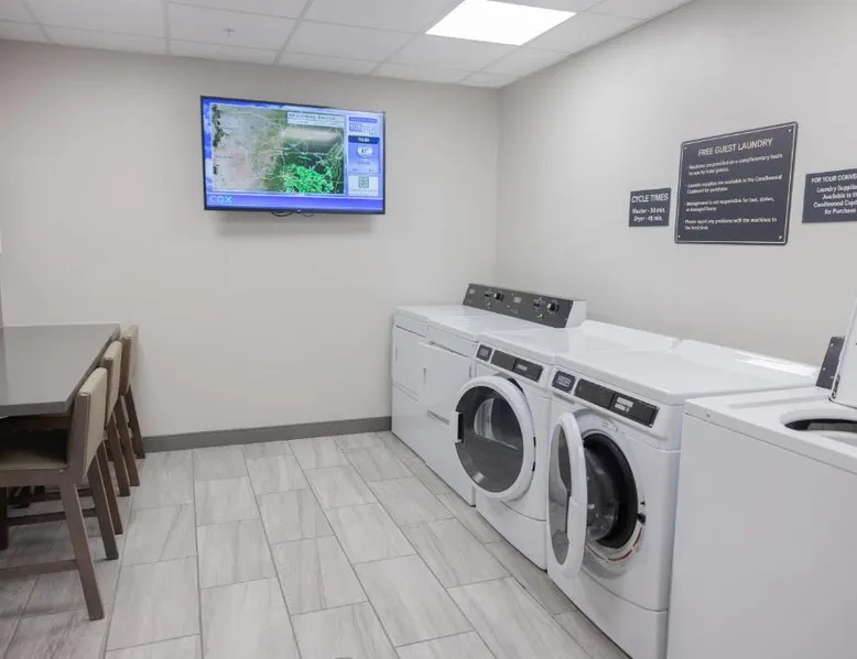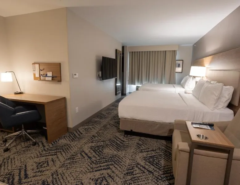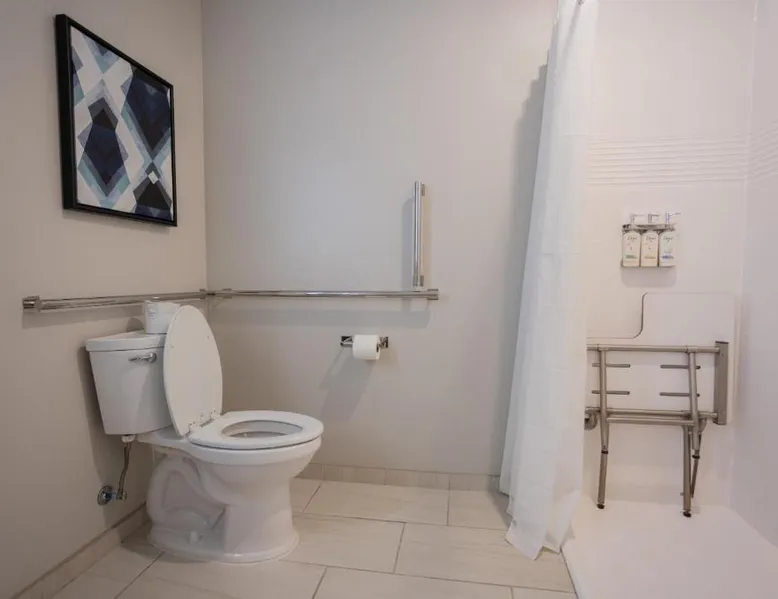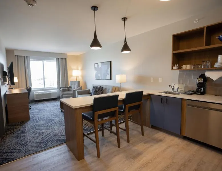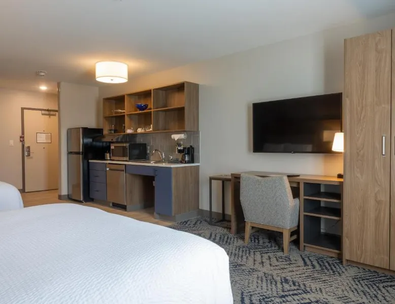 Comfortable Accommodations: Candlewood Suites - Tulsa Hills - Jenks by IHG in Jenks offers air-conditioned rooms with kitchenettes, private bathrooms, and free WiFi. Each room includes a work desk, TV, and seating area. Exceptional Facilities: Guests can enjoy a fitness center, bar, seasonal outdoor swimming pool, and outdoor fireplace. Additional amenities include a lounge, minimarket, and business area. Convenient Location: Located 17 mi from Tulsa International Airport, the hotel is near attractions such as Philbrook Museum (9.3 mi) and Brady Theater (9.9 mi). Free on-site private parking is available. The suite offers a tea and coffee maker, a wardrobe, as well as a private bathroom boasting a walk-in shower and a bath. Guests can make meals in the kitchen that is fitted with a stovetop, a refrigerator, a dishwasher and kitchenware. This wheelchair accessible suite has air conditioning, a seating area with a flat-screen TV and a roll-in shower. The unit has 2 beds.