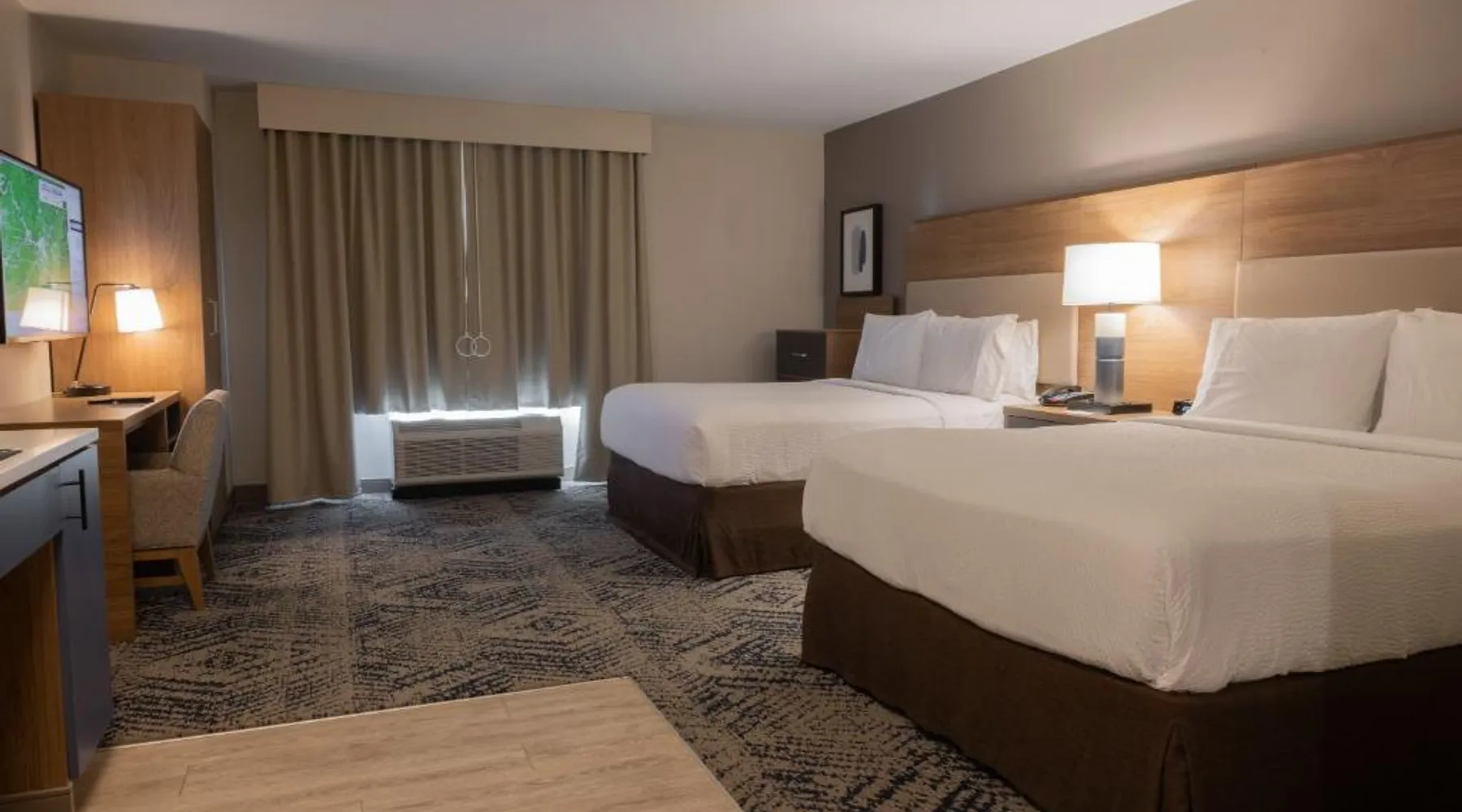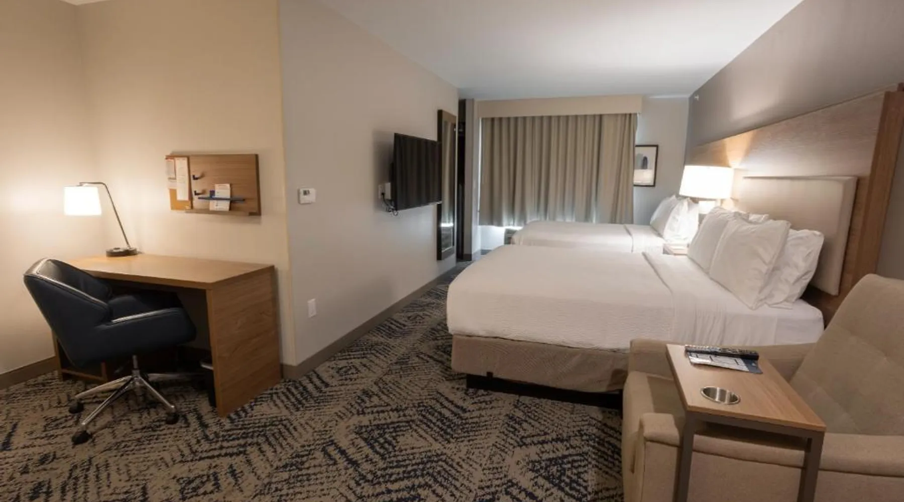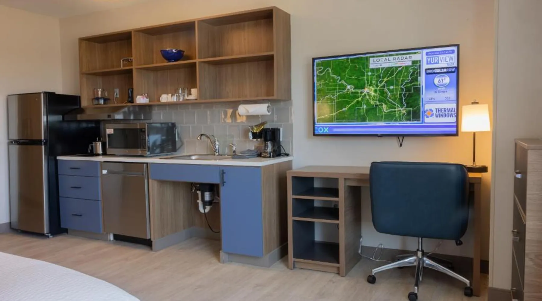 Comfortable Accommodations: Candlewood Suites - Tulsa Hills - Jenks by IHG in Jenks offers air-conditioned rooms with kitchenettes, private bathrooms, and free WiFi. Each room includes a work desk, TV, and seating area. Exceptional Facilities: Guests can enjoy a fitness center, bar, seasonal outdoor swimming pool, and outdoor fireplace. Additional amenities include a lounge, minimarket, and business area. Convenient Location: Located 17 mi from Tulsa International Airport, the hotel is near attractions such as Philbrook Museum (9.3 mi) and Brady Theater (9.9 mi). Free on-site private parking is available. The suite offers a tea and coffee maker, a wardrobe, as well as a private bathroom boasting a walk-in shower and a bath. Guests can make meals in the kitchen that is fitted with a stovetop, a refrigerator, a dishwasher and kitchenware. This wheelchair accessible suite has air conditioning, a seating area with a flat-screen TV and a roll-in shower. The unit has 2 beds.