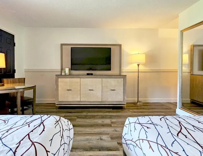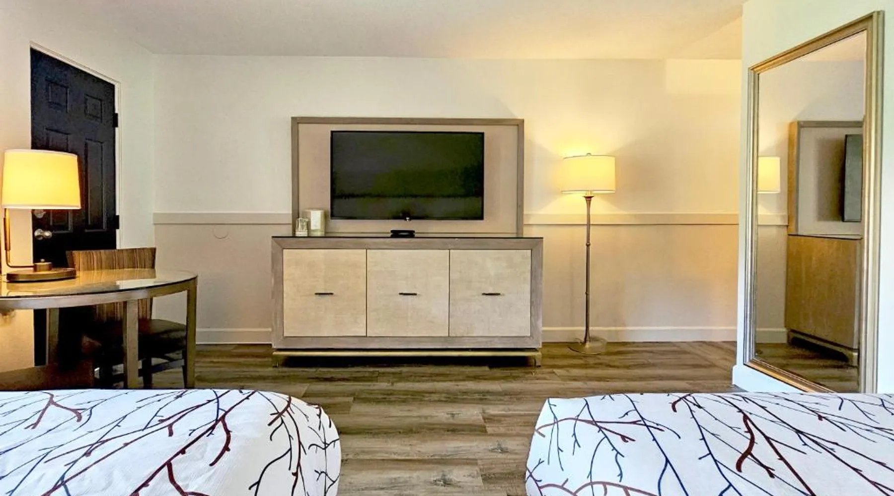 Comfortable Accommodations: Talley Ho Inn in Townsend offers 3-star comfort with air-conditioning, private bathrooms, and garden, terrace, or pool views. Each room includes a balcony, patio, and parquet floors. Leisure Facilities: Guests can enjoy a seasonal outdoor swimming pool, tennis court, and tennis equipment hire. The property also features a kids' pool and free WiFi throughout. Convenient Location: Located 23 mi from McGhee Tyson Airport, the hotel is near attractions such as The Grand Majestic Theater (16 mi) and Dollywood (19 mi). Free on-site private parking is available. The quadruple room offers air conditioning, a tea and coffee maker, a terrace with mountain views as well as a private bathroom boasting a bath. The unit has 2 beds.