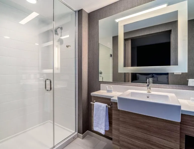 Comfortable Accommodations: Rooms feature air-conditioning, private bathrooms, tea and coffee makers, coffee machines, refrigerators, microwaves, and TVs. Ground-floor units offer easy access. Exceptional Facilities: Guests enjoy a fitness center, indoor swimming pool, restaurant, bar, and free WiFi. Additional amenities include a paid airport shuttle, 24-hour front desk, and electric vehicle charging station. Delicious Dining: A continental buffet breakfast is served with warm dishes, juice, fresh pastries, and fruits. American cuisine is available at the on-site restaurant. Prime Location: Located 1.2 mi from San Francisco Bay Oakland International Airport, the hotel is near attractions such as Oakland Coliseum (1.9 mi) and Oakland Museum of California (7.5 mi). Highly rated for room cleanliness, connectivity, and staff support. This suite is air-conditioned and has a private bathroom and a tea and coffee maker.