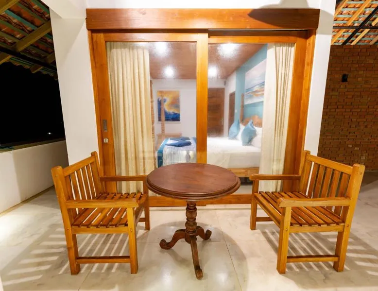Beachfront Location: Ocean Gateway Dickwella in Dickwella offers direct beachfront access with a private beach area. Guests enjoy sea views and a serene beachfront setting. Comfortable Accommodations: Rooms feature air-conditioning, private bathrooms with bidets, and balconies. Additional amenities include sea views, work desks, and free WiFi in public areas. Dining Experience: The resort features a family-friendly restaurant serving local, Asian, and international cuisines. Breakfast options include continental, à la carte, vegetarian, and Asian. Leisure Facilities: Guests can relax at the spa, enjoy the terrace, and take advantage of the free WiFi. The property also offers a bar, outdoor seating, and bicycle parking. Nearby Attractions: Batheegama Beach is just a few steps away, while Koggala Airport is 31 mi distant. Other attractions include Hummanaya Blow Hole (5 mi) and Tangalle Lagoon (11 mi). The spacious double room offers air conditioning, a wardrobe, a balcony with sea views as well as a private bathroom featuring a bath. The unit offers 1 bed.
