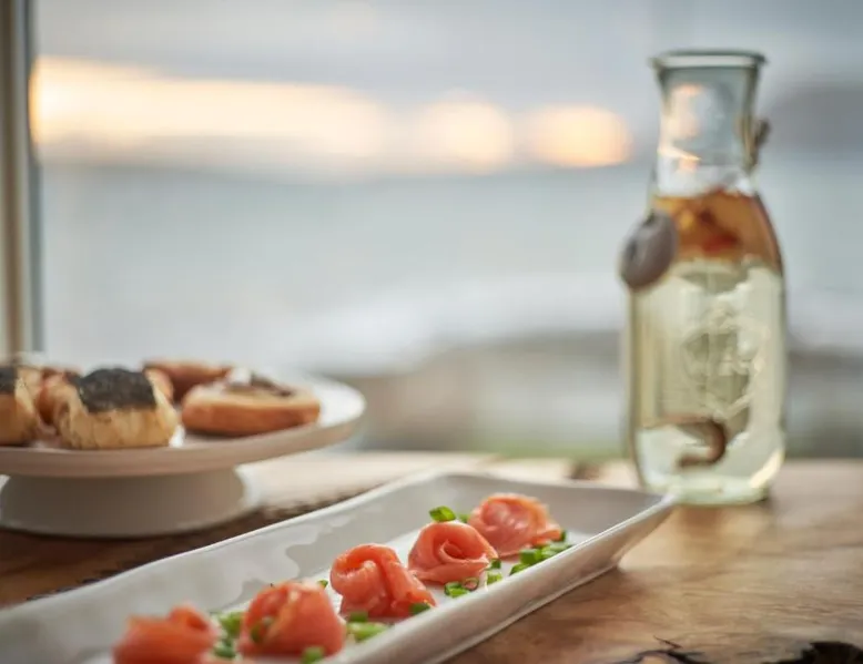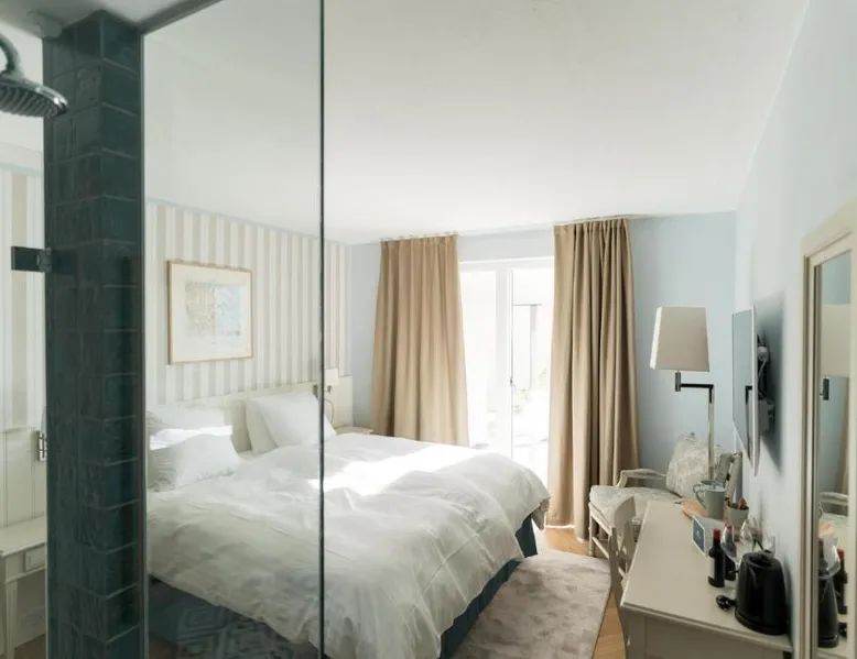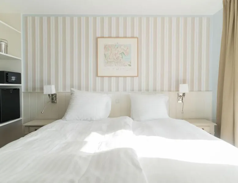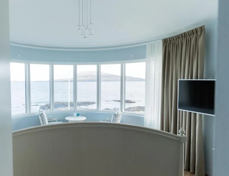 Elegant Accommodations: Havgrim Seaside Hotel 1948 in Tórshavn offers a garden, terrace, bar, and free WiFi. Guests enjoy sea views, a child-friendly buffet, and family rooms. Comfortable Amenities: The hotel features private bathrooms with walk-in showers, tea and coffee makers, and free toiletries. Additional amenities include a work desk, soundproofing, and free on-site private parking. Dining Experience: A continental buffet breakfast is served daily. The bar provides a relaxing atmosphere, and outdoor seating areas enhance the dining experience. Prime Location: Located 29 mi from Vágar Airport and 1.2 mi from Sandagerð Beach, the hotel is highly rated for its scenic views and excellent service. The double room provides a private entrance, soundproof walls, a terrace with sea views as well as a private bathroom featuring a walk-in shower.