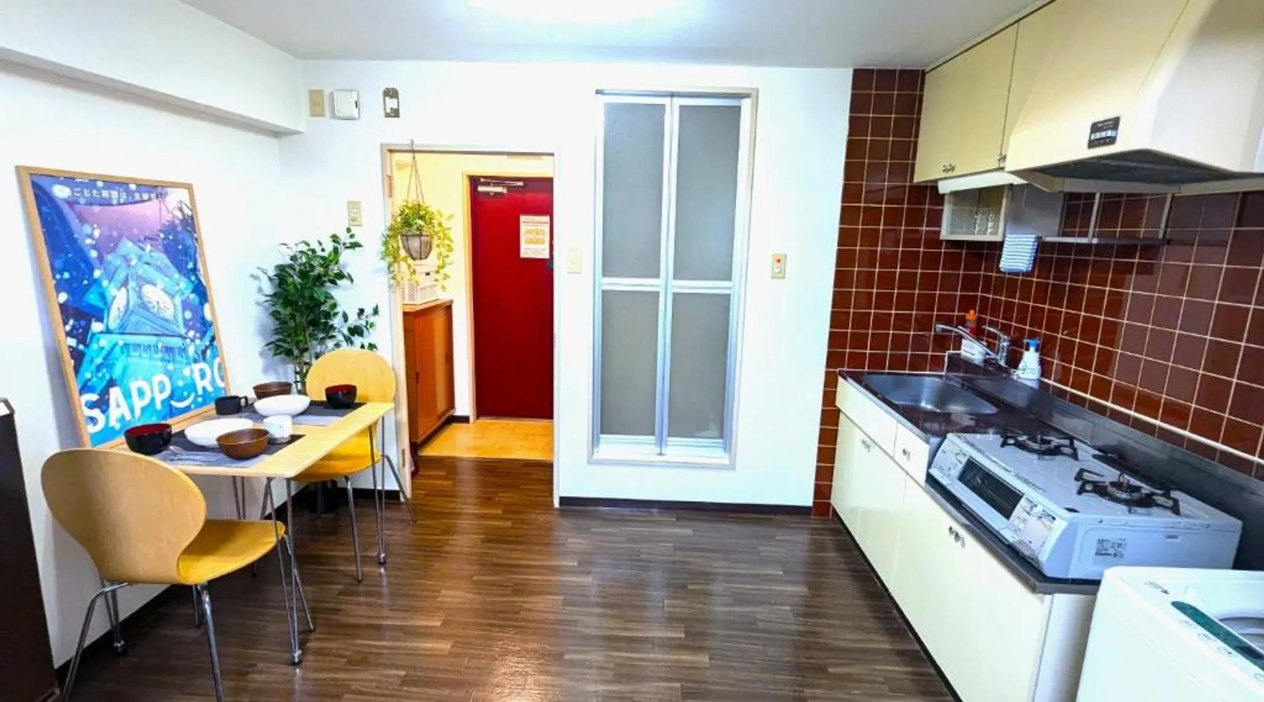 Comfortable Living Space: Space South 4 in Sapporo offers a one-bedroom apartment with free WiFi and a elevator. The property includes air-conditioning, a washing machine, and a private bathroom with a bath and shower. Modern Amenities: Guests can enjoy a fully equipped kitchen with a stovetop, microwave, and kitchenware. Additional amenities include a work desk, TV, hairdryer, and free toiletries. Prime Location: Located 5 mi from Okadama Airport, the apartment is a short walk from Sapporo TV Tower (13 minutes), Odori Park (19 minutes), and Sapporo Clock Tower (0.6 mi). Nearby attractions include Susukino Station (3281 feet) and Odori Station (14-minute walk). Guests can make meals in the kitchen that is equipped with a stovetop, a refrigerator, kitchenware and a microwave. The apartment provides air conditioning, a washing machine, as well as a private bathroom featuring a bath and a shower. The unit offers 1 bed.