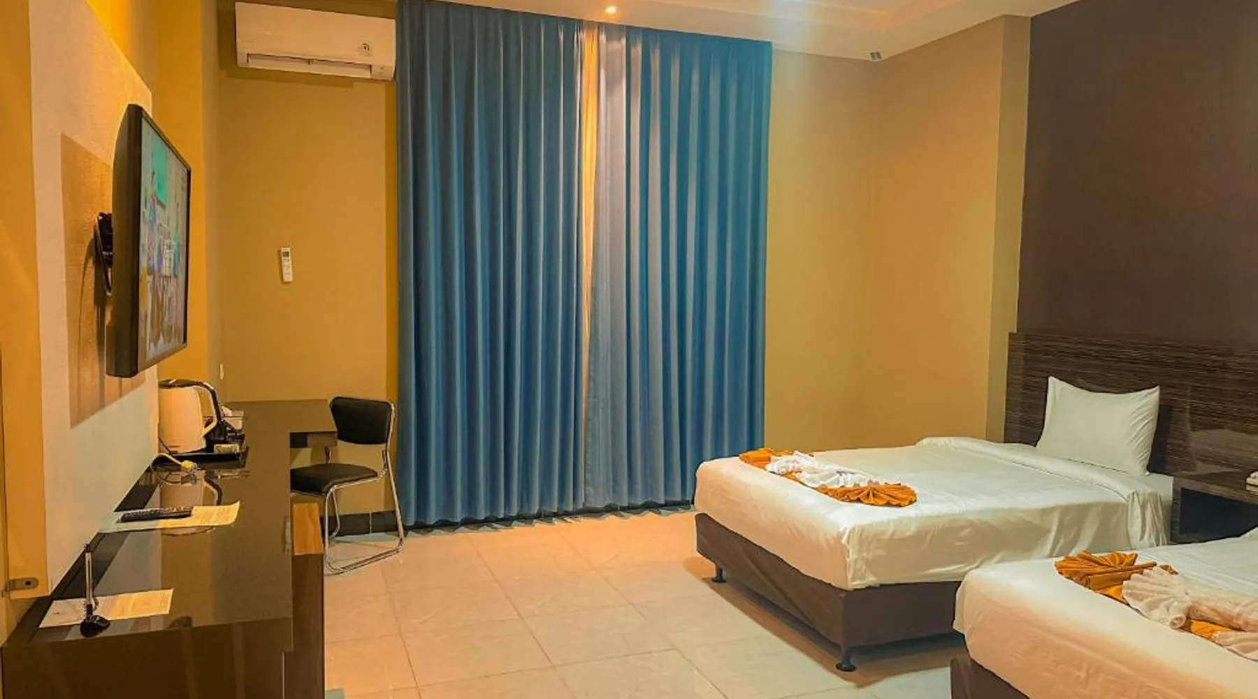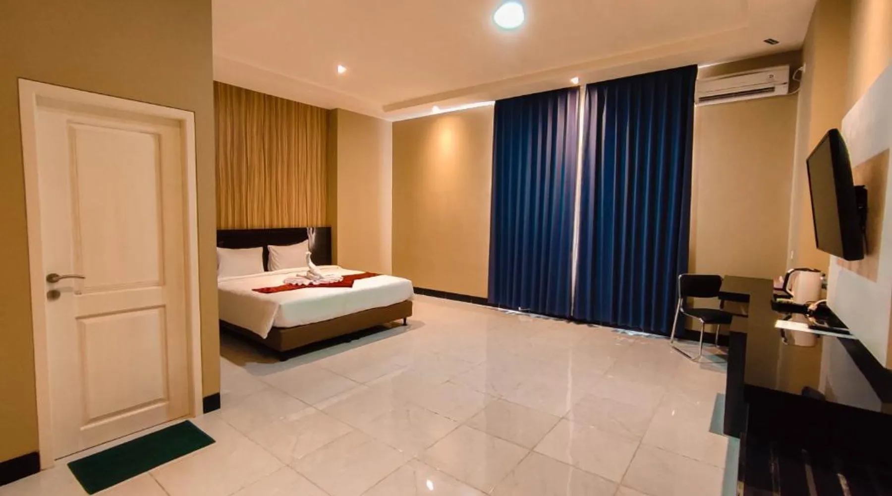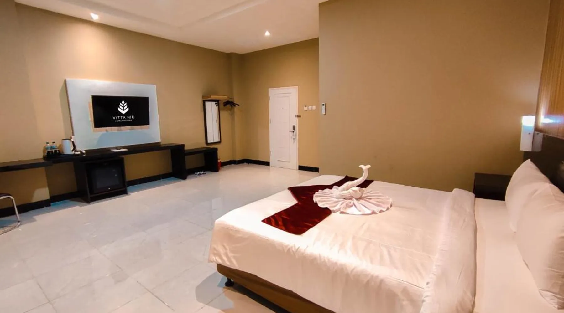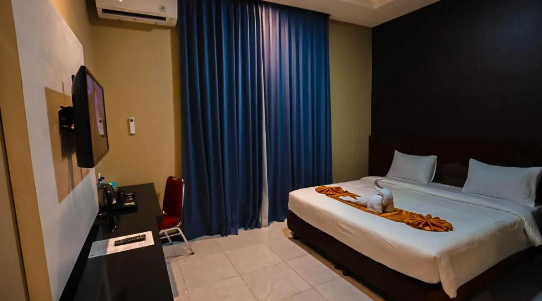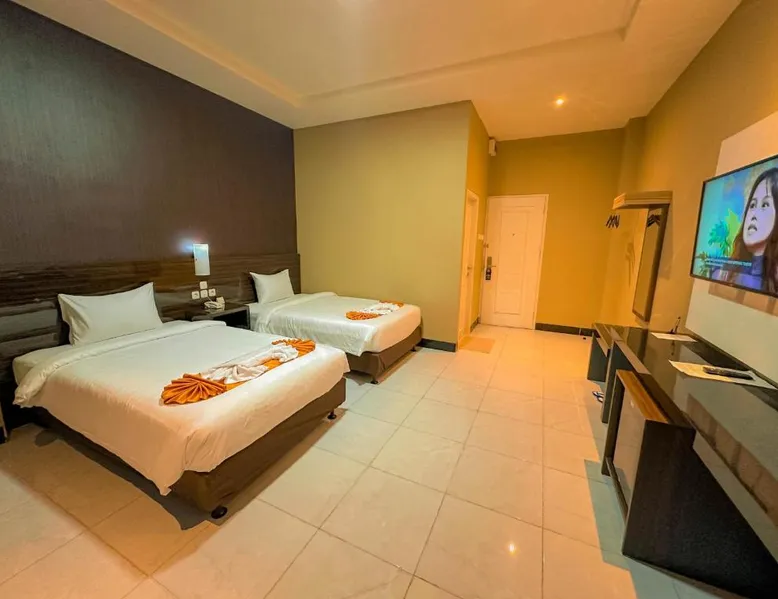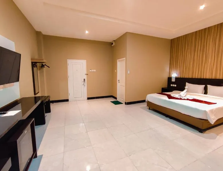 Comfortable Accommodations: Vitta Hotel Manokwari in Manokwari offers family rooms with air-conditioning, private bathrooms, and sea or garden views. Each room includes a work desk, free toiletries, and a TV. Essential Facilities: Guests enjoy free WiFi, private check-in and check-out, a elevator, 24-hour front desk, and free on-site parking. Additional services include bicycle parking, car hire, and luggage storage. Dining Options: A variety of breakfast options are available, including continental, buffet, full English/Irish, halal, and Asian. Breakfast includes local specialties, warm dishes, and fresh fruits. Convenient Location: Located 1.9 mi from Rendani Airport, the hotel is located on a quiet street with sea views. Nearby attractions include the Manokwari Museum and the Manokwari Harbor. Offering free toiletries, this double room includes a private bathroom with a shower, a bidet and slippers. The air-conditioned double room offers a flat-screen TV with cable channels, an electric kettle, a tiled floor, heating as well as sea views. The unit has 1 bed.