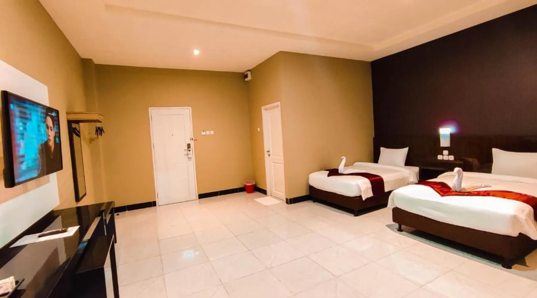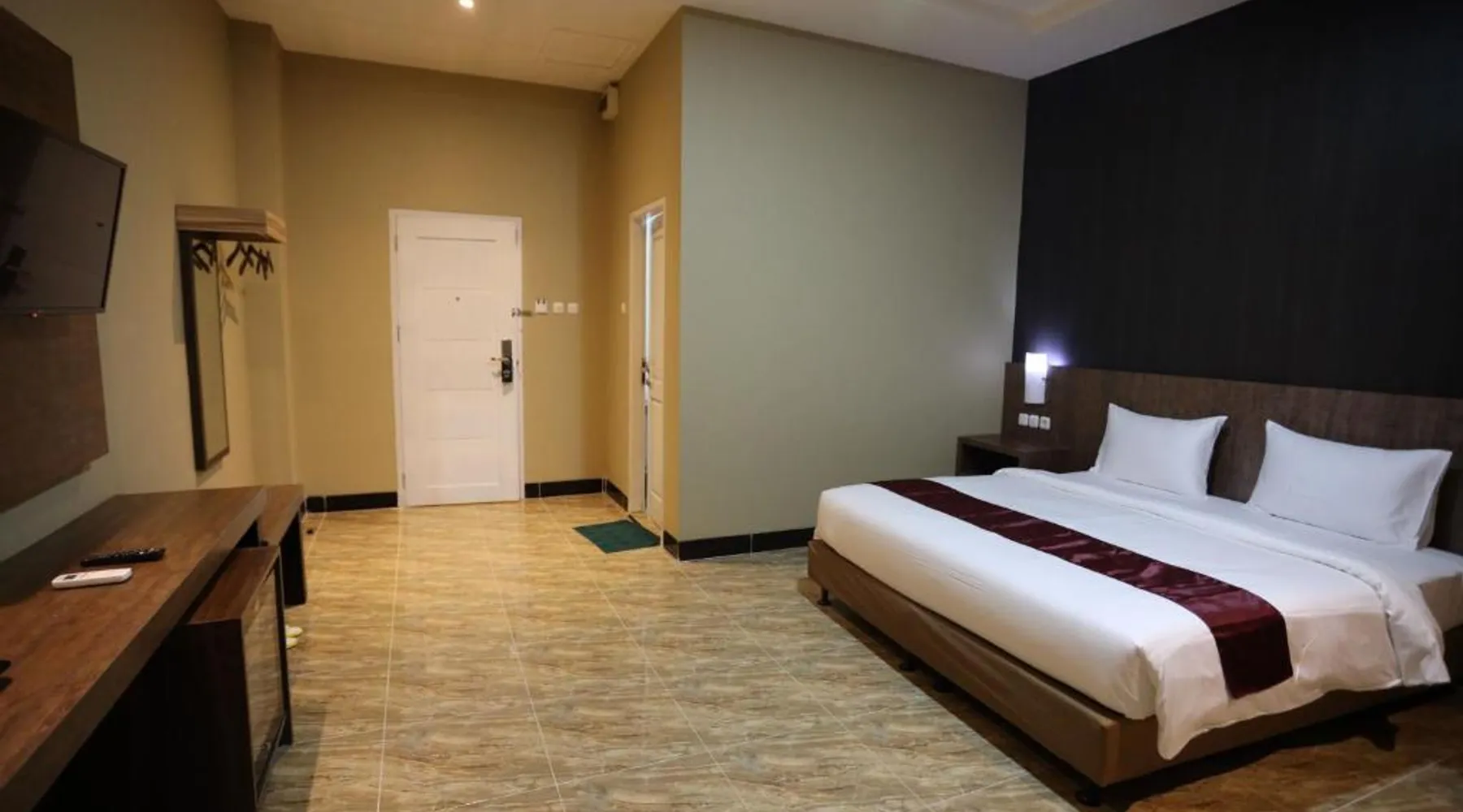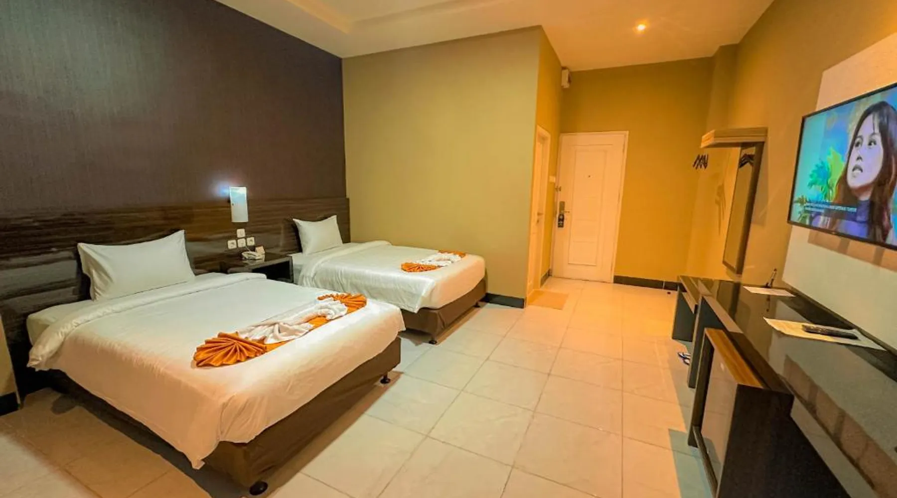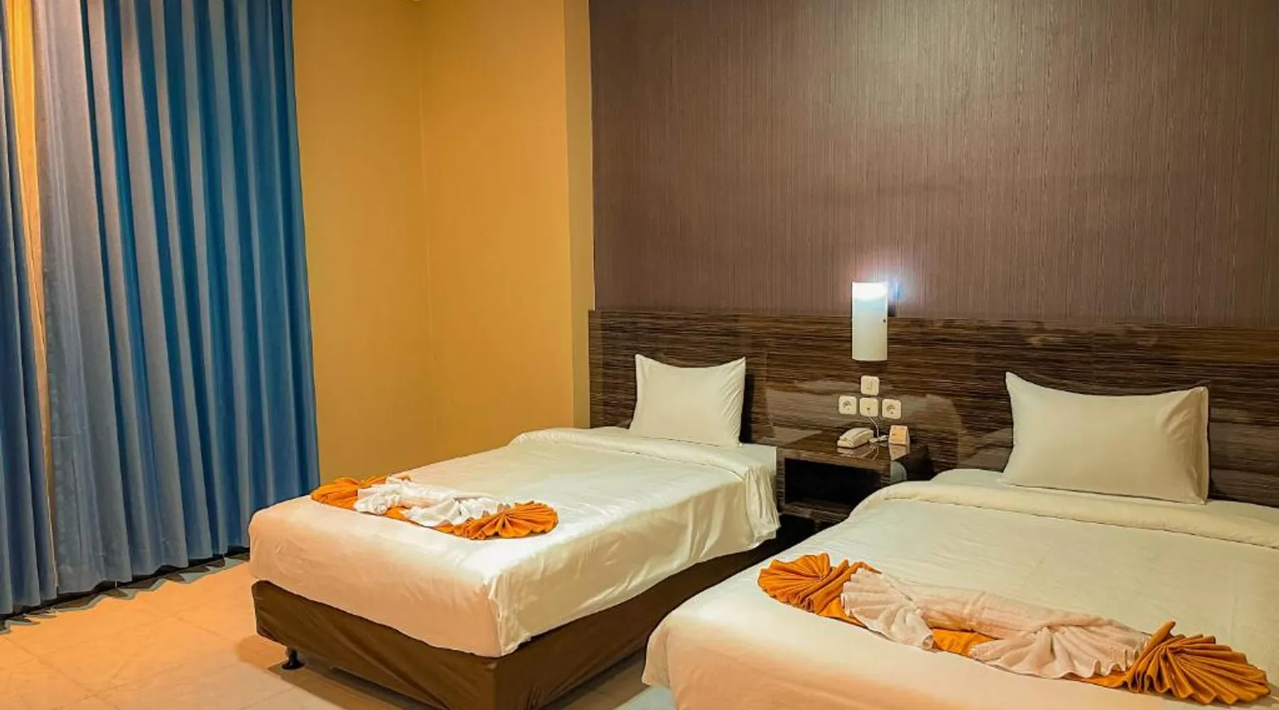 Comfortable Accommodations: Vitta Hotel Manokwari in Manokwari offers family rooms with air-conditioning, private bathrooms, and sea or garden views. Each room includes a work desk, free toiletries, and a TV. Essential Facilities: Guests enjoy free WiFi, private check-in and check-out, a elevator, 24-hour front desk, and free on-site parking. Additional services include bicycle parking, car hire, and luggage storage. Dining Options: A variety of breakfast options are available, including continental, buffet, full English/Irish, halal, and Asian. Breakfast includes local specialties, warm dishes, and fresh fruits. Convenient Location: Located 1.9 mi from Rendani Airport, the hotel is located on a quiet street with sea views. Nearby attractions include the Manokwari Museum and the Manokwari Harbor. Offering free toiletries, this double room includes a private bathroom with a shower, a bidet and slippers. The air-conditioned double room offers a flat-screen TV with cable channels, an electric kettle, a tiled floor, heating as well as sea views. The unit has 1 bed.