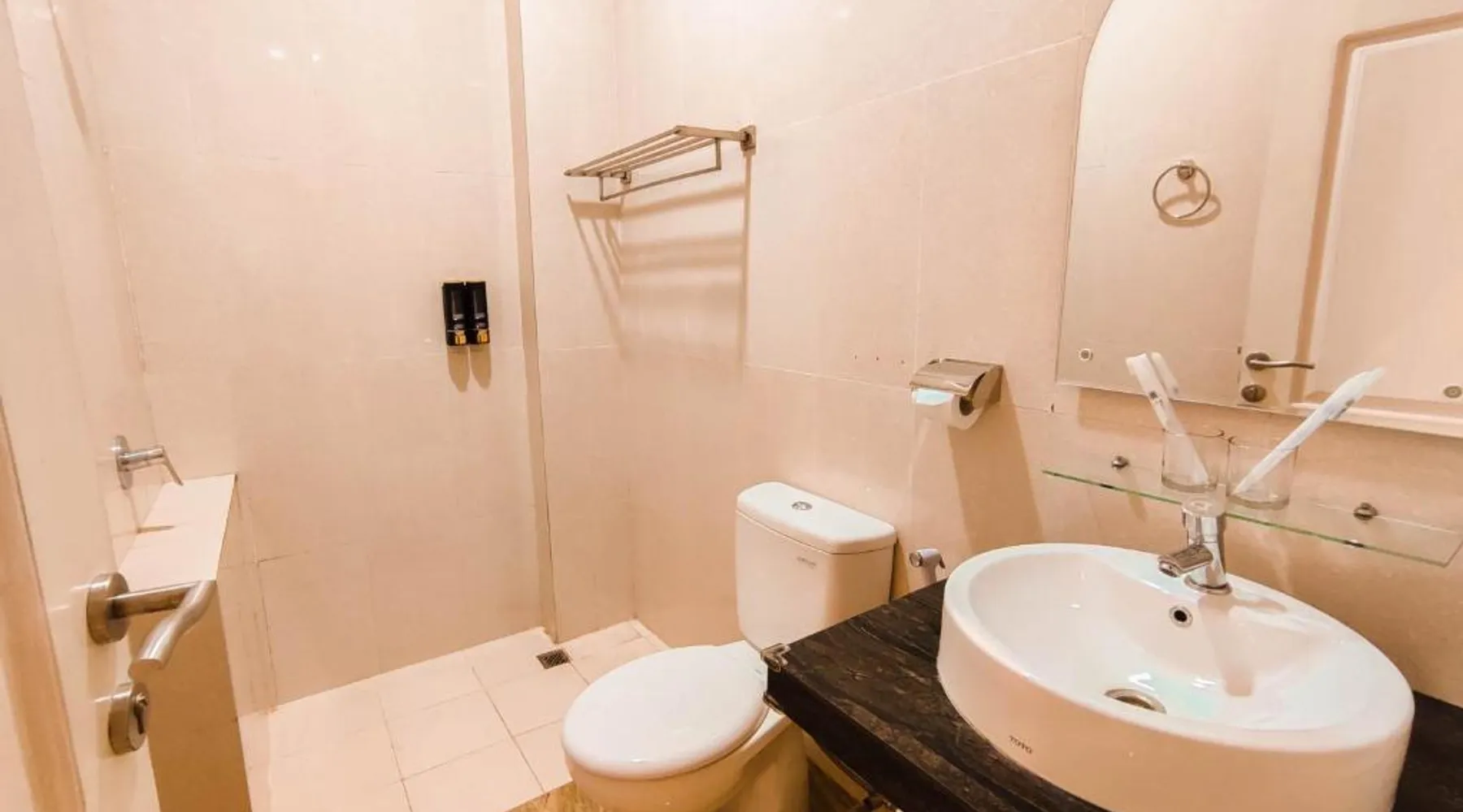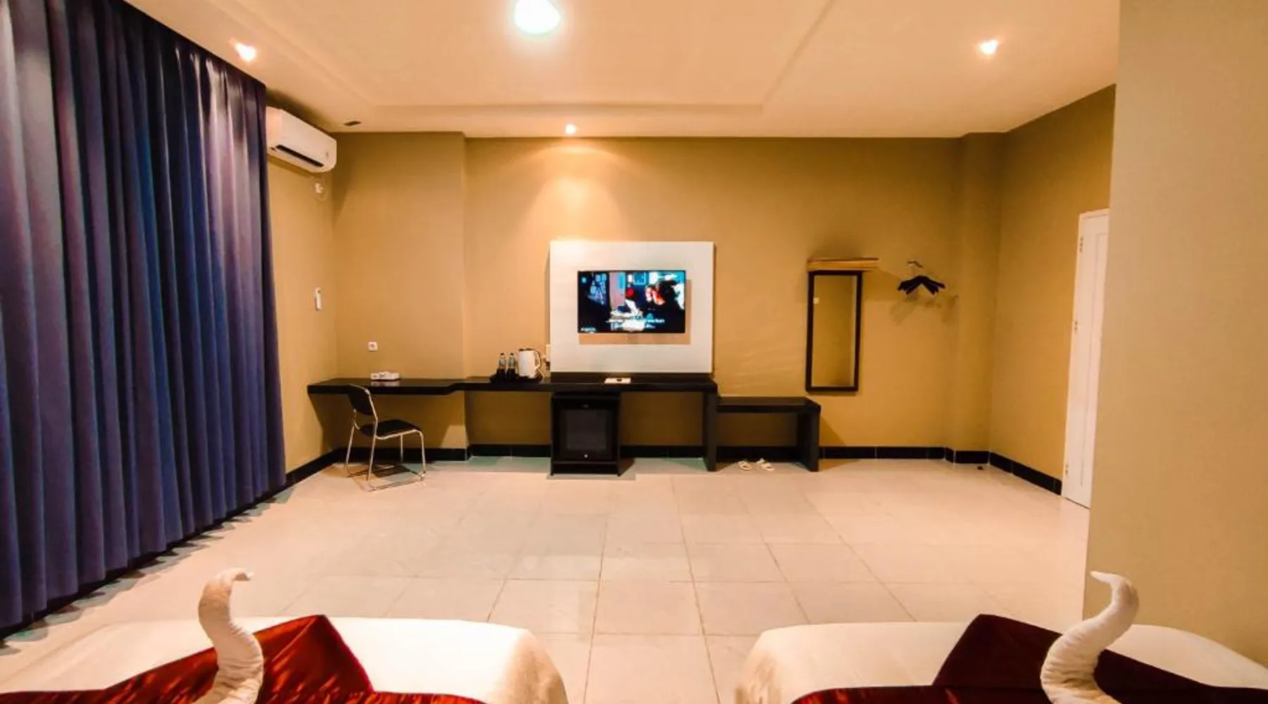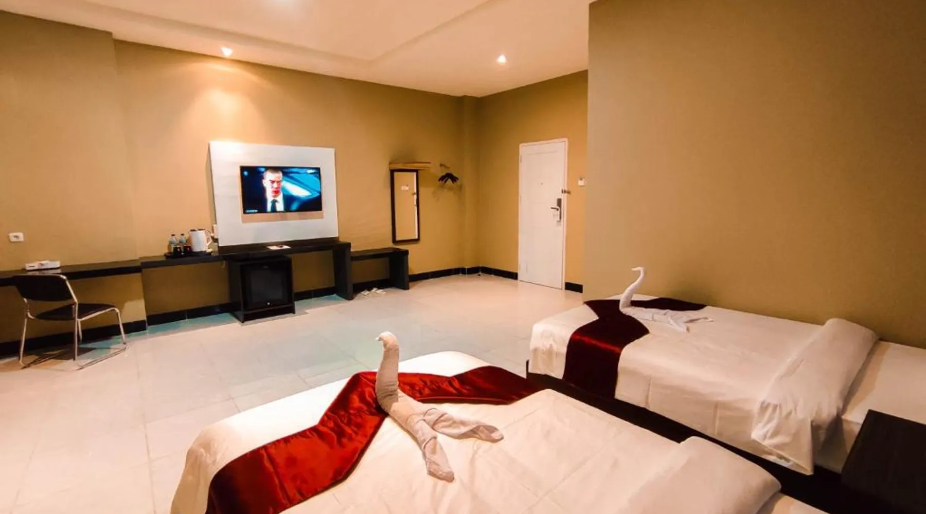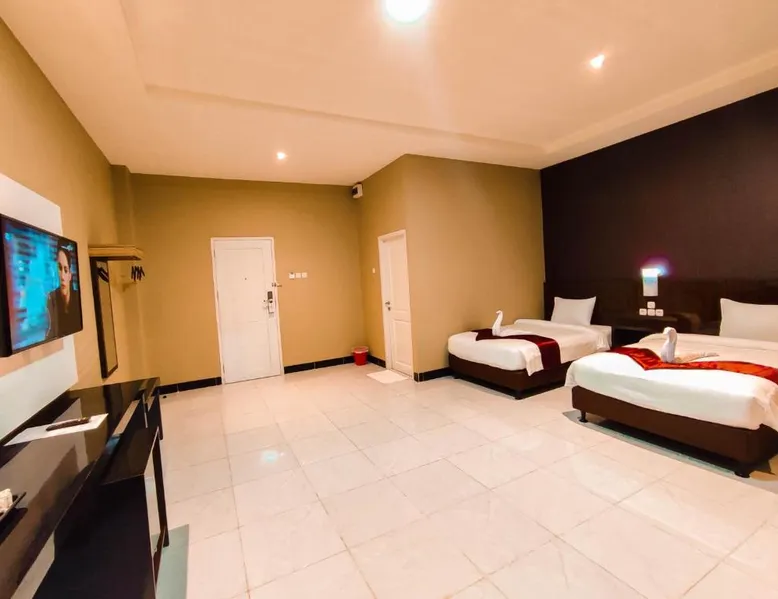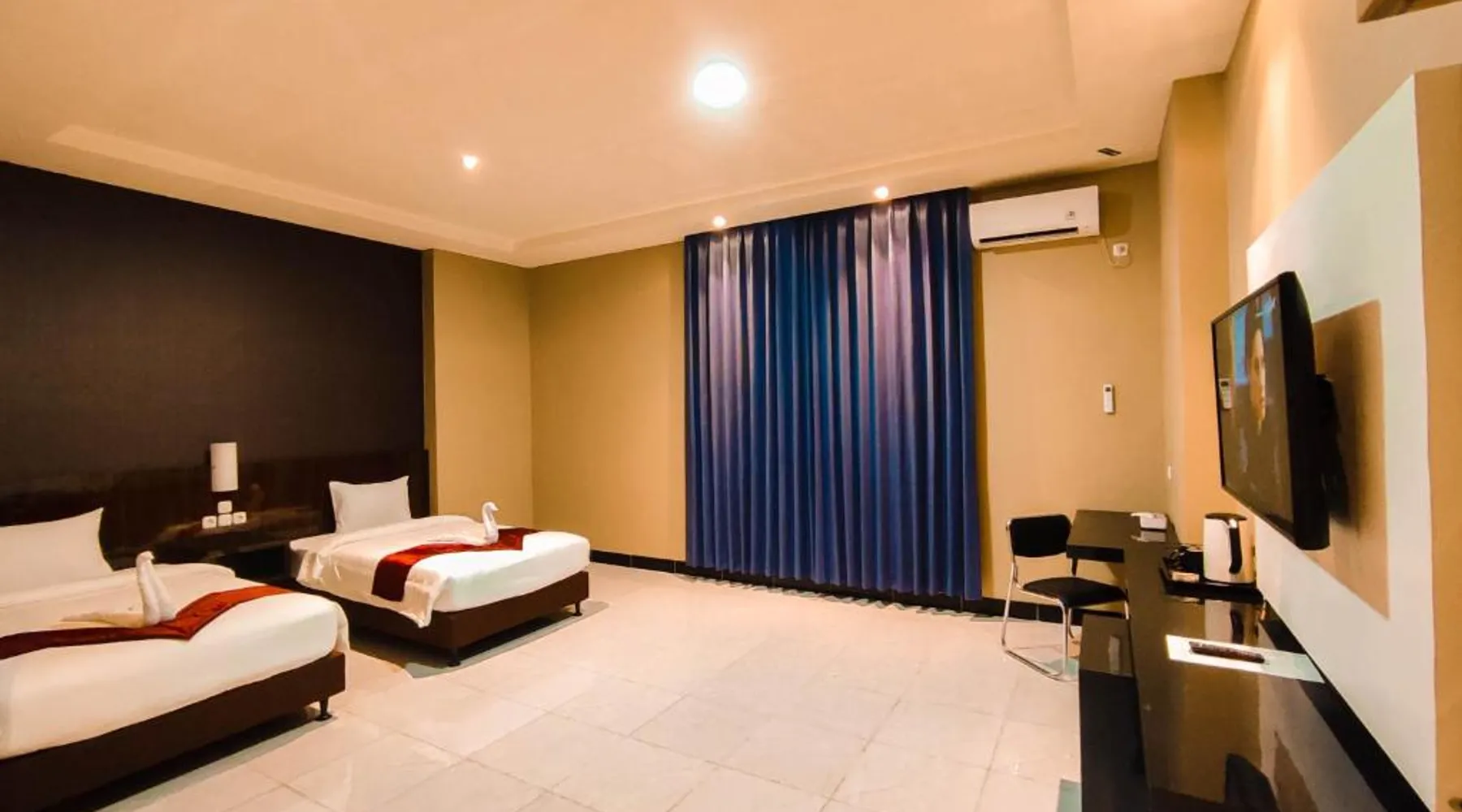 Comfortable Accommodations: Vitta Hotel Manokwari in Manokwari offers family rooms with air-conditioning, private bathrooms, and sea or garden views. Each room includes a work desk, free toiletries, and a TV. Essential Facilities: Guests enjoy free WiFi, private check-in and check-out, a elevator, 24-hour front desk, and free on-site parking. Additional services include bicycle parking, car hire, and luggage storage. Dining Options: A variety of breakfast options are available, including continental, buffet, full English/Irish, halal, and Asian. Breakfast includes local specialties, warm dishes, and fresh fruits. Convenient Location: Located 1.9 mi from Rendani Airport, the hotel is located on a quiet street with sea views. Nearby attractions include the Manokwari Museum and the Manokwari Harbor. Offering free toiletries, this double room includes a private bathroom with a shower, a bidet and slippers. The air-conditioned double room offers a flat-screen TV with cable channels, an electric kettle, a tiled floor, heating as well as sea views. The unit has 1 bed.