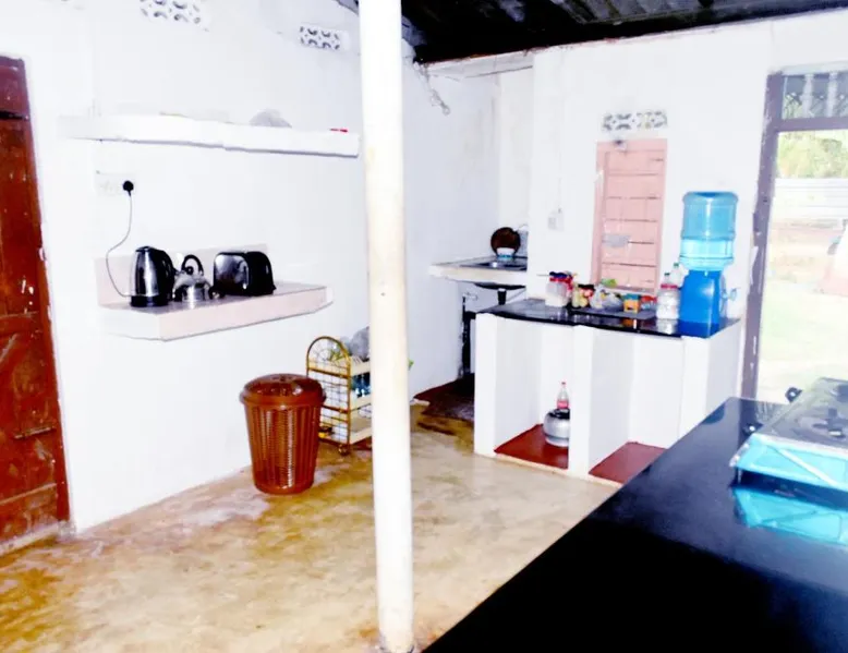 Comfortable Accommodations: Nimal's white house in Nilaveli offers family rooms with garden views. Each room includes a private bathroom, air-conditioning, and a kitchen equipped with modern appliances. Exceptional Facilities: Guests enjoy free WiFi, a terrace, and a garden. The property provides free bicycles, massage services, and a shared kitchen. Additional amenities include a minimarket, outdoor seating area, and picnic spots. Dining Experience: The family-friendly restaurant serves local cuisine with vegetarian, vegan, and dairy-free options. Breakfast is available as a vegetarian meal. Prime Location: Located 11 mi from China Bay Airport, the homestay is a 7-minute walk from Nilaveli Beach. Nearby attractions include Pigeon Island National Park (3 mi) and Kanniya Hot Springs (7.5 mi). The double room's kitchen, which features a refrigerator and kitchenware, is available for cooking and storing food. This double room is air-conditioned and has a private bathroom, a tea and coffee maker and a terrace. The unit has 1 bed.