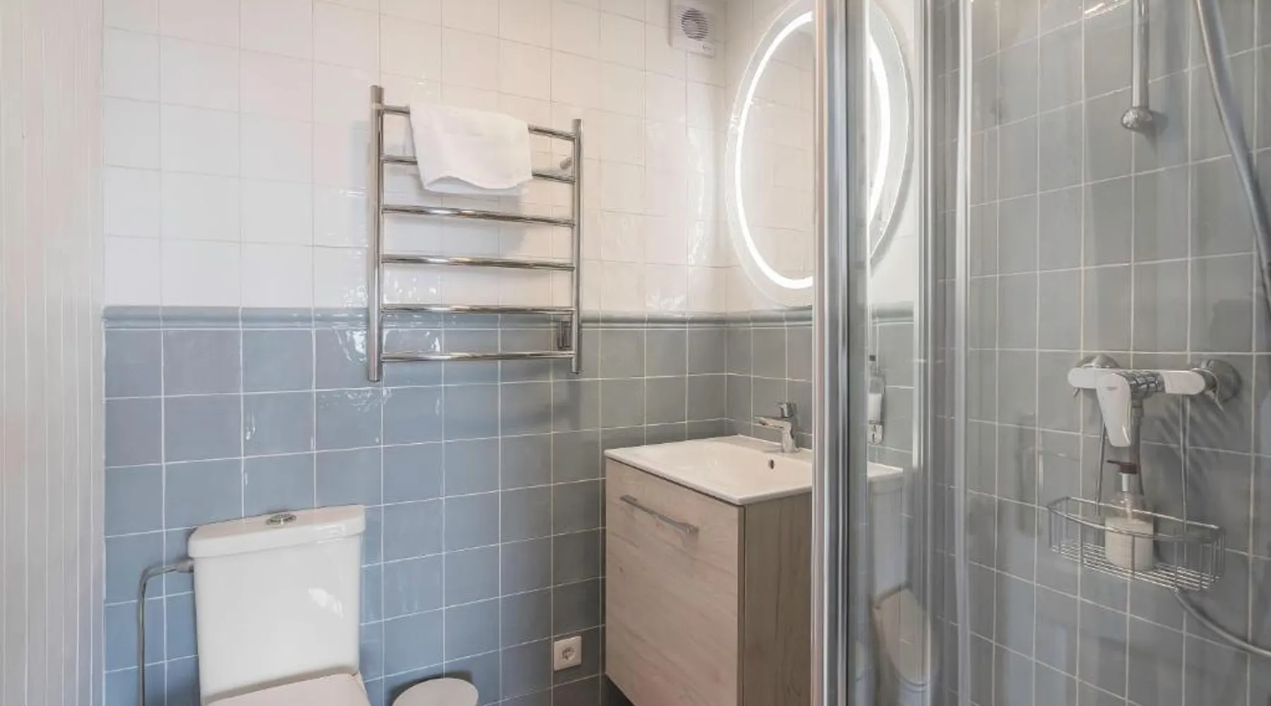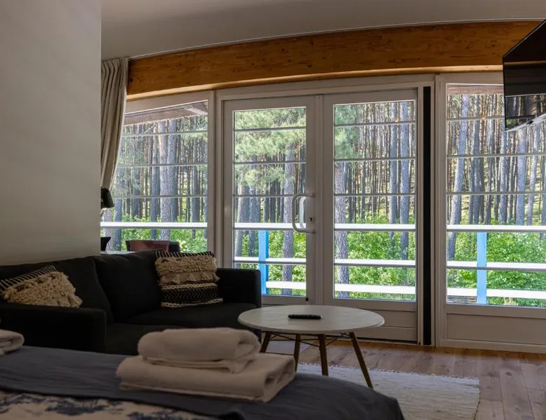 Beachfront Location: Mariu Vila in Preila offers direct beachfront access with a private beach area. Guests enjoy sea views and a sun terrace, complemented by a lush garden. Modern Amenities: The apartment features free WiFi, a private check-in and check-out service, a lounge, and a shared kitchen. Additional facilities include an outdoor play area, picnic spots, and bicycle parking. Comfortable Accommodations: Recently renovated, the property includes a private bathroom with a shower, dining table, work desk, and TV. Guests appreciate the balcony, terrace, and tiled floors. Nearby Attractions: Preila Common Beach is 1.2 mi away, while Palanga International Airport is 48 mi from the property. Points of interest such as Amber Gallery and Thomas Mann Memorial Museum are within 6.8 mi. The double room offers a wardrobe, heating, as well as a private bathroom boasting a shower and a hairdryer. The double room has sea views. The unit has 1 bed.