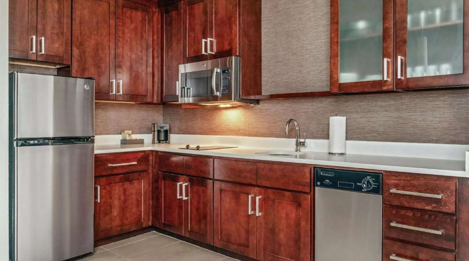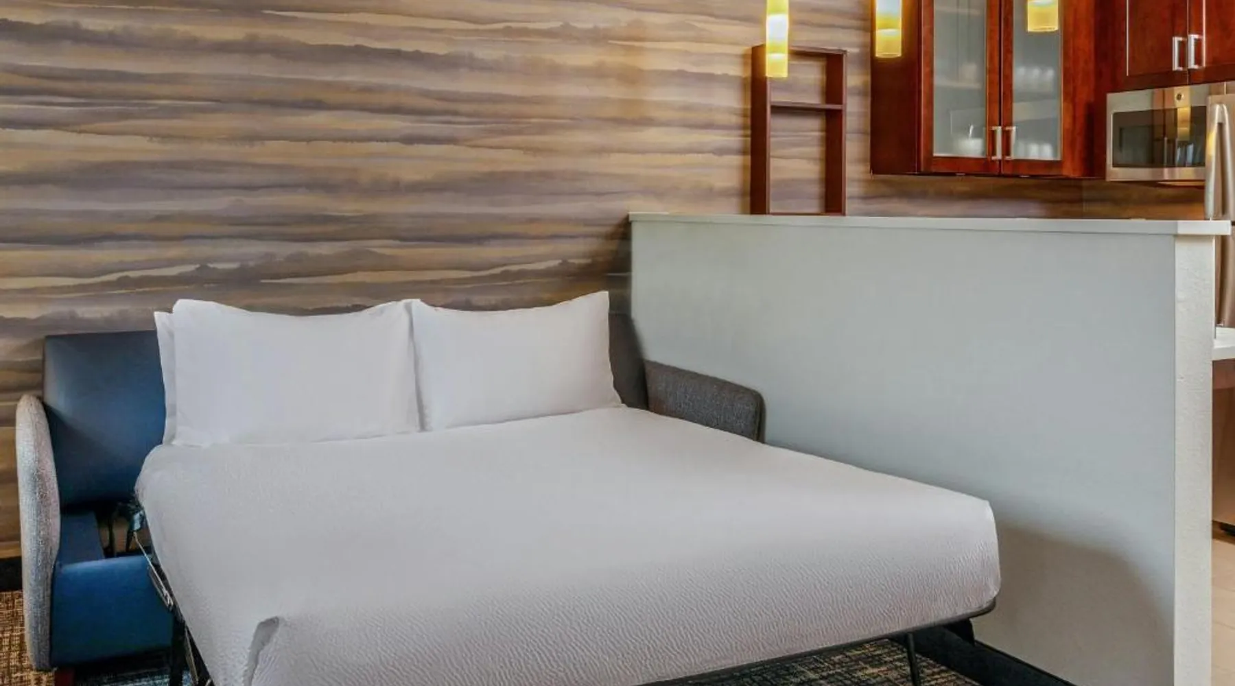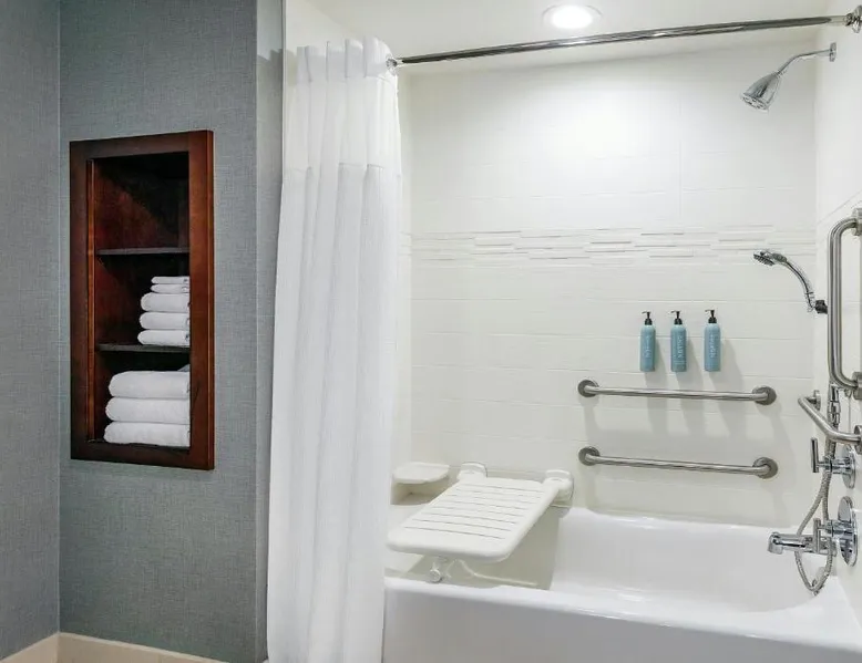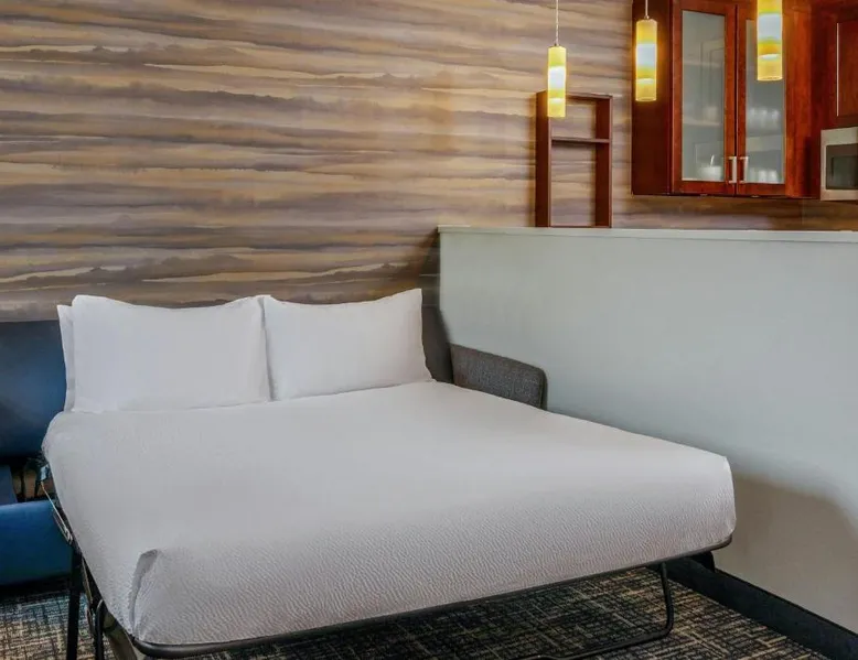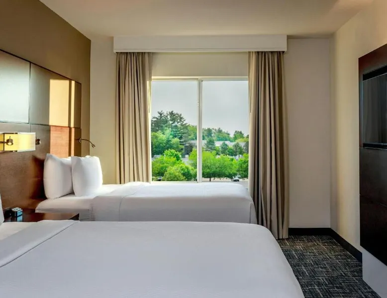 Comfortable Accommodations: Residence Inn by Marriott Nashua in Nashua offers family rooms with air-conditioning, private bathrooms, and fully equipped kitchens. Each room includes a work desk, sofa, and free toiletries. Exceptional Facilities: Guests enjoy an indoor swimming pool, free bicycles, and an outdoor fireplace. The hotel provides free on-site parking, a 24-hour front desk, concierge service, and an outdoor seating area. Delicious Breakfast: A continental buffet breakfast is served daily, featuring warm dishes, fresh pastries, cheese, fruits, juice, and more. Guests appreciate the variety and quality of the breakfast offerings. Convenient Location: Located 12 mi from Manchester Boston Regional Airport, the hotel is near Mall Of New Hampshire (16 mi), Canobie Lake Park (17 mi), and other attractions. Free WiFi is available throughout the property. The unit has 2 beds.