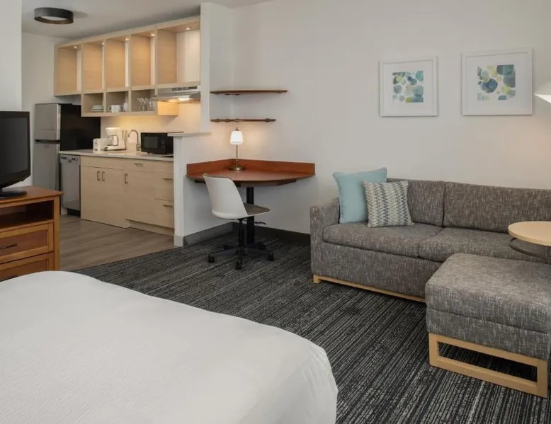 Comfortable Accommodations: TownePlace Suites San Jose Campbell in Campbell offers family rooms with air-conditioning, private bathrooms, and free toiletries. Each room includes a work desk, seating area, and soundproofing for a pleasant stay. Convenient Facilities: Guests can enjoy free bicycles, a elevator, 24-hour front desk, electric vehicle charging station, and free on-site parking. Additional amenities include a children's playground, ensuring entertainment for all ages. Local Attractions: Located 6.2 mi from Norman Y. Mineta San Jose International Airport, the hotel is near San Jose Convention Center (4.3 mi), Winchester Mystery House (3.1 mi), and Happy Hollow Park and Zoo (5.6 mi). Cycling enthusiasts can explore the surrounding area with free bicycles. The unit offers 1 bed.